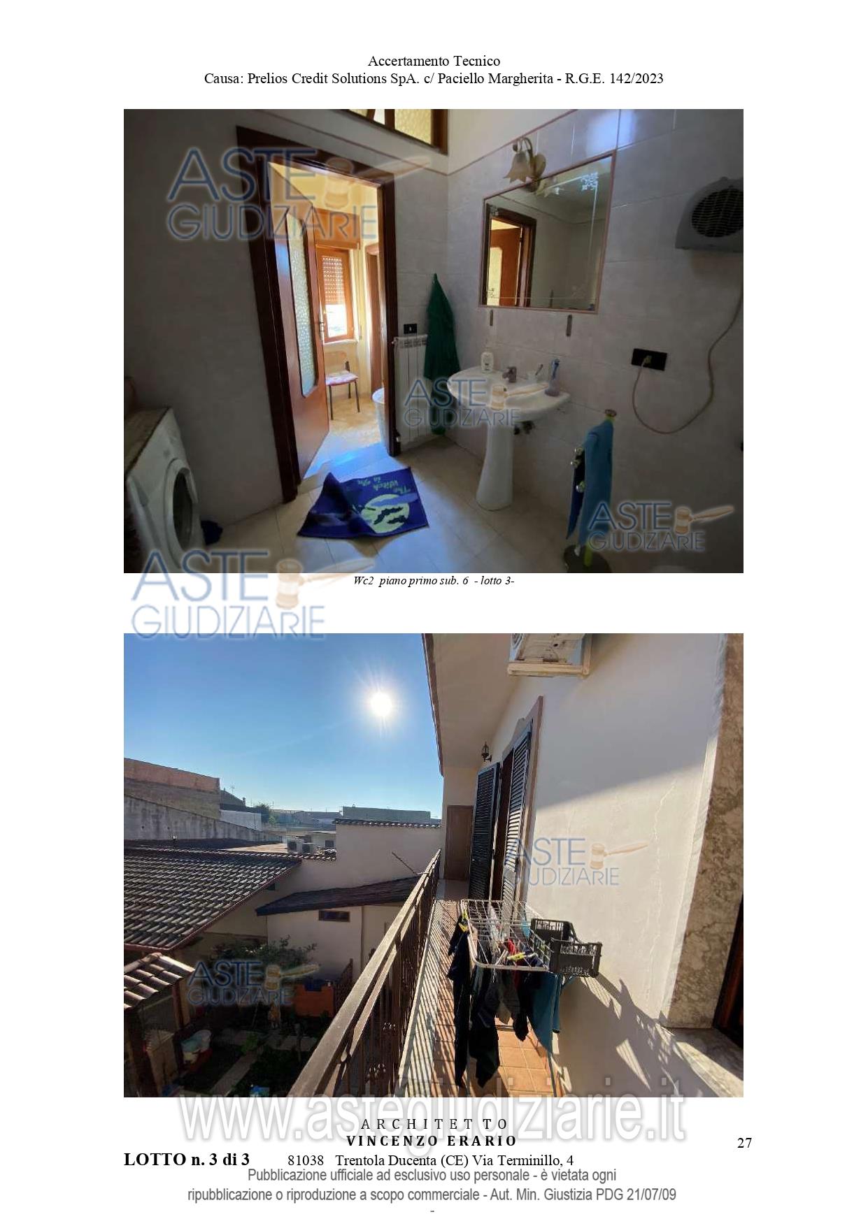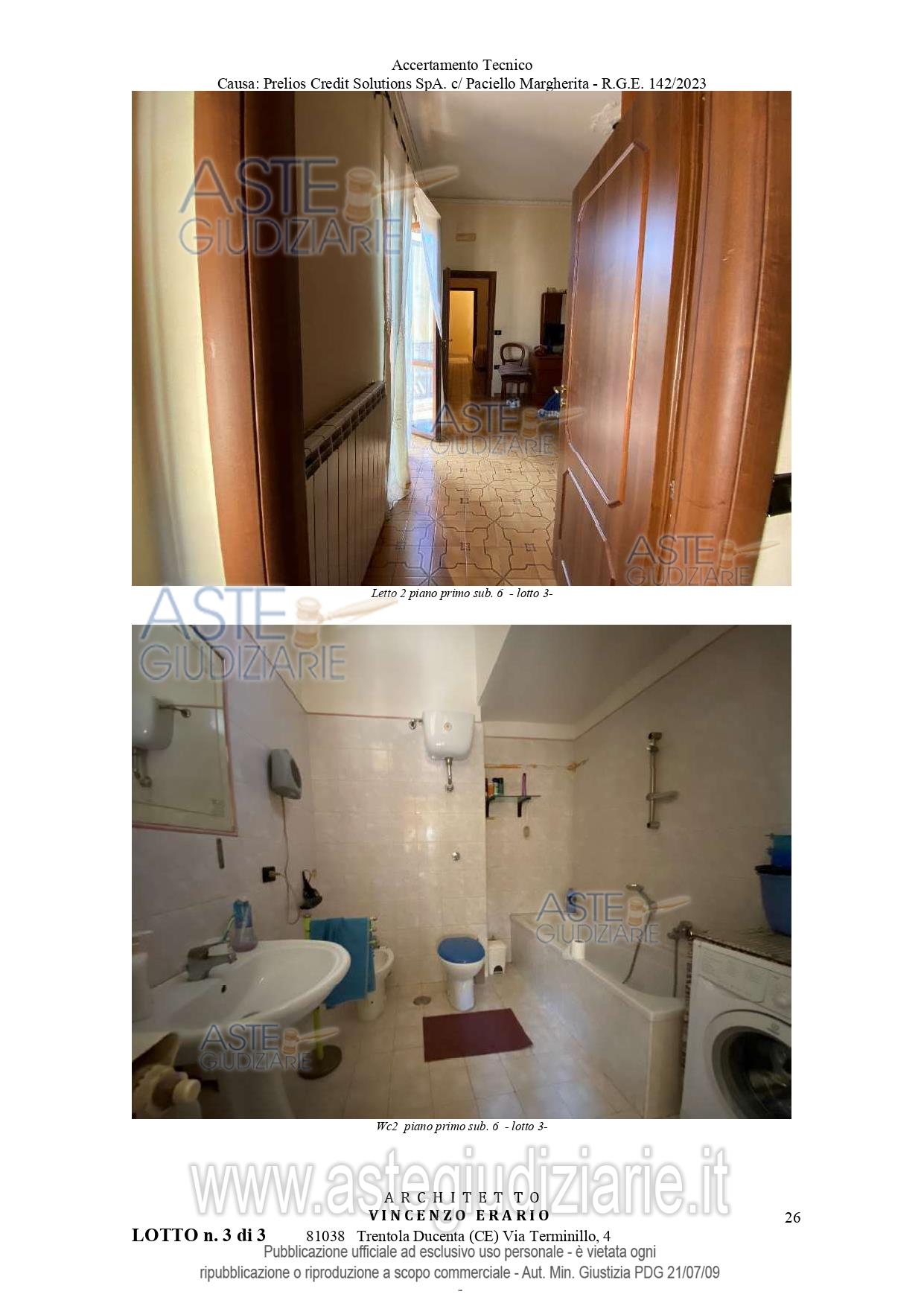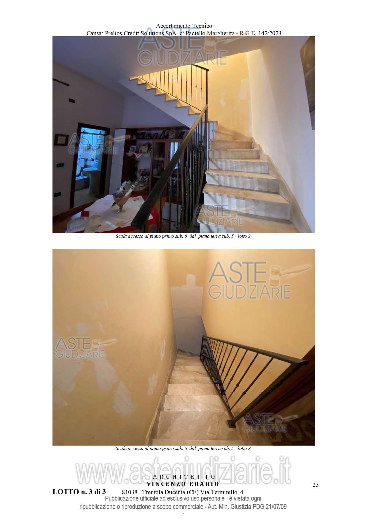 Vendita all'asta Senza incanto, con gara telematica asincrona - LOTTO 2: LOTTO DUE (distinto in perizia come LOTTO TRE): Proprietà di unità immobiliare in Frignano alla Via Cesare Battisti, 18, con annessa tettoia coperta e bene comune non censibile. Composta da 2 livelli: al piano terra da una cucina/pranzo, un soggiorno, un wc 1 e un deposito con accesso dal bene comune non censibile sub 1, mentre il piano primo accessibile da scala interna, composto: letto 1, letto 2, wc 2 con annesso balcone e ripostiglio; l’altezza vani al piano terra è 3,40 ml; al piano primo è 3,30 ml. Prezzo base € 72.750,00 (offerta minima € 54.562,50). Data inizio operazioni di vendita: 10/12/2025 ore 15:30. Giudice Dott. Lorella Triglione. Professionista delegato alla vendita Avv. Marcello De Giorgio - Email "avvmarcellodegiorgio@libero.it"; Cell. 3358360365; Tel. 0815801274. Custode Giudiziario Avv. Marcello De Giorgio - Email "avvmarcellodegiorgio@libero.it"; Cell. 3358360365; Tel. 0815801274. Rif. Tribunale di Napoli Nord - Espropriazione immobiliare (cartabia) n. 142/2023