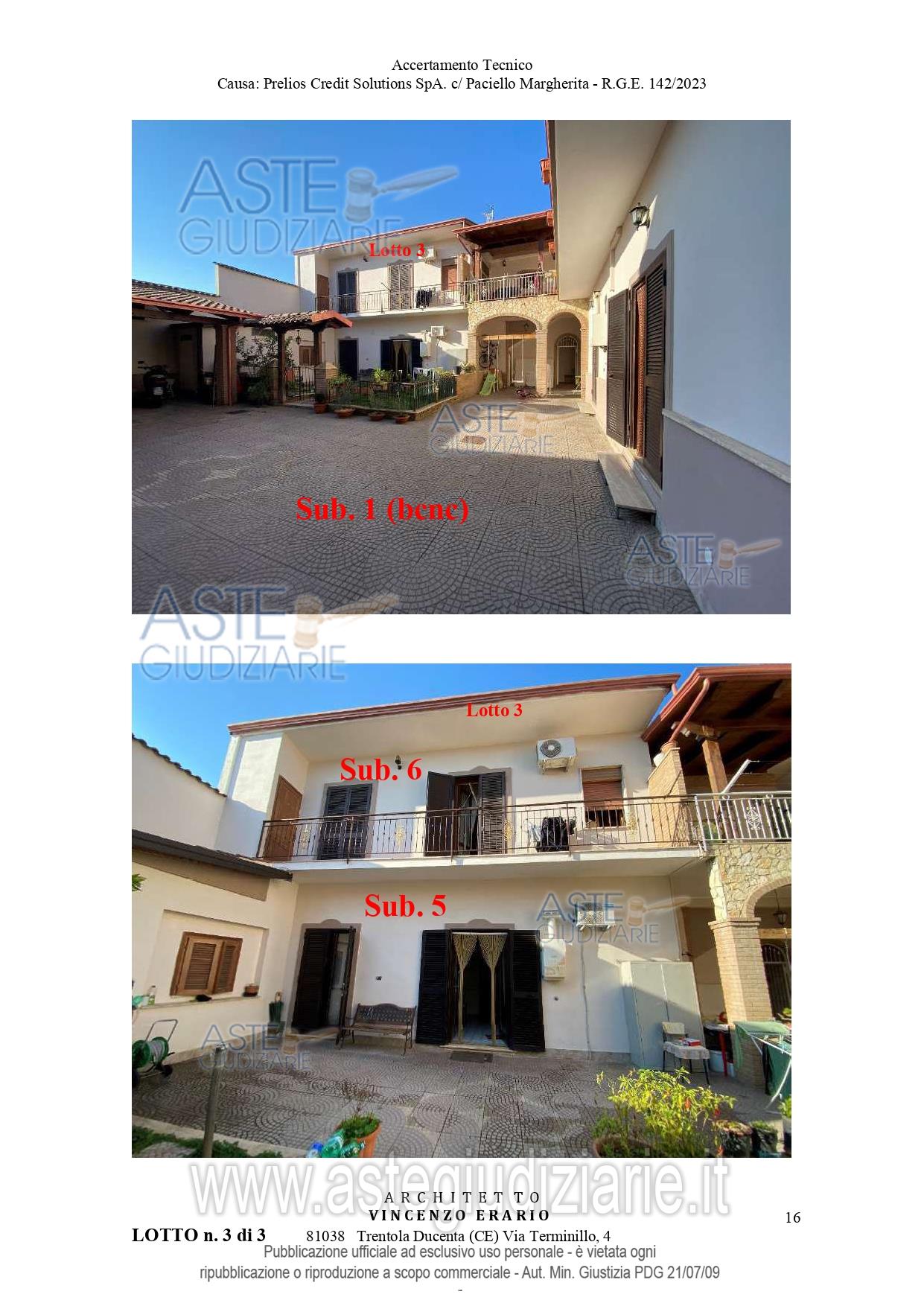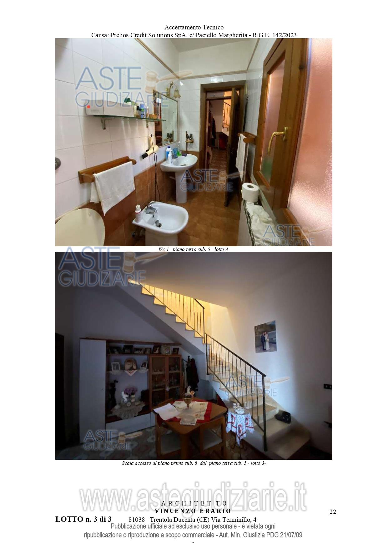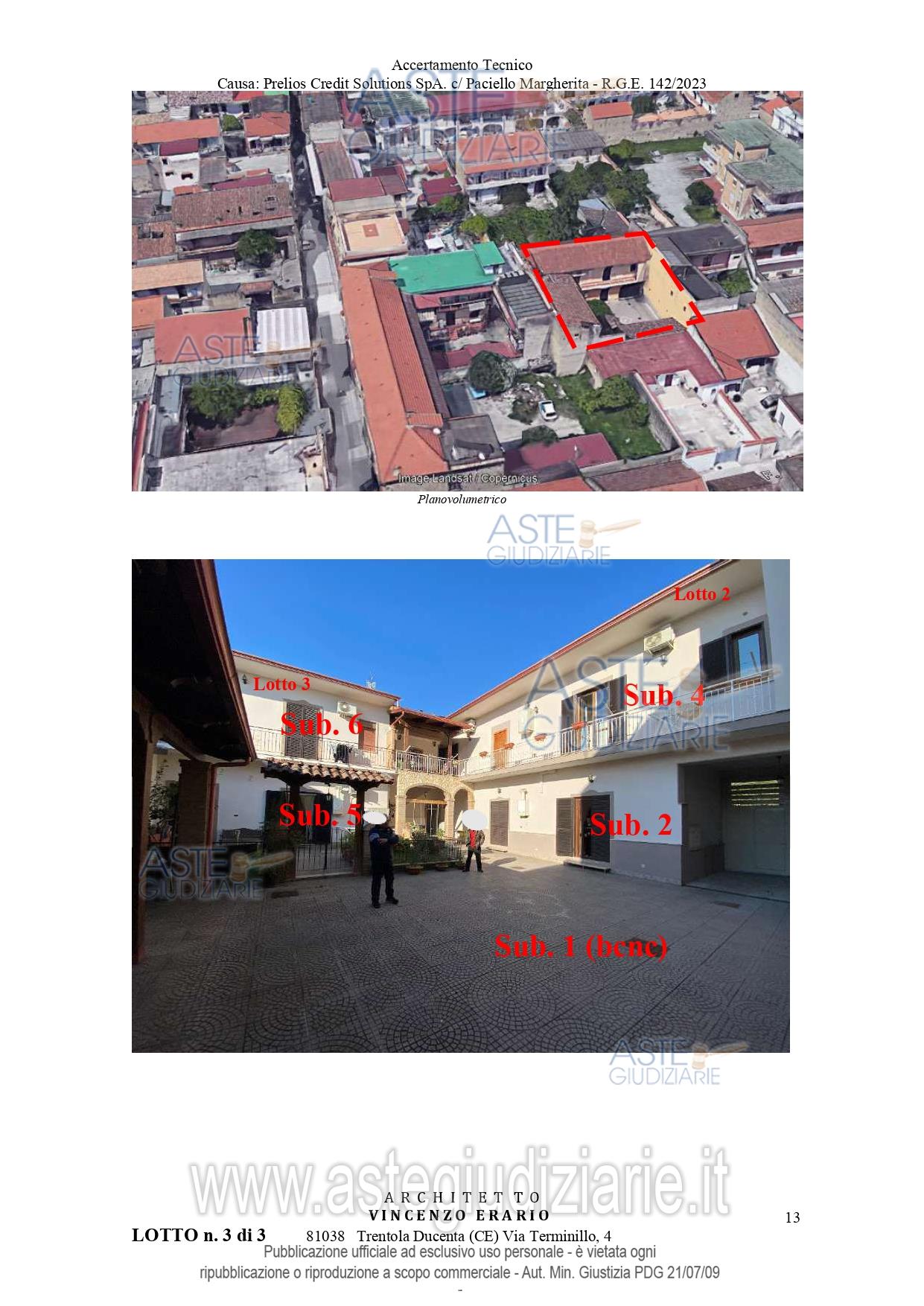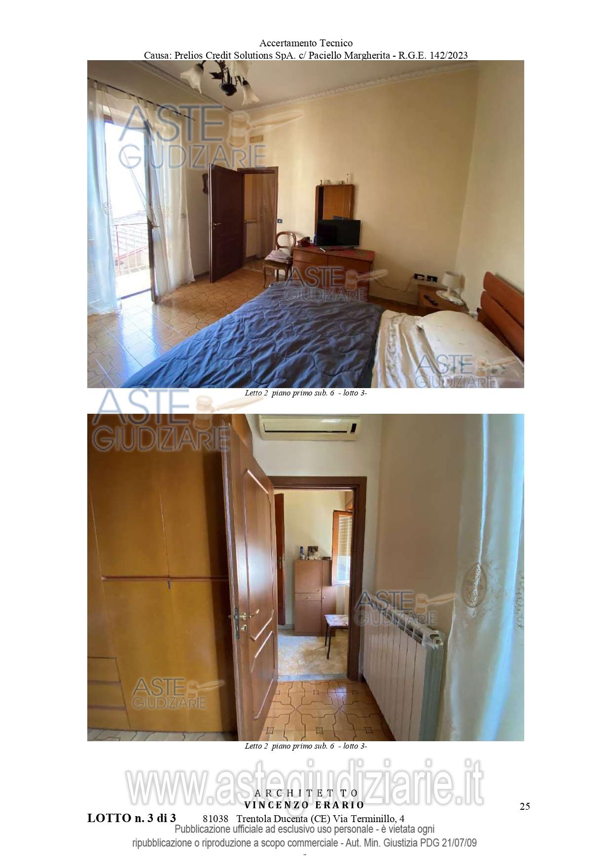 Vendita all'asta Senza incanto, con gara telematica asincrona - LOTTO 2: LOTTO DUE (distinto in perizia come LOTTO TRE): Proprietà di unità immobiliare in Frignano alla Via Cesare Battisti, 18, con annessa tettoia coperta e bene comune non censibile. Composta da 2 livelli: al piano terra da una cucina/pranzo, un soggiorno, un wc 1 e un deposito con accesso dal bene comune non censibile sub 1, mentre il piano primo accessibile da scala interna, composto: letto 1, letto 2, wc 2 con annesso balcone e ripostiglio; l’altezza vani al piano terra è 3,40 ml; al piano primo è 3,30 ml. Prezzo base € 72.750,00 (offerta minima € 54.562,50). Data inizio operazioni di vendita: 10/12/2025 ore 15:30. Giudice Dott. Lorella Triglione. Professionista delegato alla vendita Avv. Marcello De Giorgio - Email "avvmarcellodegiorgio@libero.it"; Cell. 3358360365; Tel. 0815801274. Custode Giudiziario Avv. Marcello De Giorgio - Email "avvmarcellodegiorgio@libero.it"; Cell. 3358360365; Tel. 0815801274. Rif. Tribunale di Napoli Nord - Espropriazione immobiliare (cartabia) n. 142/2023