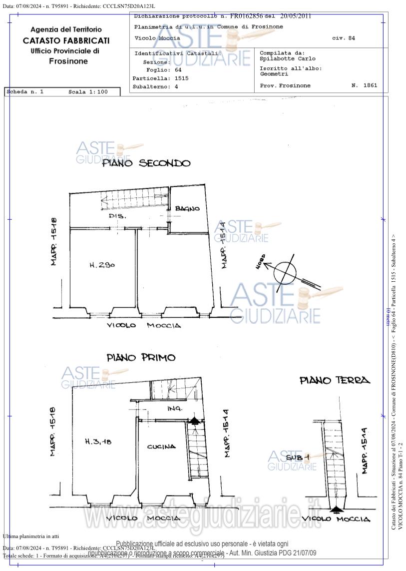 Vendita all'asta Senza incanto, con gara telematica asincrona - LOTTO 1: Abitazione al piano terra, primo e secondo. Prezzo base € 40.923,27 (offerta minima € 30.692,45). Data inizio operazioni di vendita: 13/05/2026 ore 17:00. Giudice Simona Di Nicola. Professionista delegato alla vendita Avv. Michela Vincenzi - Email "micvincenzi@gmail.com". Custode Giudiziario Avv. Michela Vincenzi - Email "micvincenzi@gmail.com". Rif. Tribunale di Frosinone - Espropriazione immobiliare (cartabia) n. 50/2024