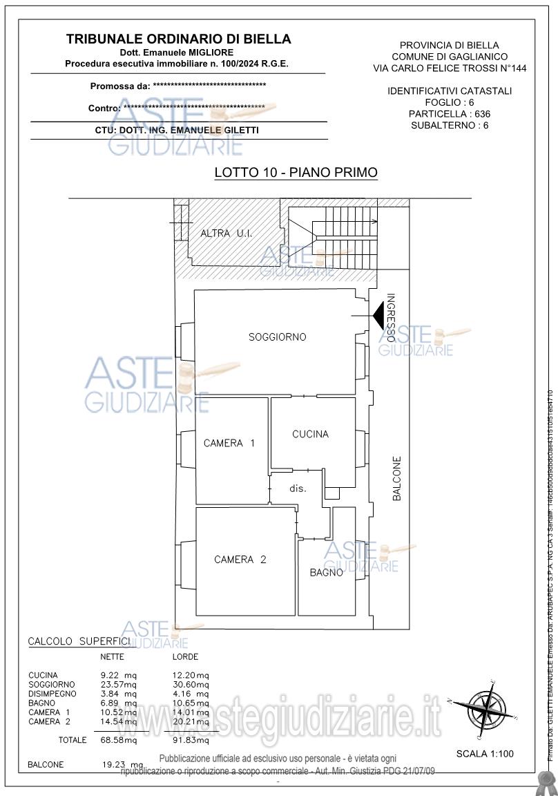 Vendita all'asta Senza incanto, con gara telematica asincrona - LOTTO 10: Rif.19 - Alloggio al primo piano così composto: ingresso su soggiorno, cucina, disimpegno, 2 camere, bagno e balcone. Oltre cantina. Rif. 20 e Rif. 21 - Box auto singoli. Prezzo base € 89.100,00 (offerta minima € 66.825,00). Data inizio operazioni di vendita: 31/03/2026 ore 15:30. Giudice Emanuele Migliore. Professionista delegato alla vendita Avv. Giovanni Bonino - Email "info@biellaaste.it"; Tel. 0152523705. Custode Giudiziario Avv. Giovanni Bonino - Email "info@biellaaste.it"; Tel. 0152523705. Rif. Tribunale di Biella - Espropriazione immobiliare (cartabia) n. 100/2024
