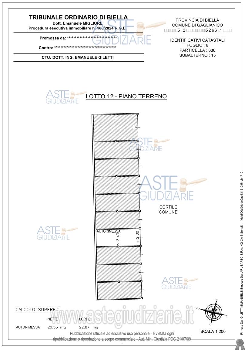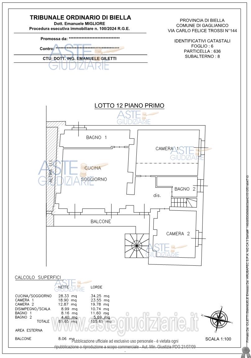 Vendita all'asta Senza incanto, con gara telematica asincrona - LOTTO 12: Rif. 24 - Appartamento al primo piano oltre sottotetto e mansarda, così composto: ingresso su soggiorno cucina, disimpegno 2 camere, 2 bagni, balcone, scala accesso sottotetto, mansarda, soffitta, terrazzo. Oltre cantina. Rif. 25 e Rif. 26 - Box auto singoli. Prezzo base € 121.200,00 (offerta minima € 90.900,00). Data inizio operazioni di vendita: 31/03/2026 ore 15:30. Giudice Emanuele Migliore. Professionista delegato alla vendita Avv. Giovanni Bonino - Email "info@biellaaste.it"; Tel. 0152523705. Custode Giudiziario Avv. Giovanni Bonino - Email "info@biellaaste.it"; Tel. 0152523705. Rif. Tribunale di Biella - Espropriazione immobiliare (cartabia) n. 100/2024