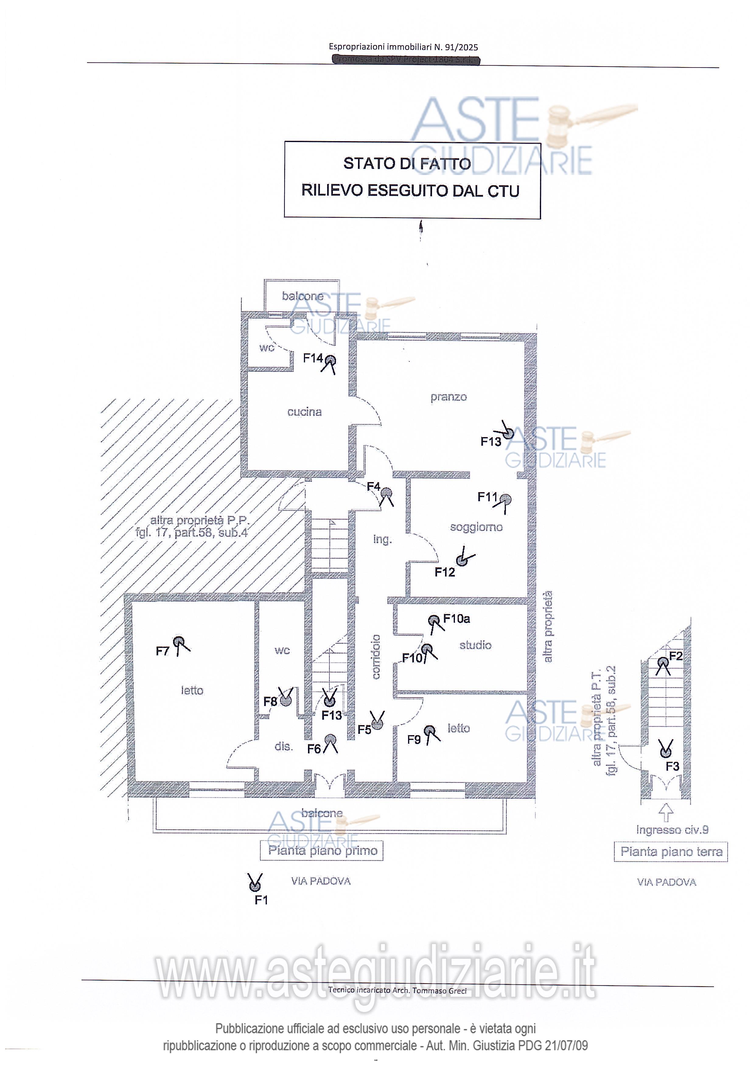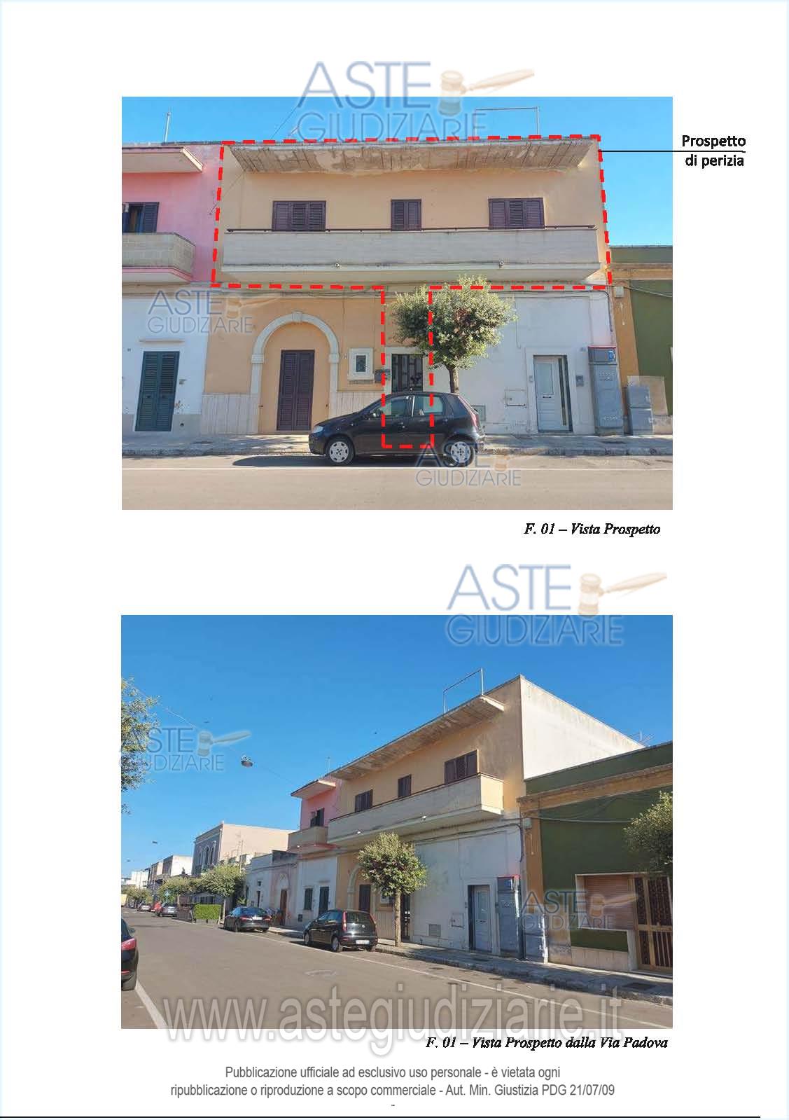 Vendita all'asta Senza incanto, con gara telematica asincrona - LOTTO UNICO: Piena proprietà immobile in Galatina, alla via Padova n. 9, frazione Collemeto, della superficie commerciale di 151,41 mq. L'appartamento è situato al piano primo, raggiungibile attraverso una rampa di scale, ed è costituito da: un ingresso, soggiorno, pranzo, cucina con balcone, disimpegno, studio, due camere da letto e due bagni. Dal disimpegno, si accede al balcone su via Padova e ad una scala tramite la quale si raggiunge il piano secondo dove si trova il locale termico e la terrazza di pertinenza. Prezzo base € 57.000,00 (offerta minima € 42.750,00). Data inizio operazioni di vendita: 23/04/2026 ore 12:00. Professionista delegato alla vendita Avv. Avv. Patrizia Giammarruco - Email "patrizia.giammarruco@gmail.com"; Cell. 3382442830; Tel. 0832217871. Custode Giudiziario Avv. Avv. Patrizia Giammarruco - Email "patrizia.giammarruco@gmail.com"; Cell. 3382442830; Tel. 0832217871. Rif. Tribunale di Lecce - Espropriazione immobiliare (cartabia) n. 91/2025