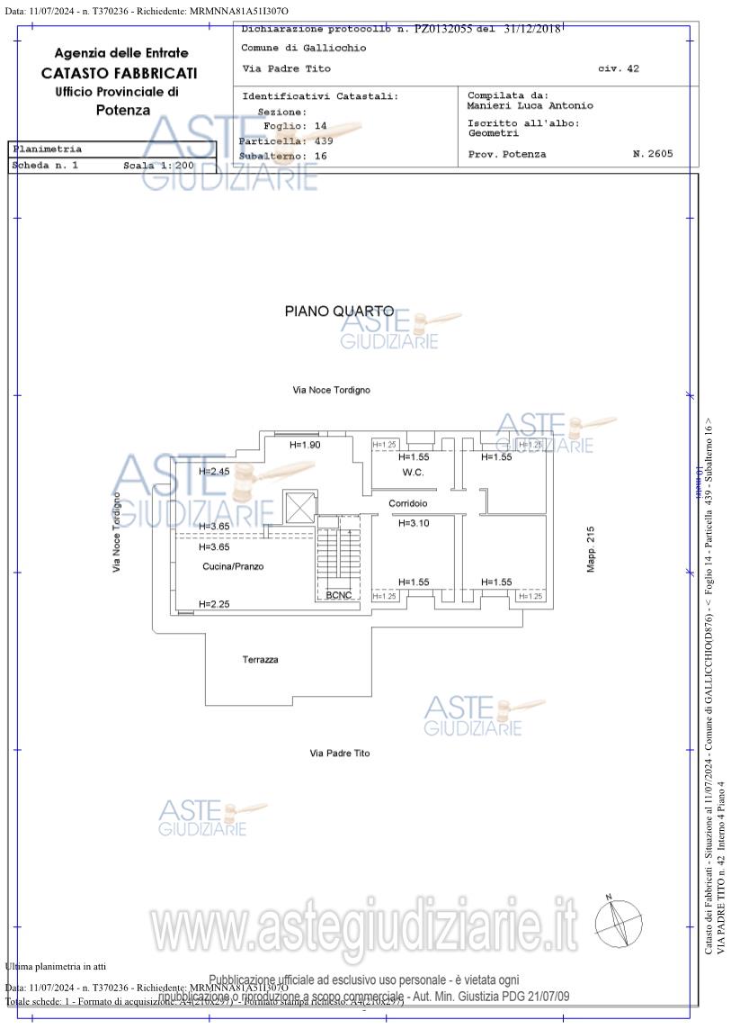 Vendita all'asta Senza incanto, con gara telematica asincrona - LOTTO 1: Appartamento al piano 4 . Prezzo base € 79.500,00 (offerta minima € 59.625,00). Data inizio operazioni di vendita: 08/05/2026 ore 16:00. Professionista delegato alla vendita Avv. Mario Addesso - Email "mario.addesso86@gmail.com"; Tel. 3291222870. Rif. Tribunale di Lagonegro - Esecuzione immobiliare post legge 80 n. 25/2023