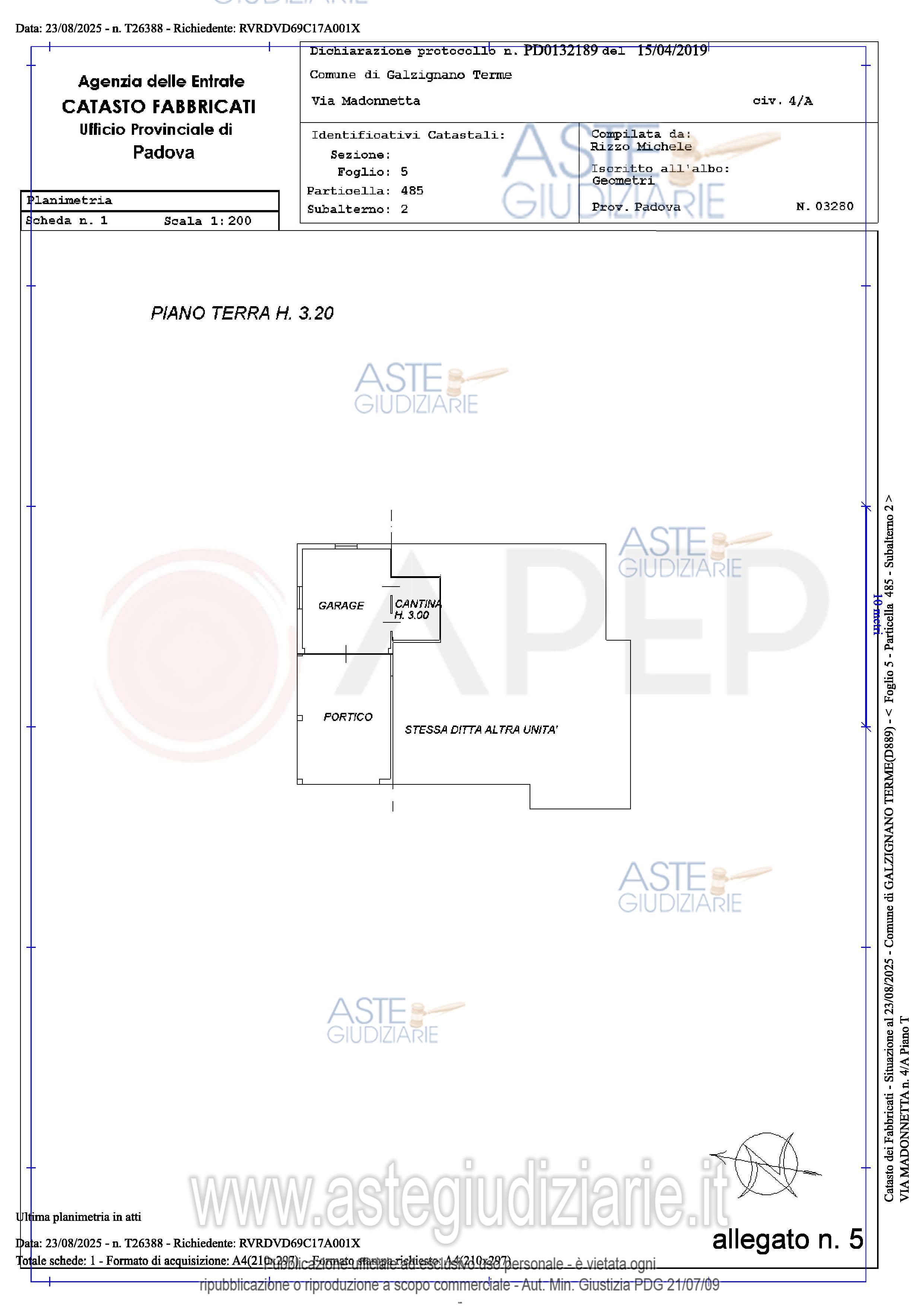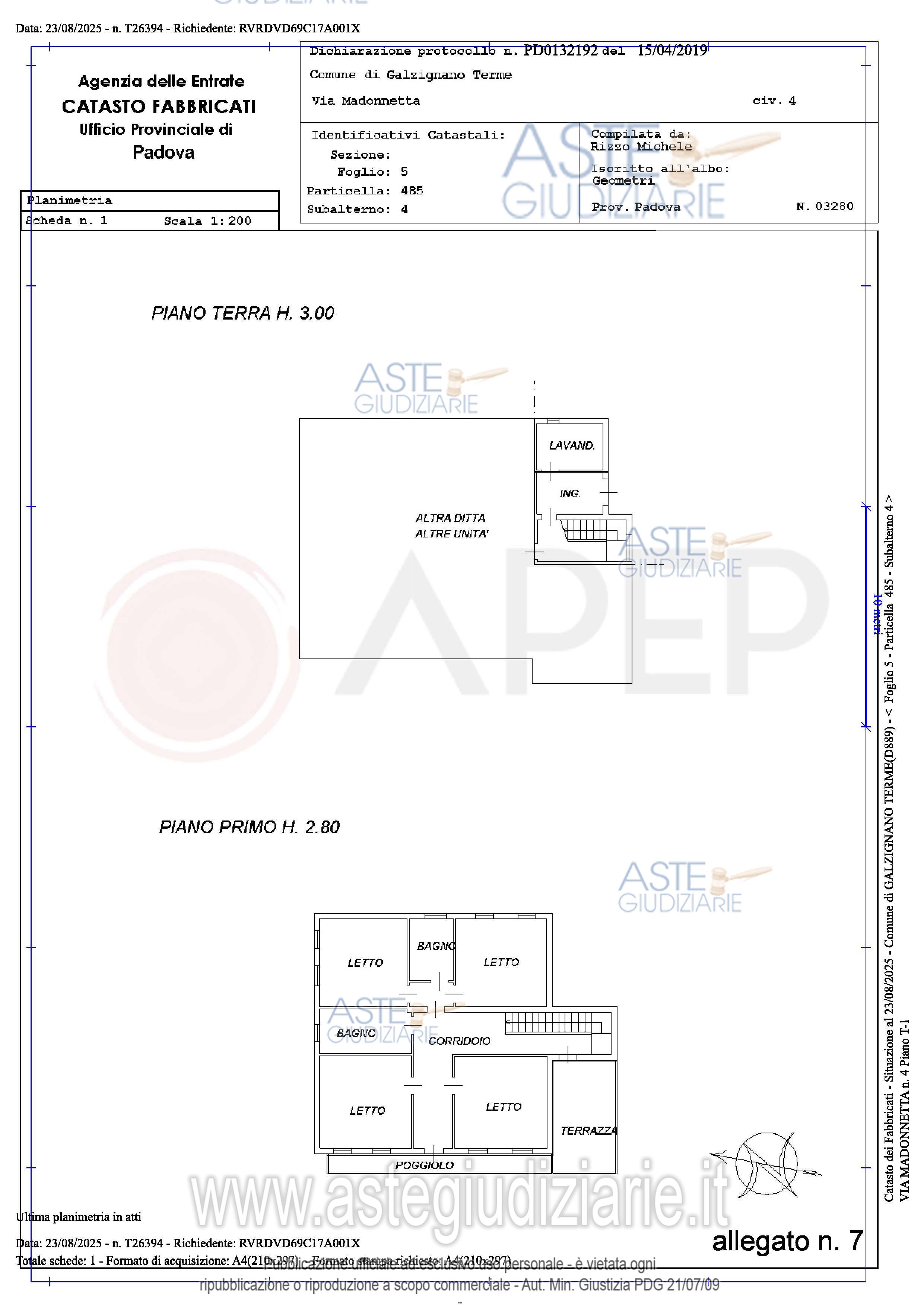 Vendita all'asta Senza incanto, con gara telematica sincrona - LOTTO UNICO: Lotto unico- piena proprietà di fabbricato bifamiliare, in Comune di Galzignano Terme (PD), via Madonnetta nn. 4 e 4/A, appartamento al piano terra di mq. 96 e garage al piano terra con annesso portico, cantina e locale caldaia di mq. 54; appartamento su due livelli: piano terra di mq. 24 e piano primo di mq 125 oltre al poggiolo-terrazza per una superficie lorda di mq 24; area coperta e scoperta di mq. 1.160 e così per una superficie commerciale di mq. 276. In parte libero, in parte in corso di liberazione. Prezzo base € 95.000,00 (offerta minima € 71.250,00). Data vendita 03/02/2026 ore 10:45. Giudice Amenduni. Professionista delegato alla vendita Not. Amelia Cuomo - Email "aste@apepnotai.it"; Tel. 049651228. Custode Giudiziario Apep - Email "visita@apepnotai.it"; Tel. 049651228. Rif. Tribunale di Padova - Esecuzione immobiliare post legge 80 n. 401/2010