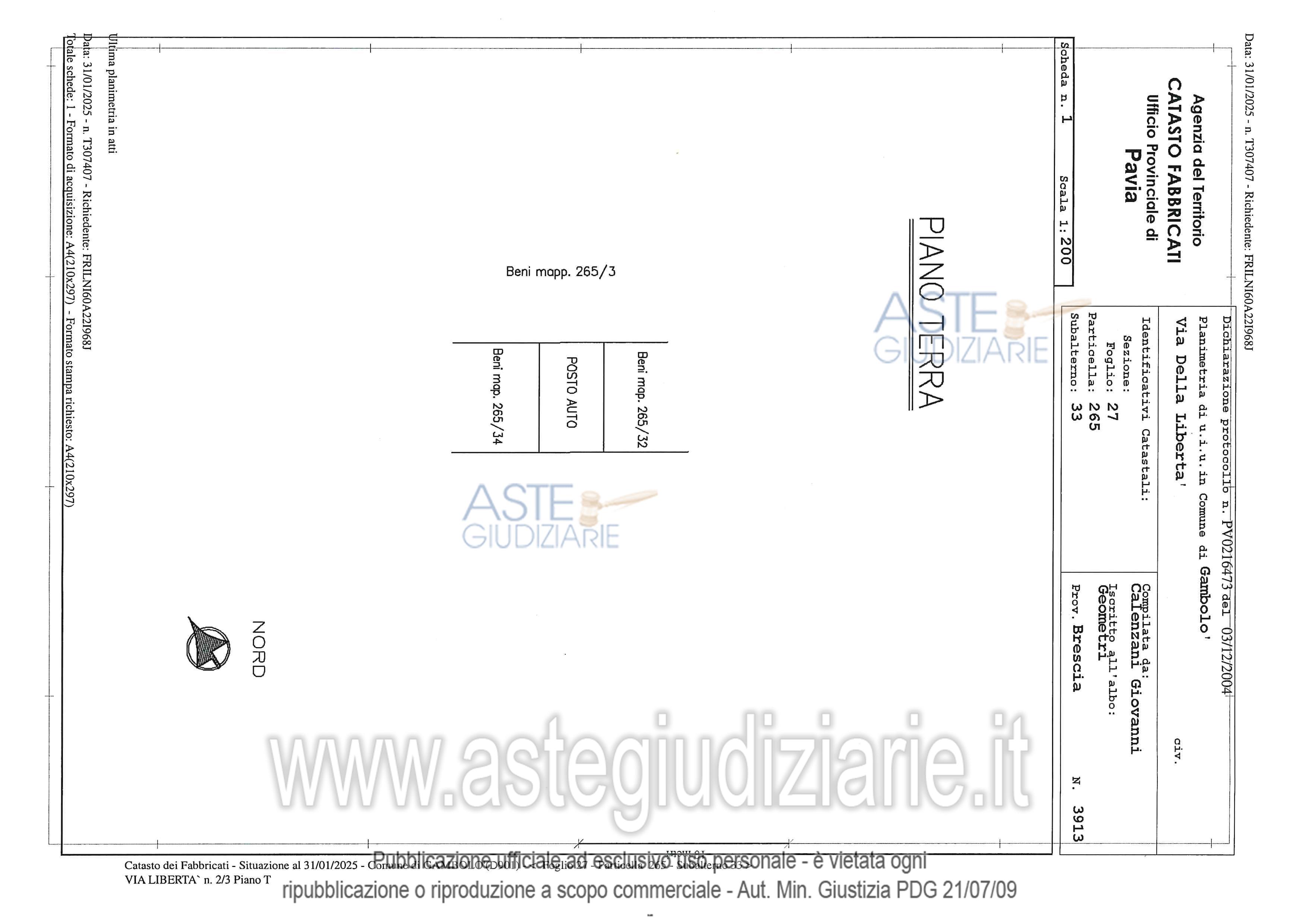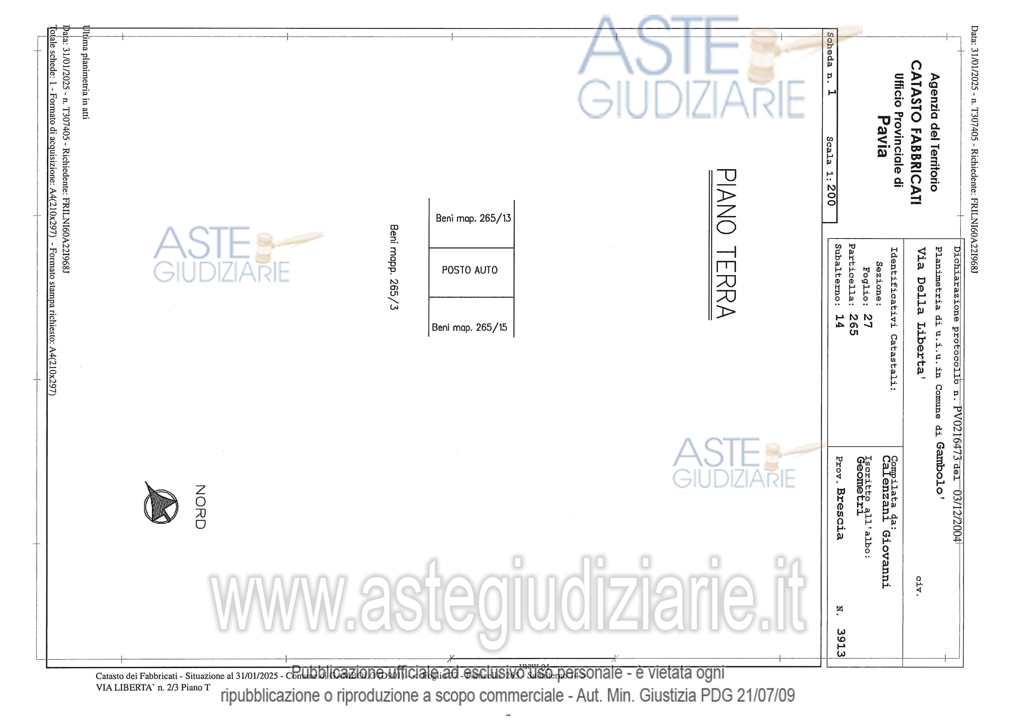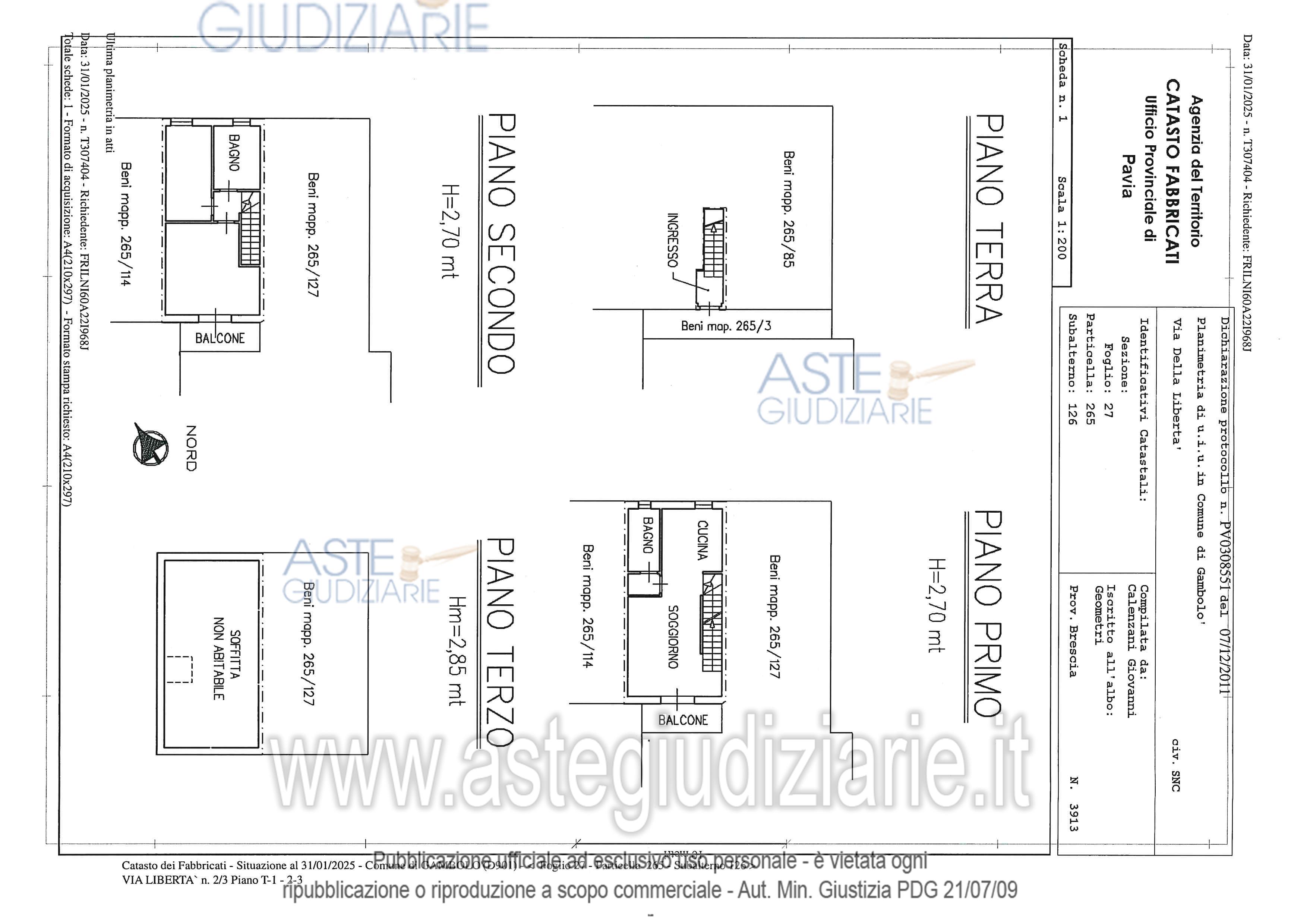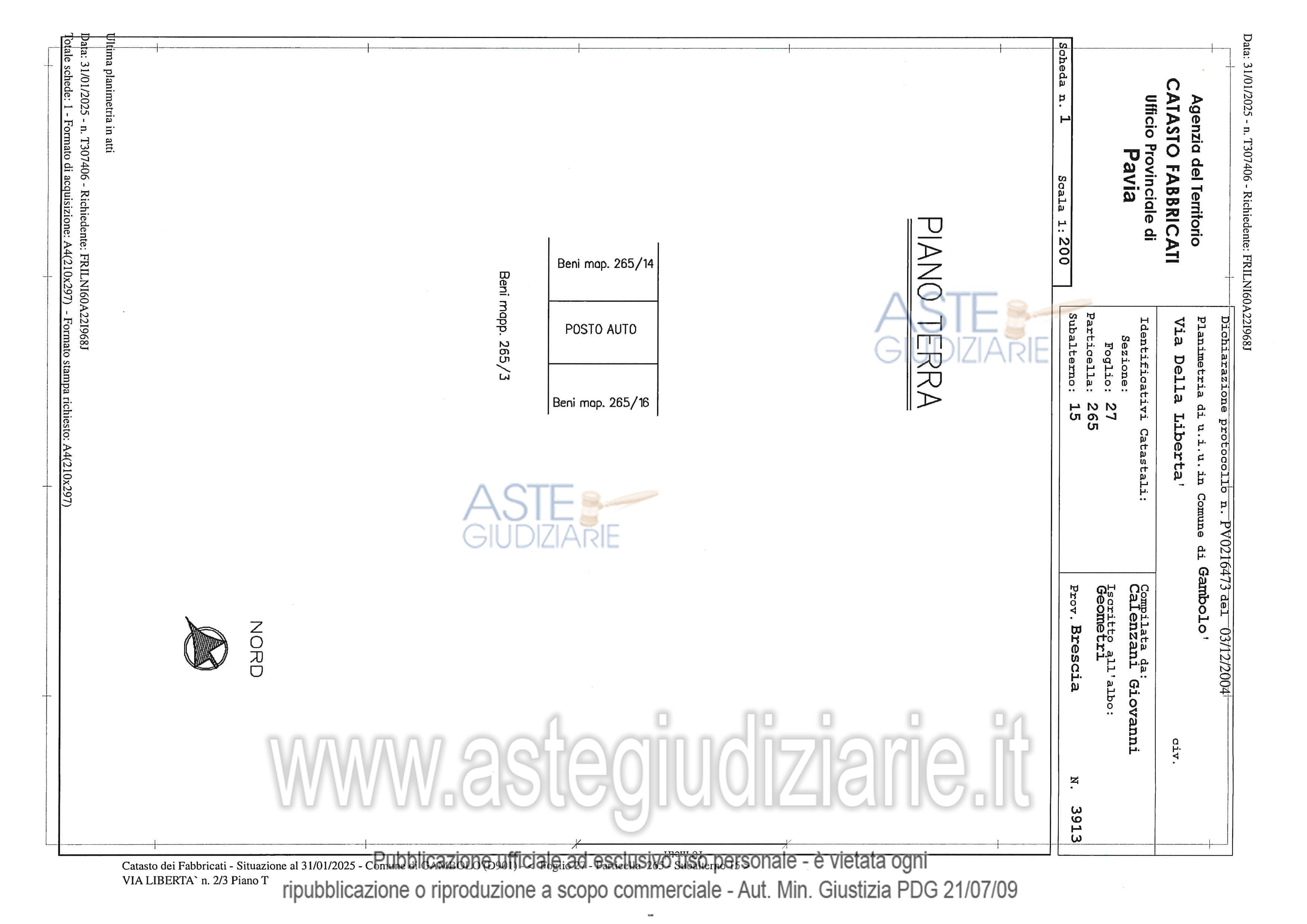 Vendita all'asta Senza incanto, con gara telematica asincrona - LOTTO UNICO: Abitazione disposta su più livelli e n. 3 posti auto esterni collocati entro il cortile di pertinenza dell'intero complesso, denominato condominio La Corte. L'immobile è costituito da: piccolo androne con scala di accesso al piano terra, soggiorno con cucina e zona pranzo in un unico ambiente, oltre a bagno al piano primo, camera da letto, cameretta - ripostiglio e bagno al piano secondo, il piano terzo ospita locale sottotetto attualmente utilizzato come ripostiglio. Prezzo base € 60.000,00 (offerta minima € 45.000,00). Data inizio operazioni di vendita: 29/01/2026 ore 15:30. Giudice Francesca Claris Appiani. Professionista delegato alla vendita Not. Francesco Gallotti - Email "notai@paviaesecuzioni.it"; Tel. 038234728. Custode Giudiziario Istituto Vendite Giudiziarie Srl Ifir Piemonte - Email "richiestevisite.vigevano@ifir.it"; Tel. 0381691137. Rif. Tribunale di Pavia - Espropriazione immobiliare (cartabia) n. 461/2024