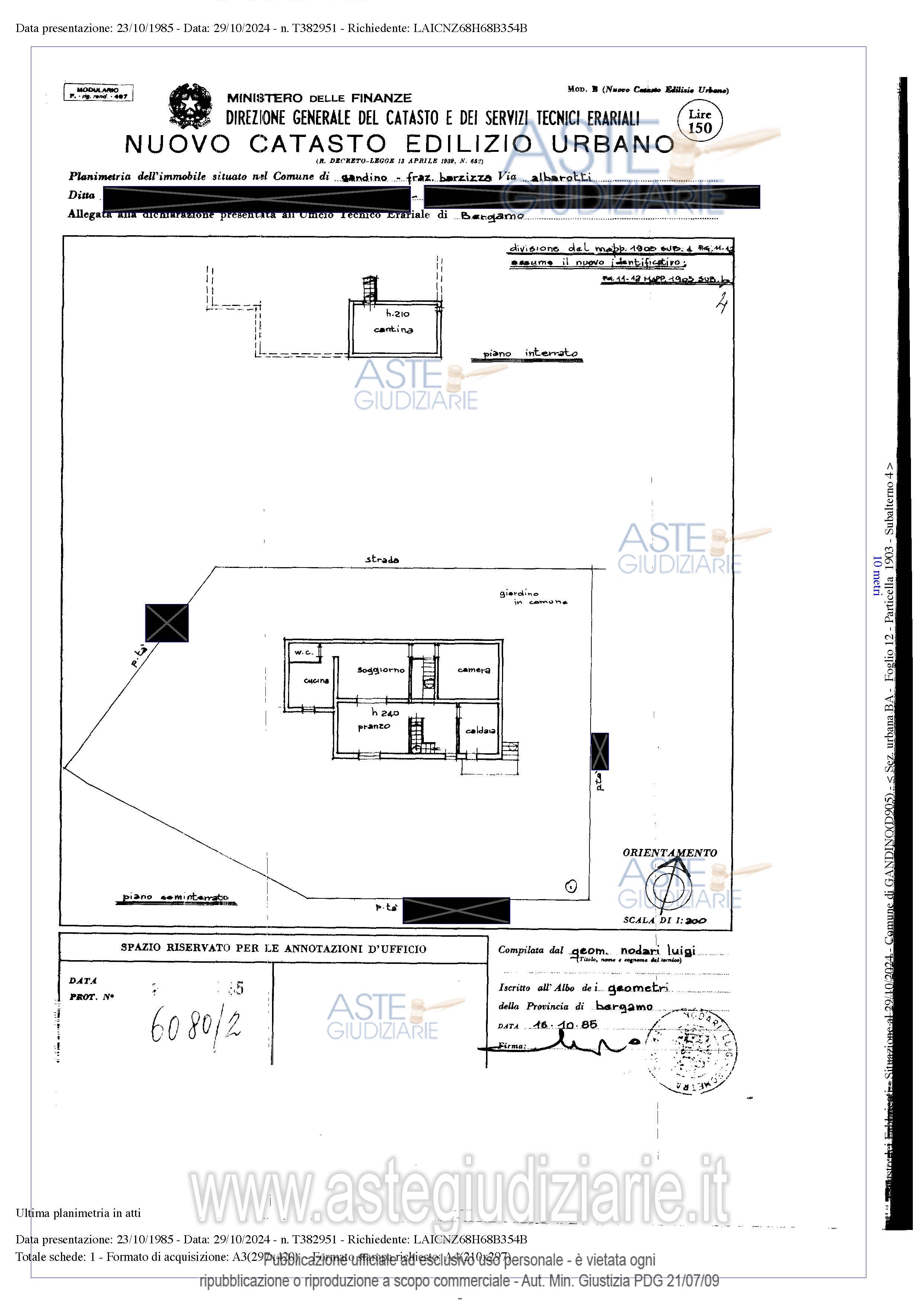 Vendita all'asta Senza incanto, con gara telematica asincrona - LOTTO UNICO: Edificio unifamiliare con giardino su tre piani complessivi (di cui uno fuori terra, uno seminterrato e uno interrato) composto da: ingresso, cucina, pranzo-soggiorno, disimpegno zona notte, due camere, due bagni, un balcone con accesso dal locale pranzo-soggiorno (piano terra), cucina, pranzo, soggiorno, camera, bagno, disimpegno zona scala, piccolo disimpegno zona bagno-cucina, locale caldaia (piano seminterrato), cantina (piano interrato) e box auto al piano terra. Prezzo base € 153.793,50 (offerta minima € 115.345,13). Data inizio operazioni di vendita: 27/01/2026 ore 15:00. Professionista delegato alla vendita Avv. Giulia Bettini - Email "g.bettini@ibiius.it"; Tel. 035223016. Custode Giudiziario Avv. Giulia Bettini - Email "g.bettini@ibiius.it"; Tel. 035223016. Rif. Tribunale di Bergamo - Espropriazione immobiliare (cartabia) n. 448/2024