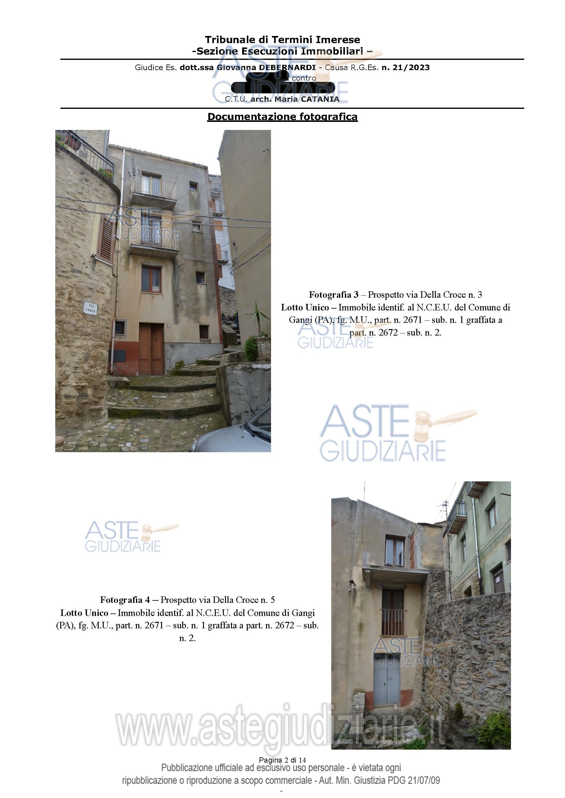 Vendita all'asta Senza incanto, con gara telematica sincrona - LOTTO UNICO: Fabbricato civile ubicato a Gangi (PA) - via Della Croce, nn. 3-5, Piano T - 1 - 2 - 3. Prezzo base € 14.117,64 (offerta minima € 10.588,23). Data vendita 12/01/2026 ore 11:00. Professionista delegato alla vendita Avv. Laura Gancitano - Email "avv.lauragancitano@libero.it"; Cell. 3285328562; Tel. 0917308790. Custode Giudiziario Avv. Laura Gancitano - Email "avv.lauragancitano@libero.it"; Cell. 3285328562; Tel. 0917308790. Rif. Tribunale di Termini Imerese - Esecuzione immobiliare post legge 80 n. 21/2023