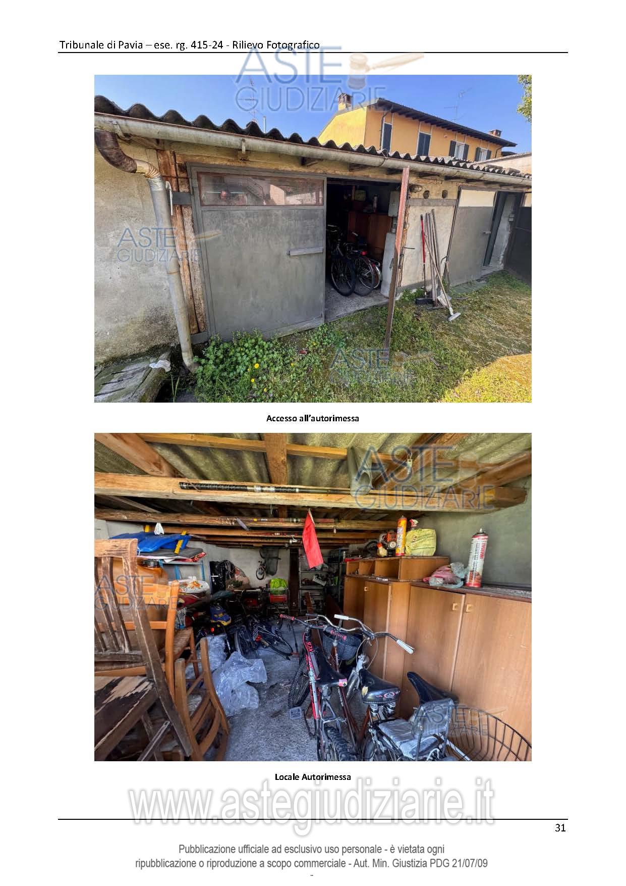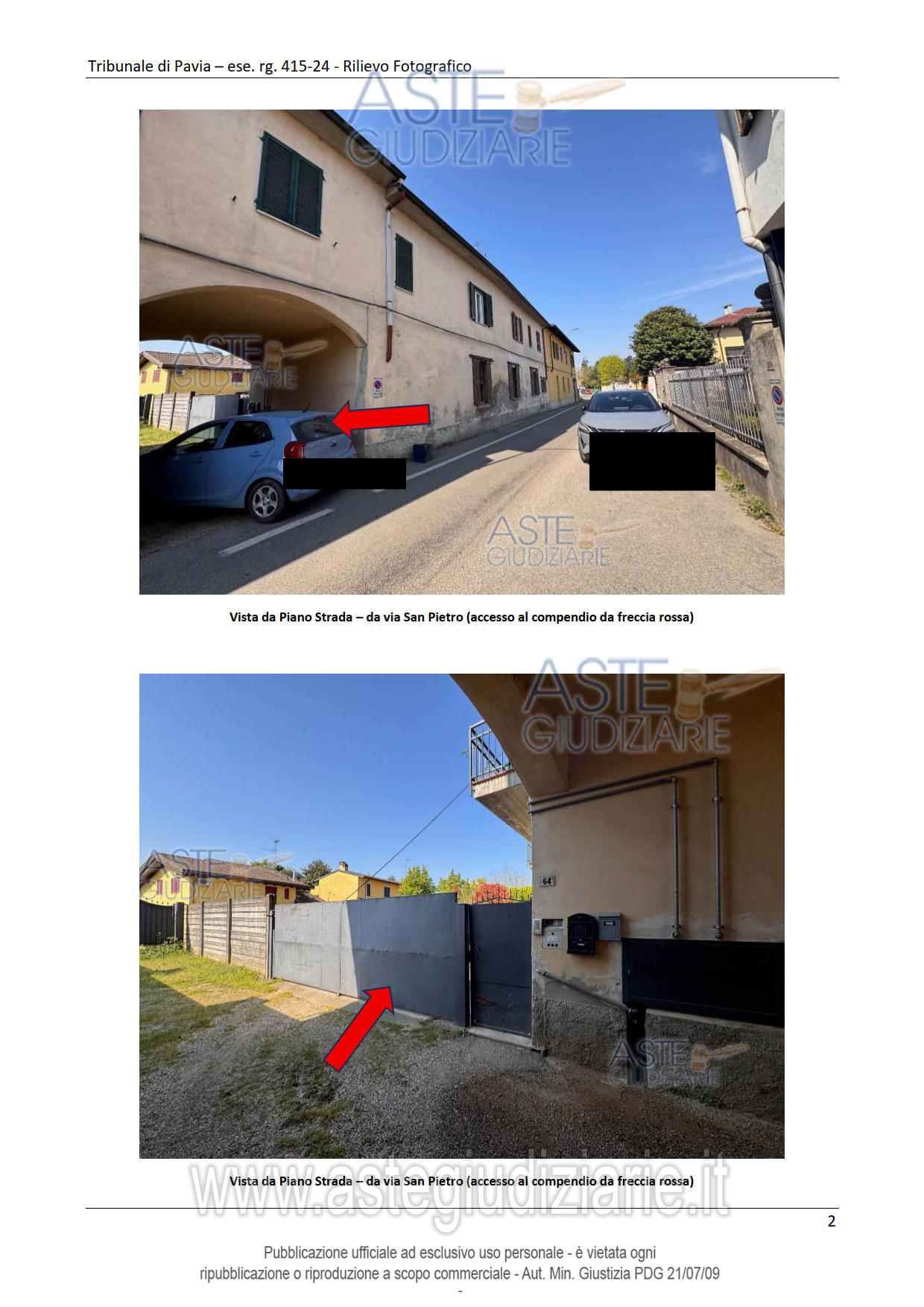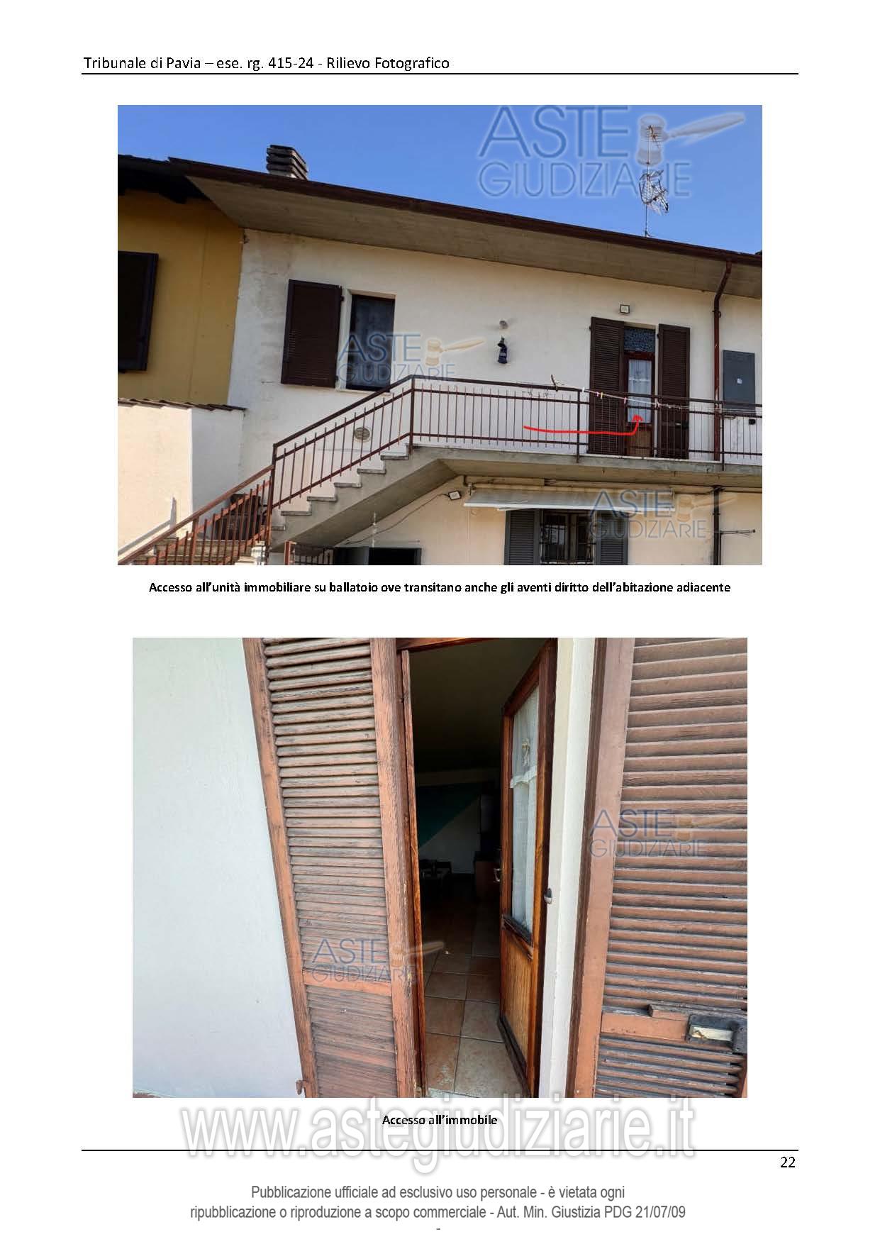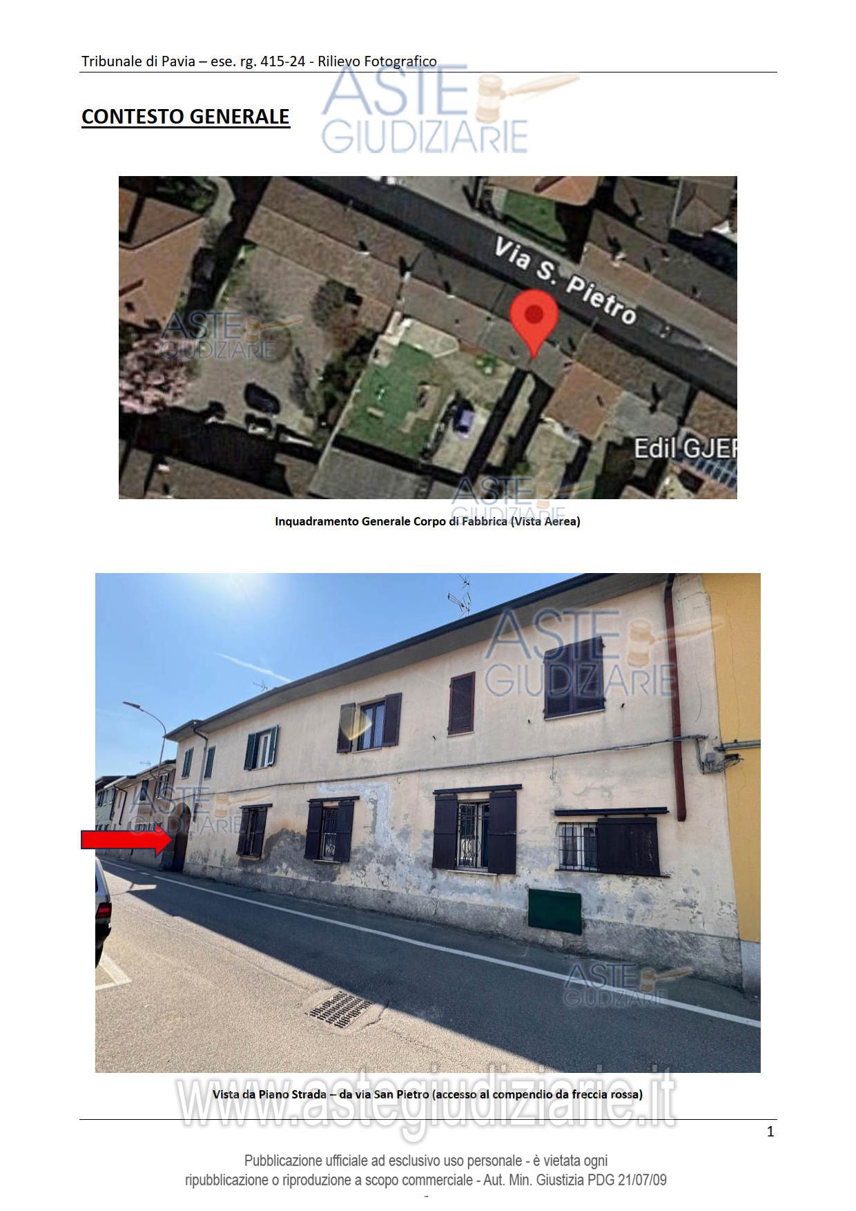 Vendita all'asta Senza incanto, con gara telematica asincrona - LOTTO UNICO: Abitazione di tipo popolare con accesso indipendente da cortile comune con altre unità immobiliari posta al piano terreno. Abitazione di tipo popolare con accesso indipendente da cortile comune e ballatoio comune po-sta al piano primo. Autorimessa. Prezzo base € 91.500,00 (offerta minima € 68.625,00). Data inizio operazioni di vendita: 29/04/2026 ore 14:00. Giudice Francesco Rocca. Professionista delegato alla vendita Avv. Andrea Bovone. Custode Giudiziario Ivg Vigevano - Email "immobiliarivigevano@ifir.it". Rif. Tribunale di Pavia - Espropriazione immobiliare (cartabia) n. 415/2024