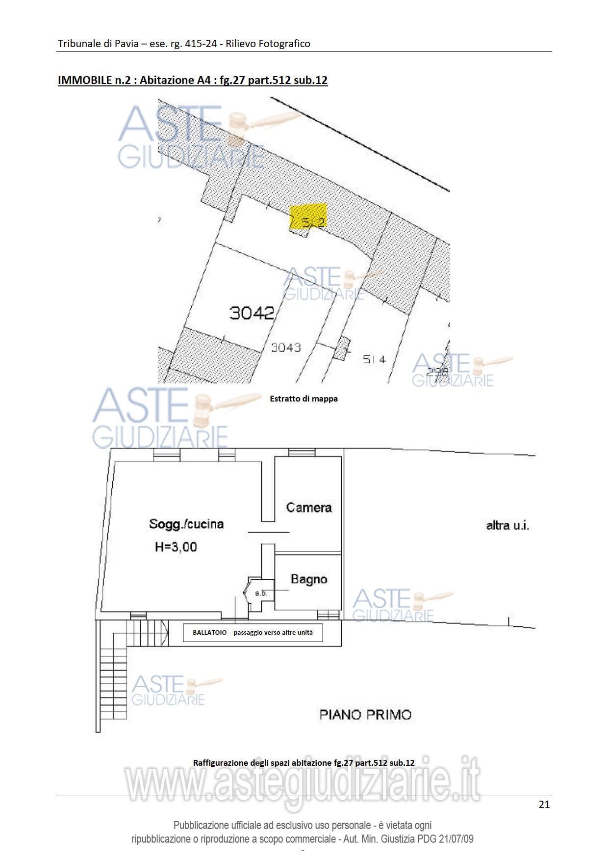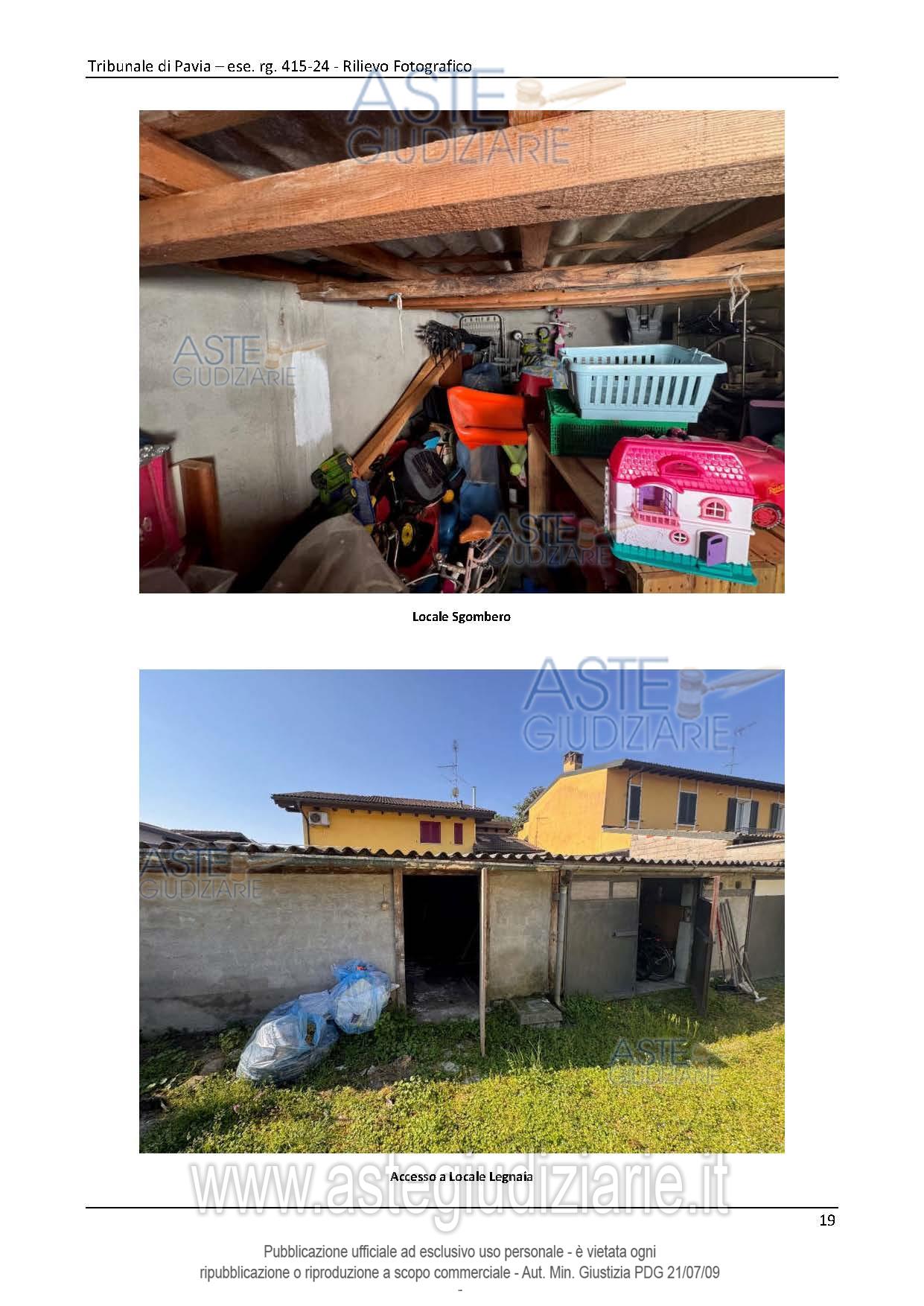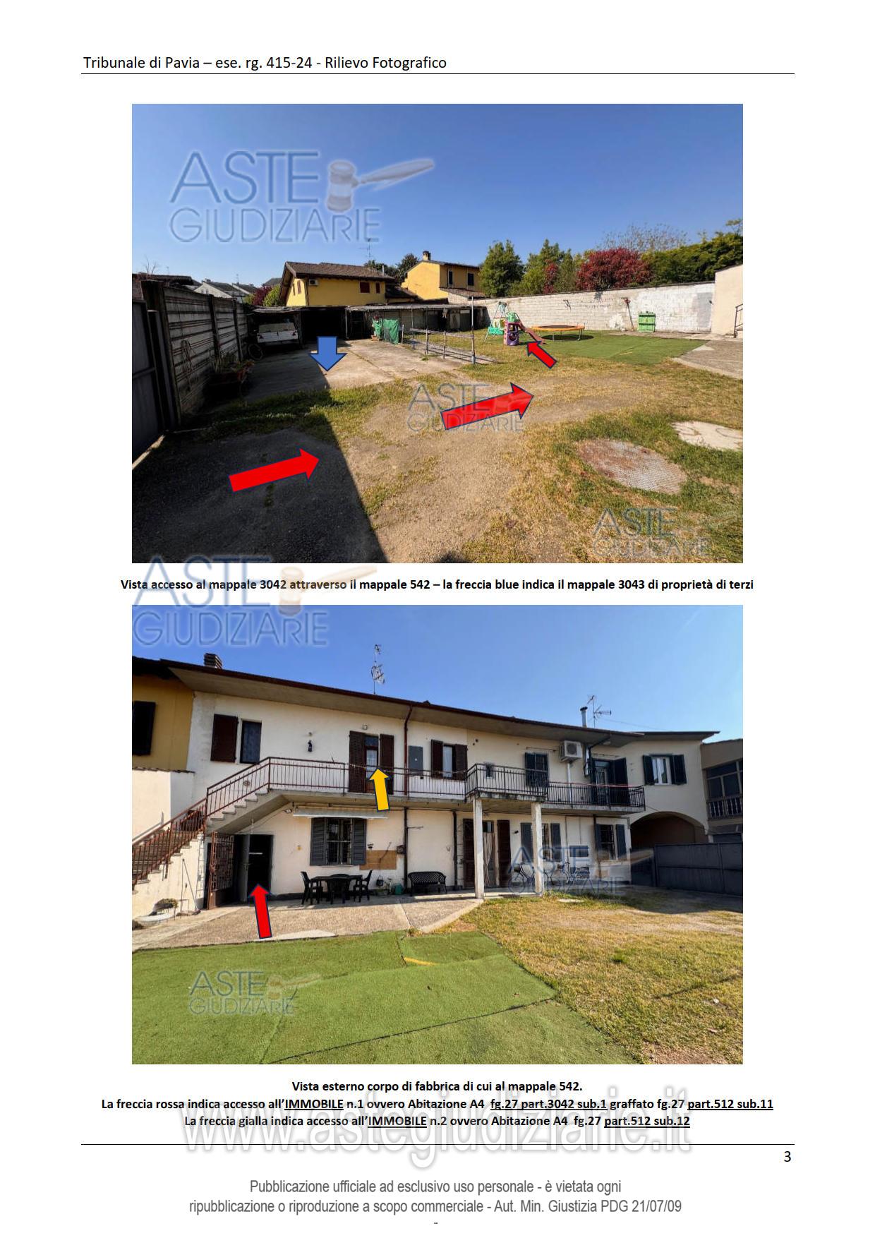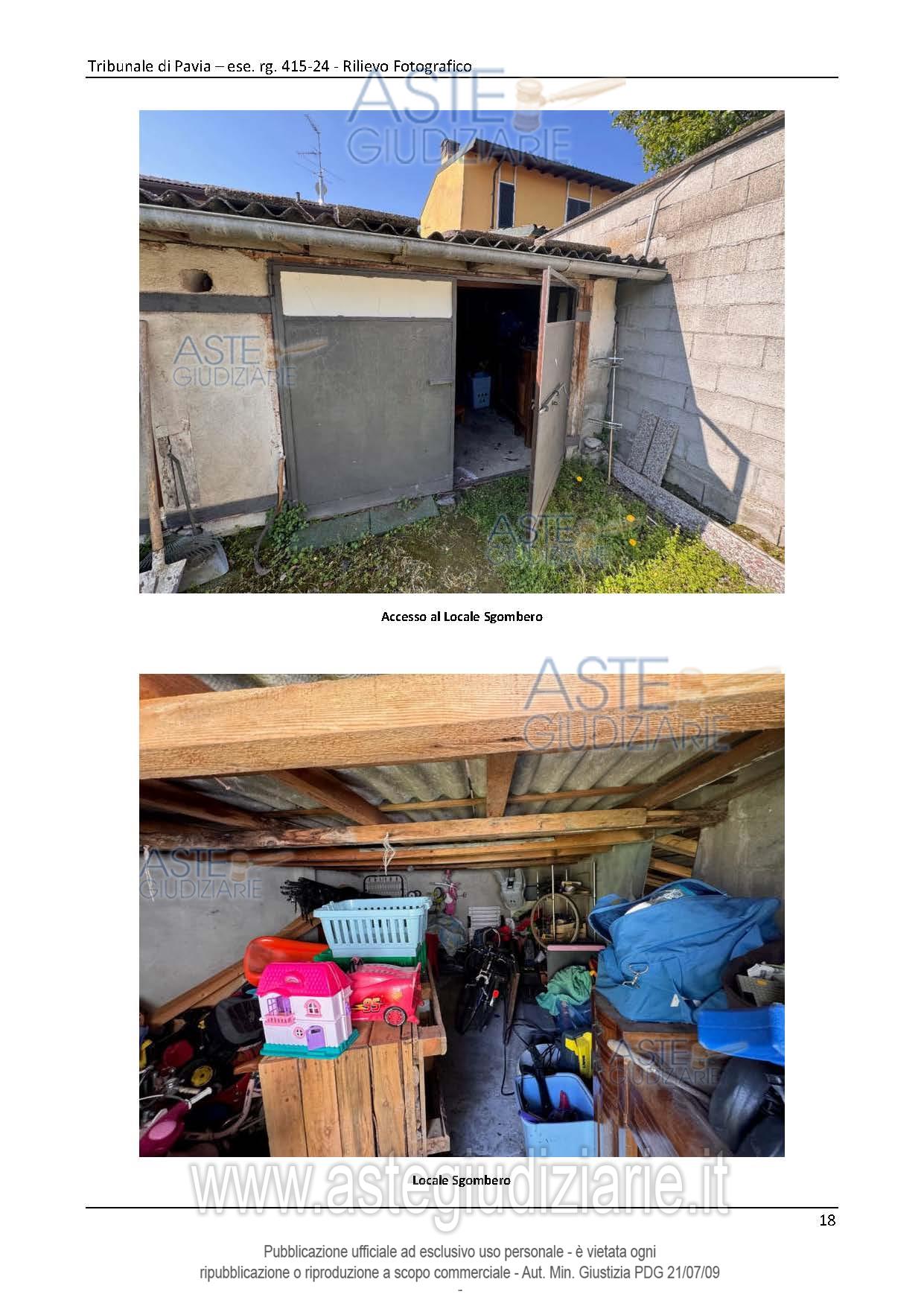 Vendita all'asta Senza incanto, con gara telematica asincrona - LOTTO UNICO: Abitazione di tipo popolare con accesso indipendente da cortile comune con altre unità immobiliari posta al piano terreno. Abitazione di tipo popolare con accesso indipendente da cortile comune e ballatoio comune po-sta al piano primo. Autorimessa. Prezzo base € 91.500,00 (offerta minima € 68.625,00). Data inizio operazioni di vendita: 29/04/2026 ore 14:00. Giudice Francesco Rocca. Professionista delegato alla vendita Avv. Andrea Bovone. Custode Giudiziario Ivg Vigevano - Email "immobiliarivigevano@ifir.it". Rif. Tribunale di Pavia - Espropriazione immobiliare (cartabia) n. 415/2024