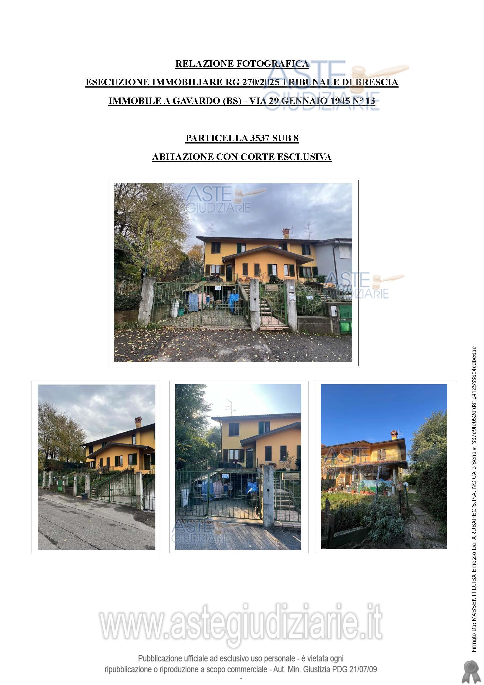 Vendita all'asta Senza incanto, con gara telematica asincrona - LOTTO UNICO: Appartamento su tre piani con cantina e autorimessa. Oltre alle proporzionali quote sulle parti comuni dell’edificio e in particolare i beni di cui al fg. 16, mapp. 3537, sub. 12 e 13. Prezzo base € 150.000,00 (offerta minima € 112.500,00). Data inizio operazioni di vendita: 06/05/2026 ore 10:30. Professionista delegato alla vendita Dott. Patrizia Gabelli. Custode Giudiziario Dott. Patrizia Gabelli - Email "info.bsimmobiliare@gmail.com". Rif. Tribunale di Brescia - Espropriazione immobiliare (cartabia) n. 270/2025