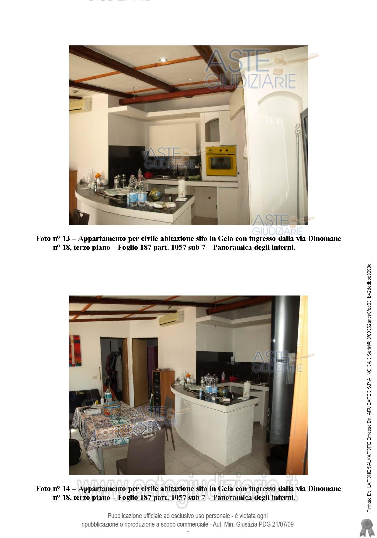 Vendita all'asta Senza incanto, con gara telematica sincrona mista - LOTTO 1: Appartamento per civile abitazione al terzo piano di un fabbricato sito in Gela (CL), con ingresso dalla via Dinomane n° 18 (già 22), avente superficie lorda di mq. 98,00 circa e balconi mq. 7,00 c. Prezzo base € 23.203,12 (offerta minima € 17.402,34). Data vendita 12/05/2026 ore 16:00. Professionista delegato alla vendita Avv. Floreana Cacioppo - Email "avvocatocacioppo@gmail.com"; Cell. 3929895761. Custode Giudiziario Avv. Floreana Cacioppo - Email "avvocatocacioppo@gmail.com"; Cell. 3929895761. Rif. Tribunale di Gela - Esecuzione immobiliare post legge 80 n. 28/2021
