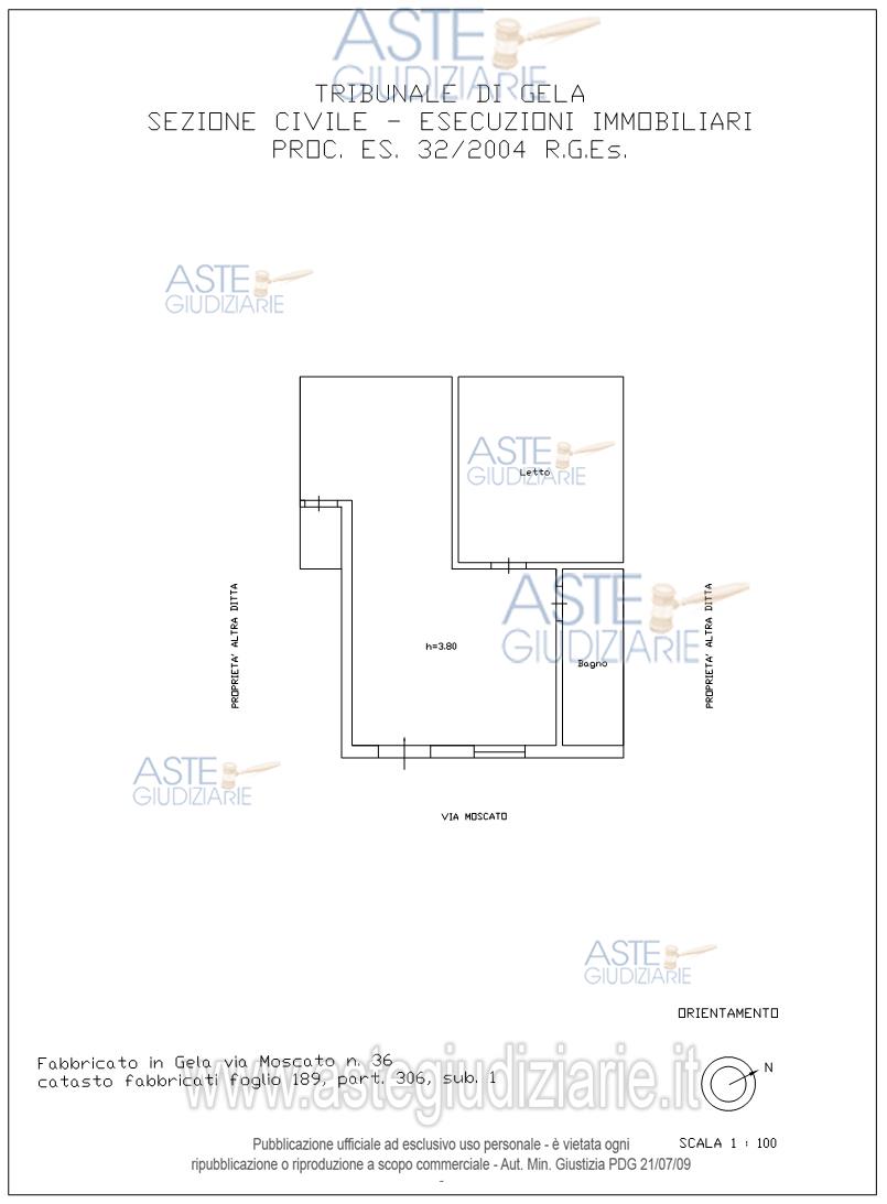 Vendita all'asta Senza incanto, con gara telematica sincrona mista - LOTTO 1: Quota 1/1 di appartamento ubicato in Gela, via Moscato n. 36, piano terra, censito al Catasto Fabbricati del Comune di Gela al foglio 189, particella 306, sub 1, categoria A/4, consistenza 3,5 vani, superficie commerciale di circa 65 mq, composta da un ingresso/soggiorno, camera da letto, bagno, ripostiglio e un soppalco in legno. Prezzo base € 51.500,00 (offerta minima € 38.625,00). Data vendita 30/06/2026 ore 17:00. Professionista delegato alla vendita Avv. Francesca Bellavia - Email "info@studiolegalebellavia.it"; Cell. 3497385415; Tel. 0933908428. Custode Giudiziario Avv. Francesca Bellavia - Email "info@studiolegalebellavia.it"; Cell. 3497385415; Tel. 0933908428. Rif. Tribunale di Gela - Esecuzione immobiliare post legge 80 n. 32/2004
