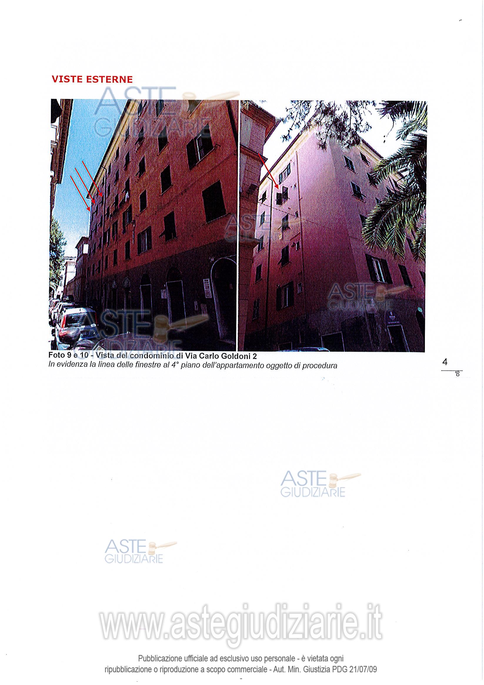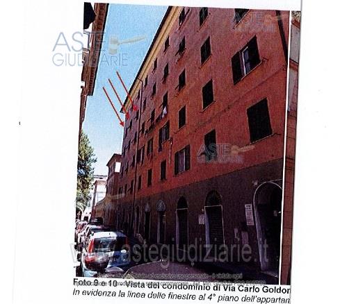 Vendita all'asta Senza incanto, con gara telematica sincrona mista - LOTTO UNICO: Appartamento sito in Genova, Via Carlo Goldoni 2/48, posto al quarto piano, composto da ingresso/soggiorno, dove è stato realizzato un ripostiglio, tre camere da letto, cucina e bagno. Prezzo base € 99.000,00 (offerta minima € 74.250,00). Data vendita 15/01/2026 ore 16:00. Professionista delegato alla vendita Avv. Manuela Ruzzier - Email "m.ruzzier@studiolegalebalbi.it"; Tel. 010252321. Custode Giudiziario Dott. Renata Boilini - Email "immobiliare@sovemo.com"; Tel. 0105299253. Rif. Tribunale di Genova - Esecuzione immobiliare post legge 80 n. 391/2020