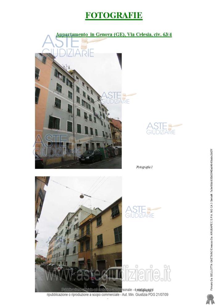 Vendita all'asta Senza incanto, con gara telematica sincrona mista - LOTTO UNICO: immobile ad uso abitativo situato in Comune di Genova (GE) – Via Celesia civico n. 63, interno 4, piano secondo, composto da ingresso, angolo di cottura, una camera, bagno e piccolo ripostiglio, descritto al Catasto Fabbricati alla Sez. RIV., Foglio 33, Mappale 32, Categoria A/4, Subalterno 32, Classe 4, vani 3, piano 2, rendita catastale Euro 185,92, mq.32;. Prezzo base € 12.800,00 (offerta minima € 9.600,00). Data vendita 15/01/2026 ore 14:30. Professionista delegato alla vendita Avv. Andrea Bach - Email "andrea.bach@hotmail.it"; Tel. 3472103679. Custode Giudiziario Sovemo - Email "visitegenova@sovemo.com"; Tel. 0105299253. Rif. Tribunale di Genova - Esecuzione immobiliare post legge 80 n. 149/2023