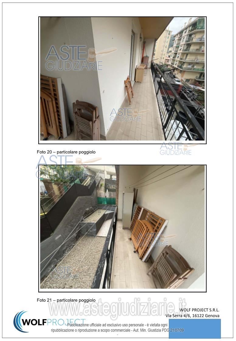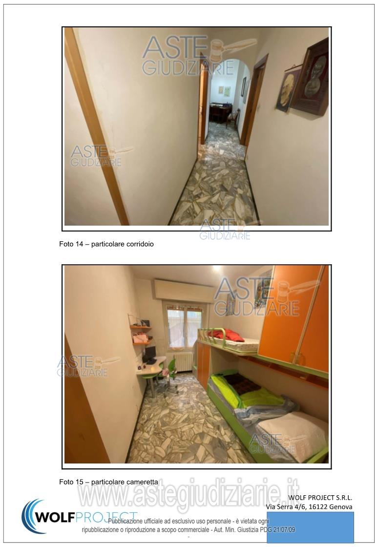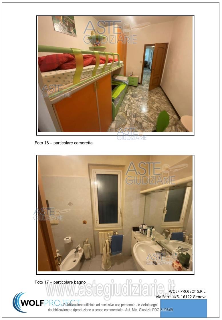 Vendita all'asta Senza incanto, con gara telematica sincrona mista - LOTTO UNICO: Appartamento posto al primo piano sottostrada rispetto al portone di accesso composto da: ingresso, cucina, bagno, ripostiglio, tre camere e ampio poggiolo.Superficie convenzionale 99,27 mq. Prezzo base € 87.400,00 (offerta minima € 65.550,00). Data vendita 28/11/2025 ore 14:00. Professionista delegato alla vendita Dott. Paola Di Gennaro - Tel. 0100925543. Custode Giudiziario Sovemo S.R.L. - Email "visitegenova@sovemo.com". Rif. Tribunale di Genova - Espropriazione immobiliare (cartabia) n. 382/2024