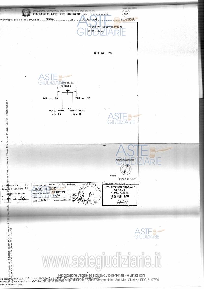 Vendita all'asta Senza incanto, con gara telematica sincrona mista - LOTTO 1: 100% DELLA PROPRIETA' DI IMMOBILE AD USO APPRTAMENTO UNITAMENTE A 100% DELLA PROPRIETA' DI IMMOBILE AD USO BOX PERTINENZIALE. Prezzo base € 71.739,50 (offerta minima € 53.804,63). Data vendita 30/10/2025 ore 15:00. Curatore Rag. Clara Draghi - Email "info@studio-draghi.com"; Cell. 3299893155; Tel. 0185325062. Rif. Tribunale di Genova - Fallimentare (nuovo rito) n. 90/2014