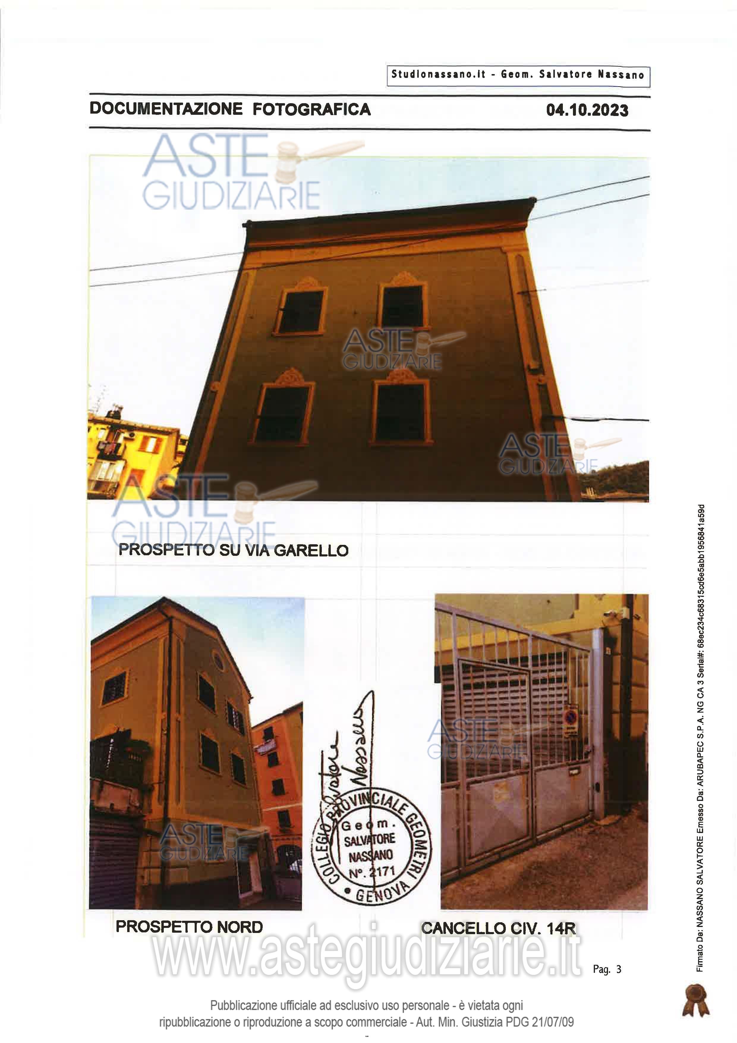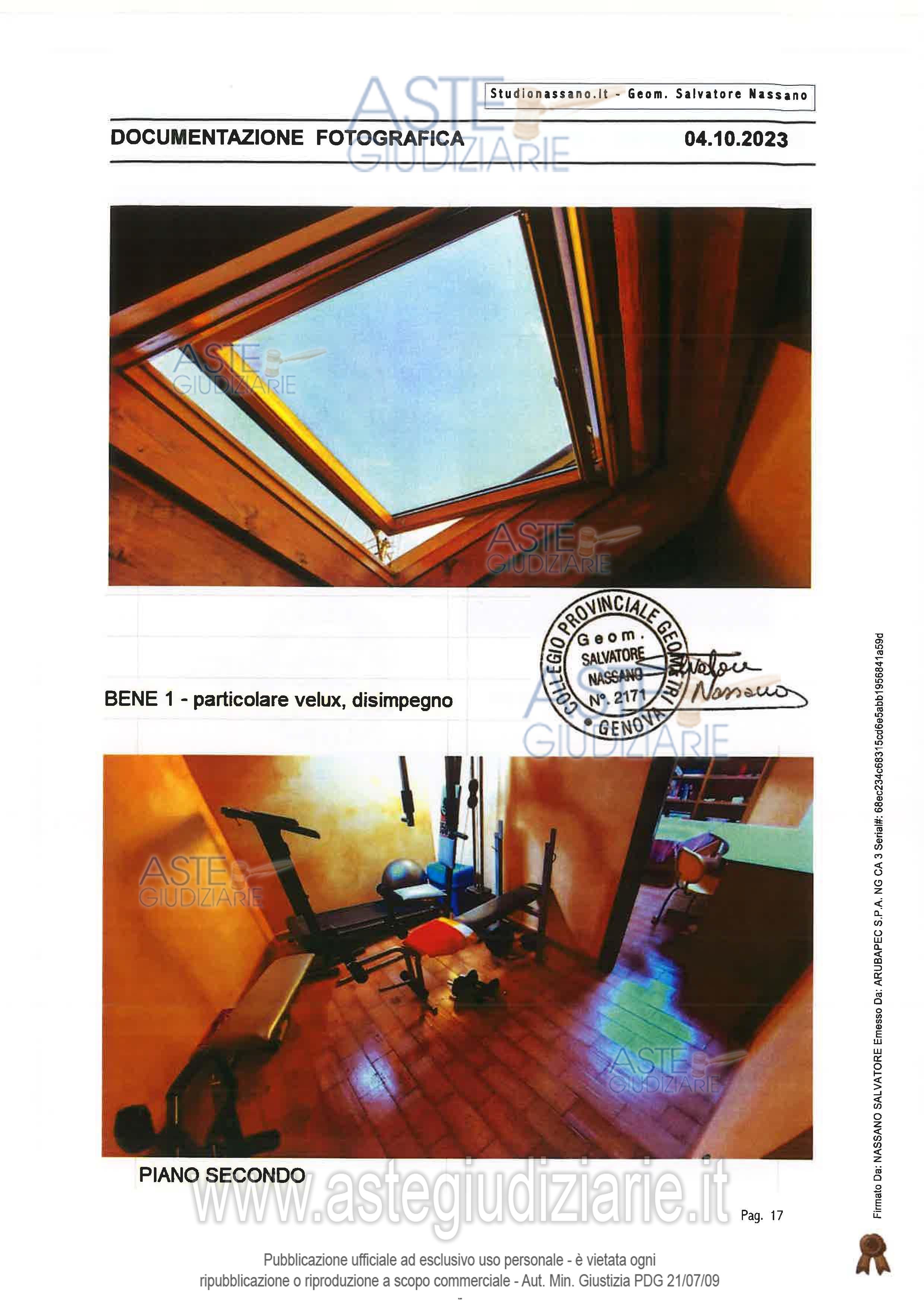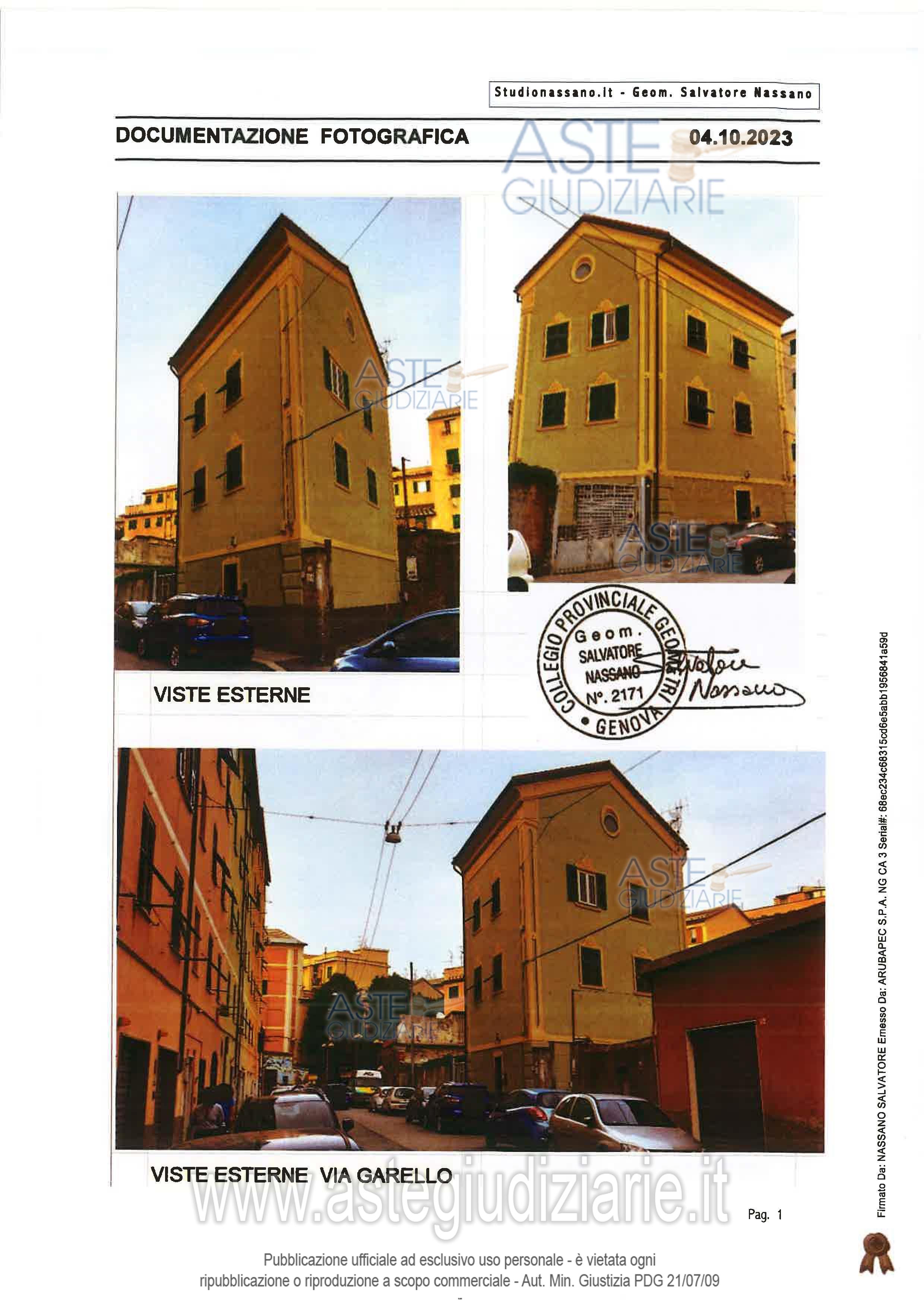 Vendita all'asta Senza incanto, con gara telematica sincrona mista - LOTTO UNICO: Appartamento ubicato a Genova (GE) - Via Garello Civ. 2, piano T-1-2 all'interno di un piccolo fabbricato a forma irregolare, che si eleva su tre piani fuori terra e composto dai due immobili oggetto della procedura con posto auto ubicato a Genova (GE) - Via Garello Civ. 14R. L’abitazione è disposta i piani Terra, Primo, Secondo e Sottotetto abitabile, livelli collegati tra loro da scala interna, con accesso indipendente dalla Via Garello, attraverso portoncino blindato ad un’anta. Prezzo base € 181.054,25 (offerta minima € 135.790,69). Data vendita 16/04/2026 ore 13:30. Professionista delegato alla vendita Dott. Davide Becucci - Email "davidebecucci@studiofrancardo.it"; Tel. 010566298. Custode Giudiziario Dott. Sovemo S.R.L. - Email "visitegenova@sovemo.com". Rif. Tribunale di Genova - Esecuzione immobiliare post legge 80 n. 156/2023