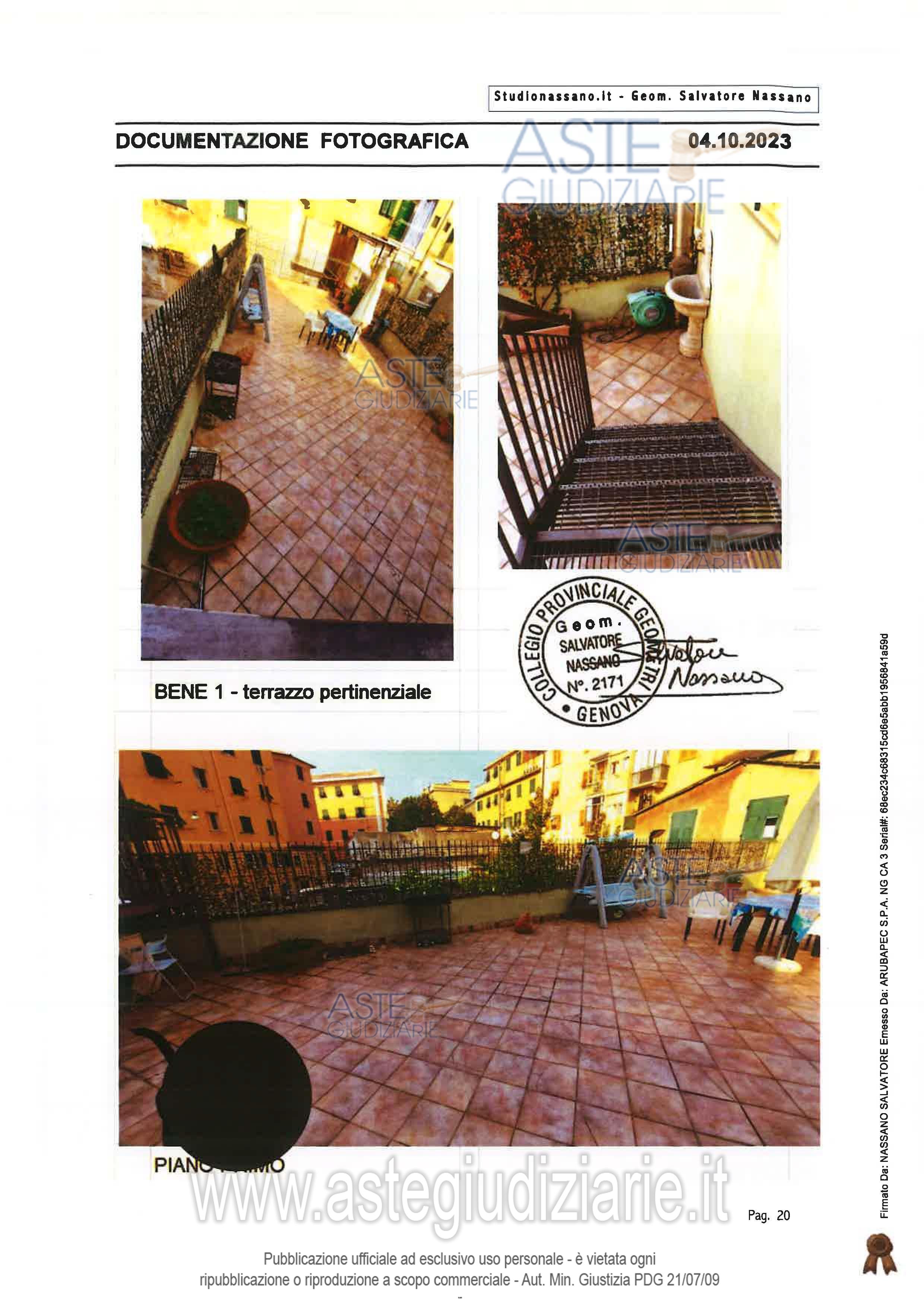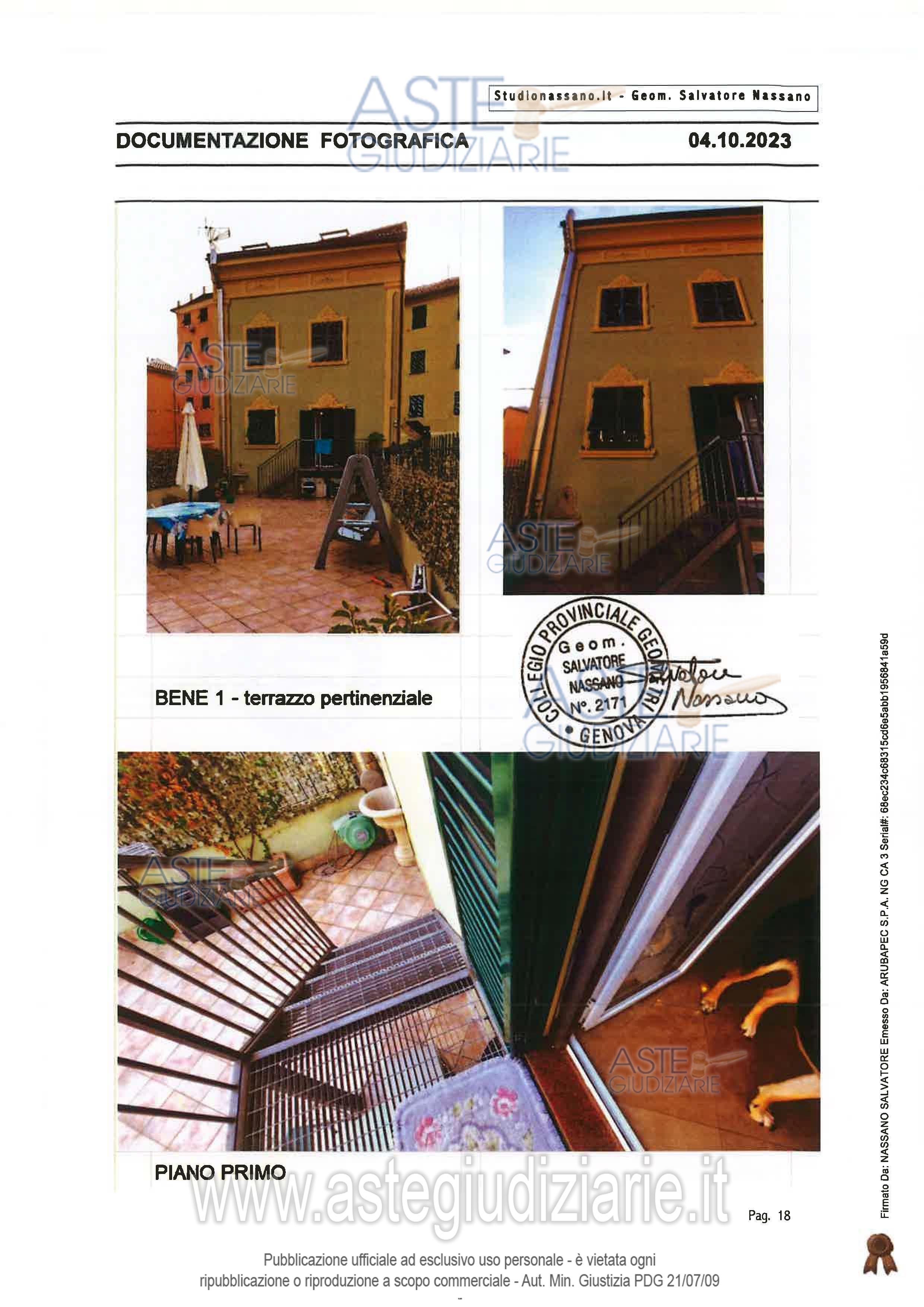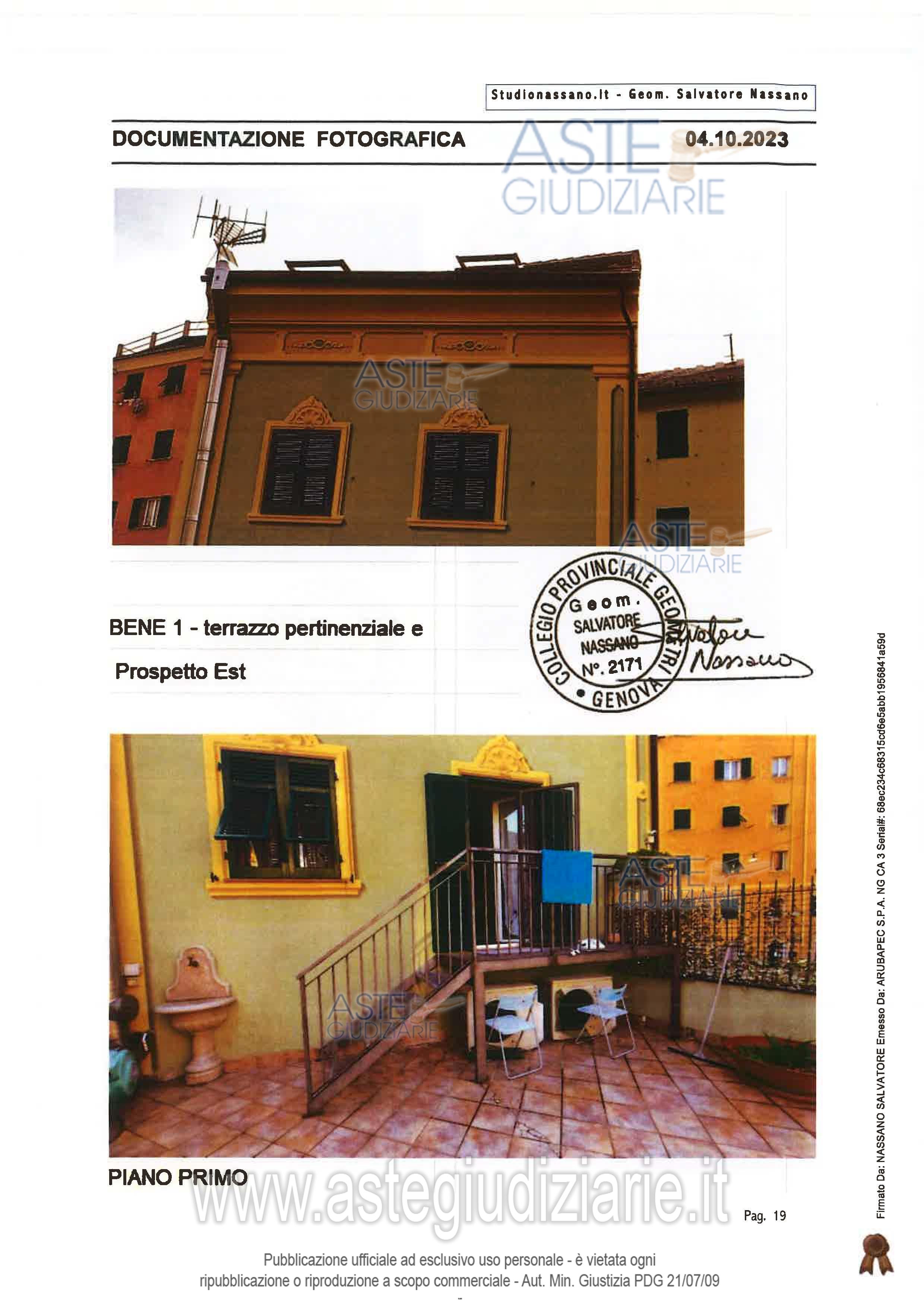 Vendita all'asta Senza incanto, con gara telematica sincrona mista - LOTTO UNICO: Appartamento ubicato a Genova (GE) - Via Garello Civ. 2, piano T-1-2 all'interno di un piccolo fabbricato a forma irregolare, che si eleva su tre piani fuori terra e composto dai due immobili oggetto della procedura con posto auto ubicato a Genova (GE) - Via Garello Civ. 14R. L’abitazione è disposta i piani Terra, Primo, Secondo e Sottotetto abitabile, livelli collegati tra loro da scala interna, con accesso indipendente dalla Via Garello, attraverso portoncino blindato ad un’anta. Prezzo base € 181.054,25 (offerta minima € 135.790,69). Data vendita 16/04/2026 ore 13:30. Professionista delegato alla vendita Dott. Davide Becucci - Email "davidebecucci@studiofrancardo.it"; Tel. 010566298. Custode Giudiziario Dott. Sovemo S.R.L. - Email "visitegenova@sovemo.com". Rif. Tribunale di Genova - Esecuzione immobiliare post legge 80 n. 156/2023