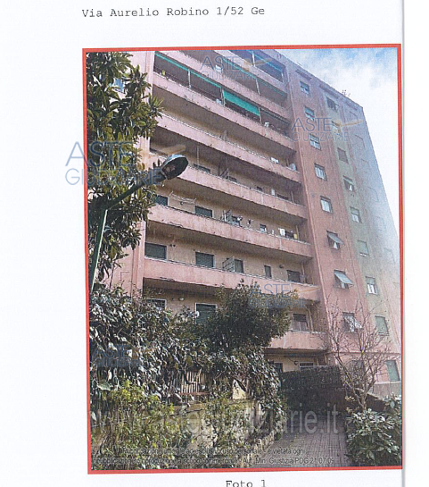 Vendita all'asta Senza incanto, con gara telematica sincrona mista - LOTTO UNICO: Appartamento in Genova, Via Aurelio Robino 1/52, posto al nono piano, composto da ingresso, cucina, soggiorno, due camere e due bagni. Prezzo base € 103.340,63 (offerta minima € 77.505,47). Data vendita 14/01/2026 ore 16:00. Professionista delegato alla vendita Avv. Andrea Lenzo - Email "a.lenzo@studiolegalebalbi.it"; Tel. 010252321. Custode Giudiziario Renata Boilini - Email "immobiliare@sovemo.com"; Tel. 0105299253. Rif. Tribunale di Genova - Espropriazione immobiliare (cartabia) n. 394/2023
