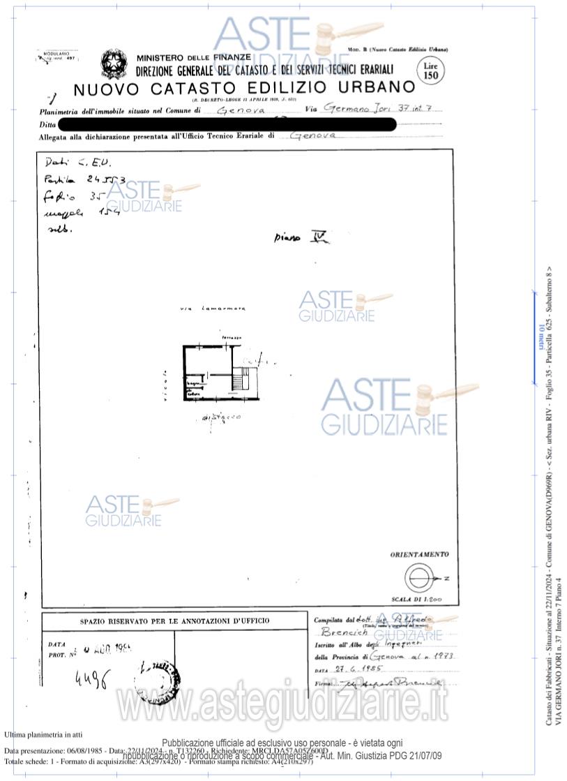 Vendita all'asta Senza incanto, con gara telematica sincrona mista - LOTTO UNICO: Nel Comune di Genova (GE), piena proprietà dell’appartamento sito in Via Germano Jori 37/7, posto al quarto piano, composto da tre vani catastali, con annesso terrazzo laterale, per una superficie commerciale lorda di circa mq. 36. Prezzo base € 28.795,00 (offerta minima € 21.596,25). Data vendita 28/04/2026 ore 16:30. Professionista delegato alla vendita Dott. Simone Lupi - Email "slupi@studiolupi.com"; Tel. 010589597. Custode Giudiziario Dott. Renata Boilini - Email "visitegenova@sovemo.com"; Tel. 0105299253. Rif. Tribunale di Genova - Espropriazione immobiliare (cartabia) n. 384/2024