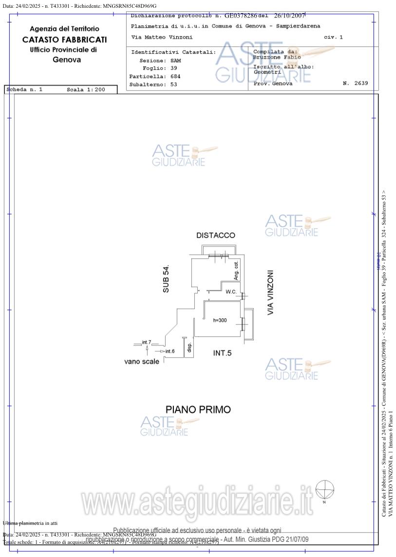 Vendita all'asta Senza incanto, con gara telematica sincrona mista - LOTTO UNICO:  Intera piena proprietà di appartamento ubicato in Genova, Via Matteo Vinzoni 1/6, piano 1. Prezzo base € 50.000,00 (offerta minima € 37.500,00). Data vendita 13/11/2025 ore 15:00. Professionista delegato alla vendita Dott. Elisa Papandrea - Email "elisa.papandrea@studiobenzi.com". Custode Giudiziario  Renata Boilini - Email "visitegenova@sovemo.com"; Tel. 0105299253.  Rif. Tribunale di Genova - Espropriazione immobiliare (cartabia) n. 38/2025