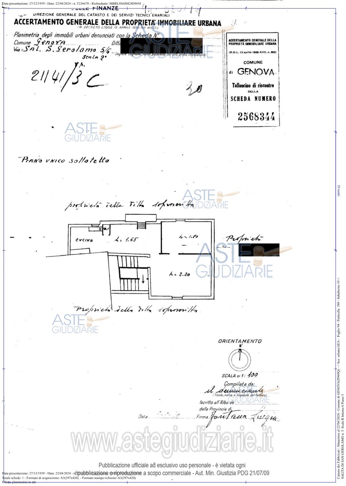 Vendita all'asta Senza incanto, con gara telematica sincrona mista - LOTTO UNICO: Intera piena proprietà dell’appartamento ubicato a Genova (GE) - Salita San Gerolamo civ. 5, scala B, interno 6, piano 5. Quota dell'intero di appartamento mansardato posto all'ultimo piano del condominio di Via San Gerolamo 5, composto da vano giorno open space, cucina, bagno e piccolo terrazzino in abbaino. Prezzo base € 131.000,00 (offerta minima € 98.250,00). Data vendita 11/12/2025 ore 14:00. Professionista delegato alla vendita Dott. Dante Benzi - Email "2segreteria@studiobenzi.com"; Tel. 010562281. Custode Giudiziario Sovemo Srl - Email "visitegenova@sovemo.com"; Tel. 0105299253. Rif. Tribunale di Genova - Esecuzione immobiliare post legge 80 n. 63/2024