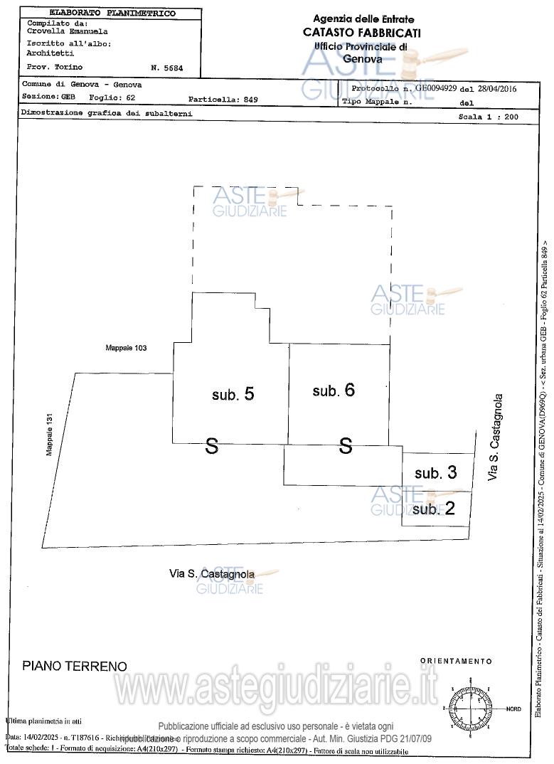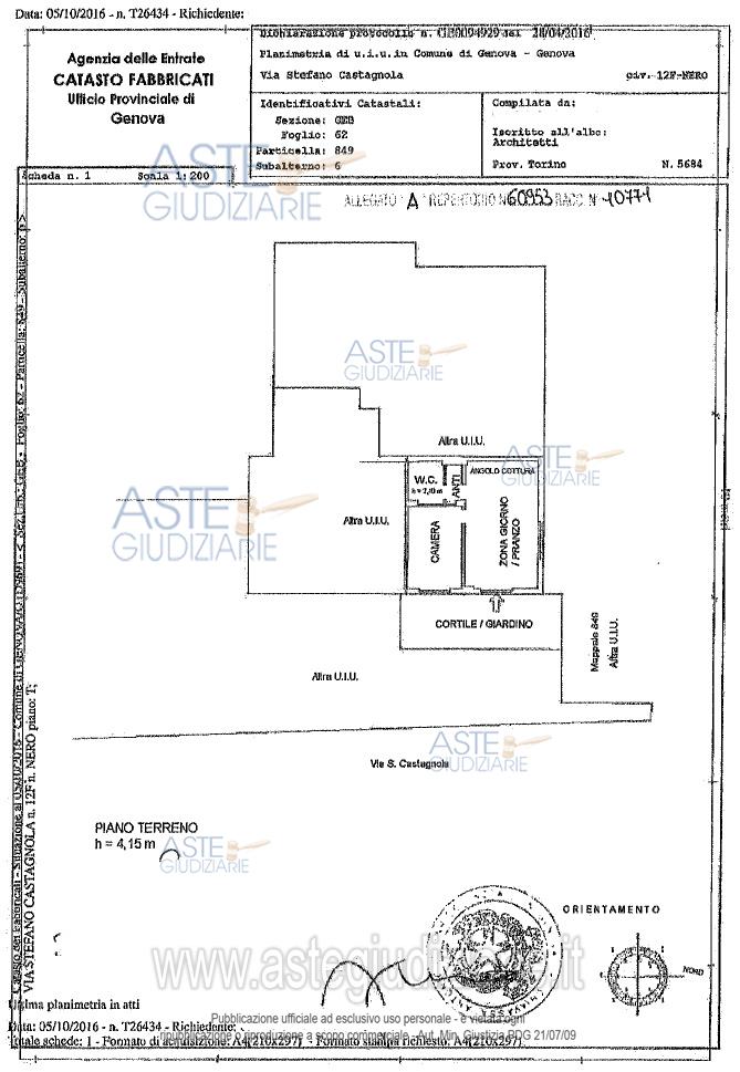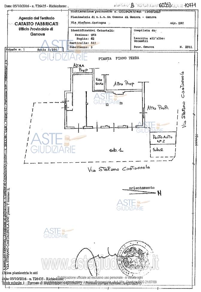 Vendita all'asta Senza incanto, con gara telematica sincrona mista - LOTTO UNICO: Avviso di vendita immobiliare - Appartamento sito nel comune di Genova (GE), Via Stefano Castagnola n. 12F – nero, piano terra, in abitazione civile, bilocale in discrete condizioni, termoautonomo con piccolo cortile e posto auto scoperto sito nel comune di Genova (GE) Via Stefano Castagnola n. SNC, piano terra, di mq. 13, sito in prossimità dell’appartamento. Prezzo base € 103.965,00 (offerta minima € 77.973,75). Data vendita 13/05/2026 ore 13:00. Professionista delegato alla vendita Dott. Paola Carbonaro - Email "paolacarbonaro@studioassociatocarbonaro.it"; Tel. 010593234. Custode Giudiziario Sovemo Srl - Email "visitegenova@sovemo.com"; Tel. 0105299253. Rif. Tribunale di Genova - Espropriazione immobiliare (cartabia) n. 222/2024