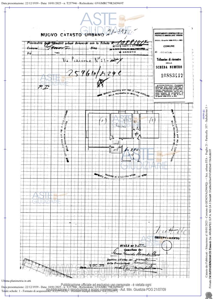 Vendita all'asta Senza incanto, con gara telematica sincrona mista - LOTTO UNICO: Tribunale di Genova RGE 241/2024 Lotto Unico - Appartamento sito in Genova, Via Piacenza 21 interno 7 piano 1, superficie lorda pari a circa 60 mq e superficie netta calpestabile pari a mq 53 composto da un ingresso, due camere da letto, un bagno, una cucina, un ripostiglio. L’alloggio è dotato di riscaldamento ed acqua calda prodotti da impianto autonomo (calderina). Il palazzo non risulta dotato di ascensore. Prezzo base € 38.549,46 (offerta minima € 28.912,10). Data vendita 10/04/2026 ore 14:00. Giudice Dott. Daniele Bianchi. Professionista delegato alla vendita Avv. Biancamaria De Bianchi - Email "biancamaria.debianchi@yahoo.it"; Cell. 3388506158; Tel. 0108311321. Custode Giudiziario Sovemo Srl - Email "immobiliare@sovemo.com"; Tel. 0105299253. Rif. Tribunale di Genova - Esecuzione immobiliare post legge 80 n. 241/2024