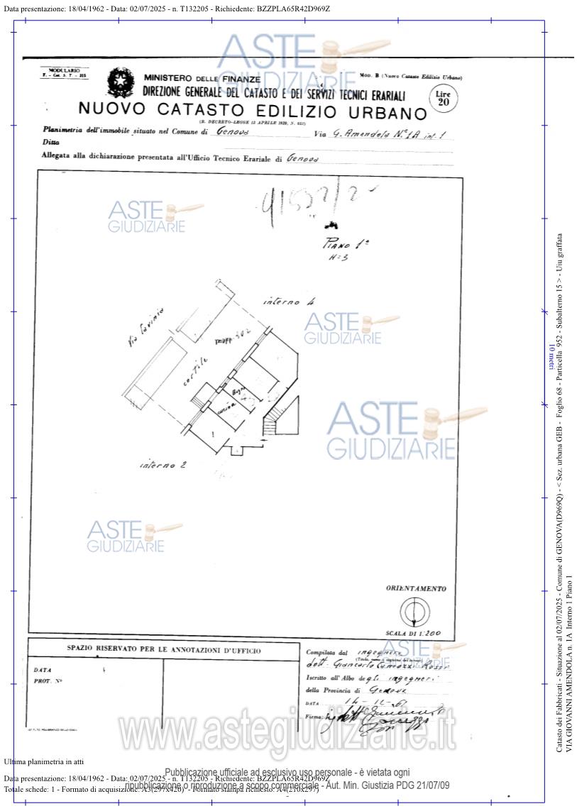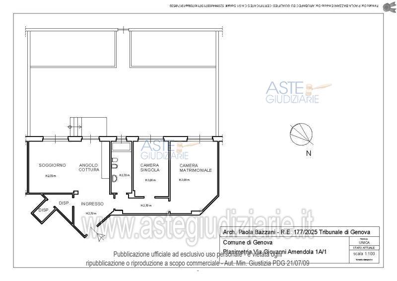 Vendita all'asta Senza incanto, con gara telematica sincrona mista - LOTTO 01: In Comune di Genova (GE), Via Giovanni Amendola civico 1A, piena proprietà di appartamento, contraddistinto con l’interno 1, posto al piano 1, composto da: ingresso, ampia zona giorno con angolo cottura, soggiorno, due camere, bagno, locale dispensa costituito da due locali comunicanti e giardino di proprietà esclusiva ad una quota inferiore di 1,16 mt. Prezzo base € 212.600,00 (offerta minima € 159.450,00). Data vendita 19/03/2026 ore 15:00. Giudice Chiara Monteleone. Professionista delegato alla vendita Avv. Marcello Campagna - Email "marcello.campagna@sla-ap.it"; Tel. 010541263. Custode Giudiziario Sovemo Srl - Email "immobiliare@sovemo.com"; Tel. 0105299253. Rif. Tribunale di Genova - Espropriazione immobiliare (cartabia) n. 177/2025