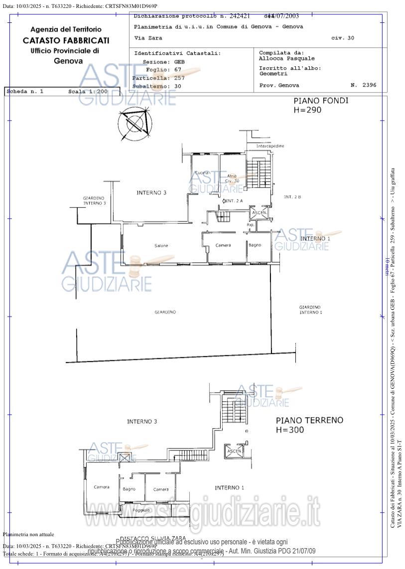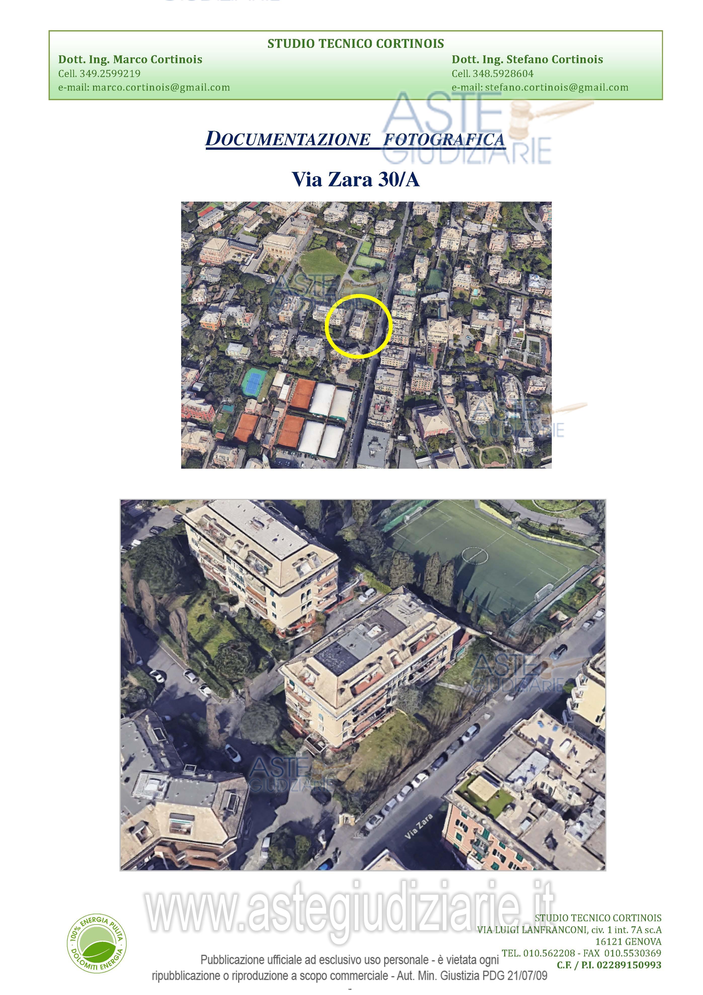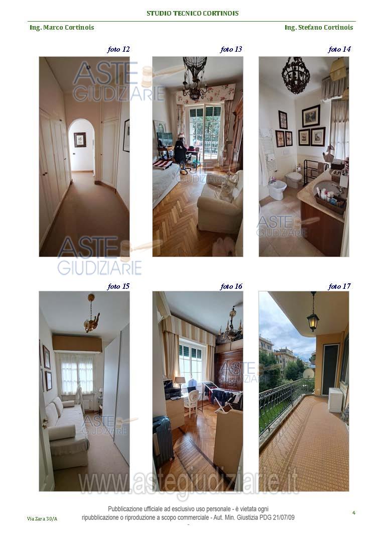 Vendita all'asta Competitiva, con gara telematica sincrona mista - LOTTO UNICO: Appartamento situato all'interno di un viale privato, appartamento al piano fondi e terreno composto da ingresso in disimpegno, cucina, piccolo ripostiglio, ampio salone affacciato sul giardino e con camino, camera con cabina armadio e bagno, scale che conducono al piano soprastante composto da corridoio in cui sono presenti due nicchie/ripostiglio, due camere, bagno e una piccola stanza, ampio giardino con accesso indipendente anche carrabile dal viale privato su via Zara. Prezzo base € 673.000,00 (offerta minima € 504.750,00). Data vendita 16/04/2026 ore 13:00. Professionista delegato alla vendita Dott. Irene Podestà - Email "irene.podesta@studioborrellichiavari.it". Custode Giudiziario Dott. Renata Boilini - Email "immobiliare@sovemo.com". Rif. Tribunale di Genova - Espropriazione immobiliare (cartabia) n. 485/2024
