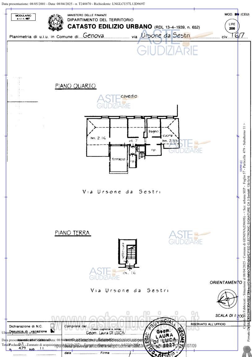 Vendita all'asta Senza incanto, con gara telematica sincrona mista - LOTTO 1: Piena proprietà dell’appartamento ubicato a Genova, via Ursone da Sestri, edificio 16, interno 7, piano 4 posto al piano sottotetto di un edificio di caratteristiche popolari, privo di ascensore. L’immobile è costituito da un ingresso/corridoio, tre camere, cucina, bagno, ripostiglio e terrazzo, con cantina di pertinenza. Prezzo base € 48.000,00 (offerta minima € 36.000,00). Data vendita 16/04/2026 ore 14:00. Giudice Dott. Pietro Spera. Professionista delegato alla vendita Avv. Matteo Lacagnina - Email "mlacagnina@studiolegalefel.it"; Cell. 3338130421; Tel. 0108955082. Custode Giudiziario Sovemo Srl - Email "visitegenova@sovemo.com". Rif. Tribunale di Genova - Espropriazione immobiliare (cartabia) n. 29/2025
