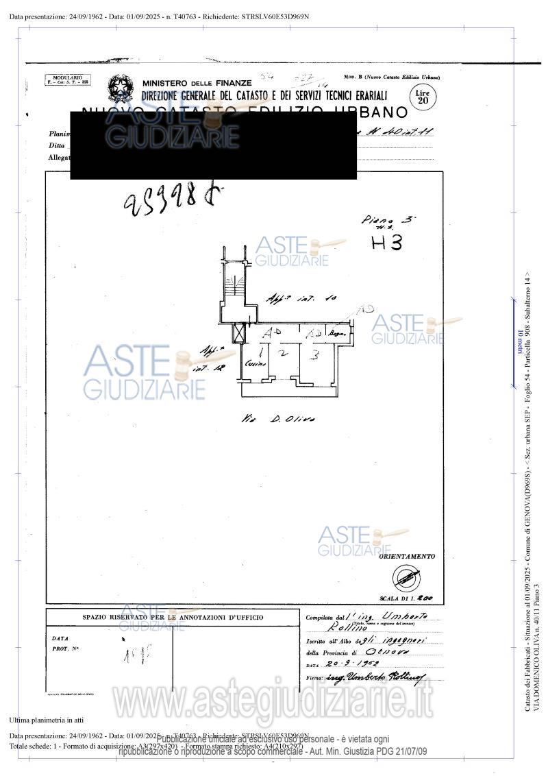 Vendita all'asta Senza incanto, con gara telematica sincrona mista - LOTTO 3: intera proprietà di appartamento ubicato a Genova (GE) - via D.Oliva, civ. 40/11, interno 11, piano 3. Prezzo base € 67.688,00 (offerta minima € 50.766,00). Data vendita 15/05/2026 ore 15:00. Professionista delegato alla vendita Avv. Federica Canu - Email "f.canu@libero.it"; Cell. 3455933377. Custode Giudiziario Dott. Sovemo Srl - Email "visitegenova@sovemo.com"; Tel. 0105299253. Rif. Tribunale di Genova - Espropriazione immobiliare (cartabia) n. 186/2025