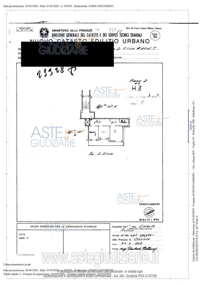 Vendita all'asta Senza incanto, con gara telematica sincrona mista - LOTTO 2: Intera proprietà di appartamento ubicato a Genova (GE) - via D.Oliva, civ. 40/7, interno 7, piano 2. Prezzo base € 65.206,00 (offerta minima € 48.905,00). Data vendita 15/05/2026 ore 14:30. Professionista delegato alla vendita Avv. Federica Canu - Email "f.canu@libero.it"; Cell. 3455933377. Custode Giudiziario Dott. Sovemo Srl - Email "visitegenova@sovemo.com"; Tel. 0105299253. Rif. Tribunale di Genova - Espropriazione immobiliare (cartabia) n. 186/2025