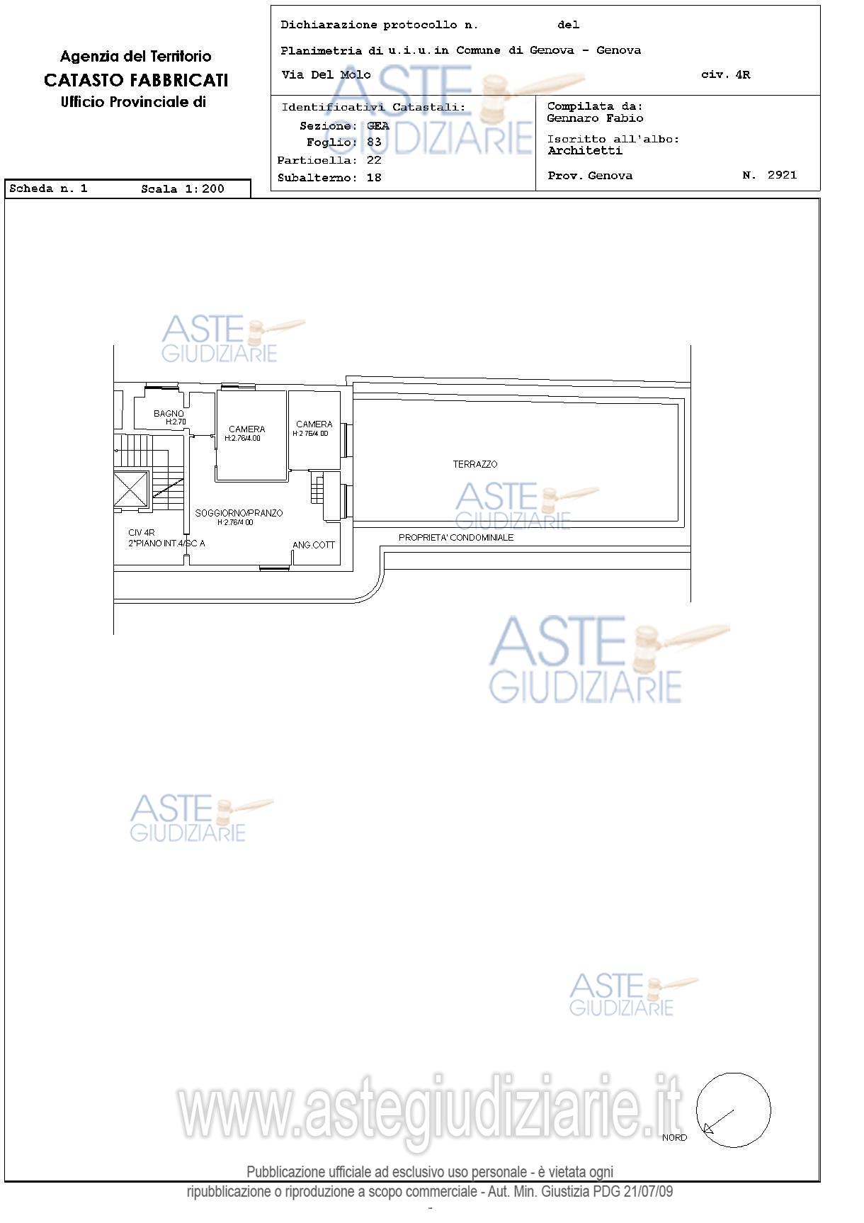 Vendita all'asta Senza incanto, con gara telematica sincrona mista - LOTTO 1: Piena proprietà dell’appartamento, sito in Genova (GE), Via alla Calata Marinetta, contraddistinto con il civico n.14, interno 4, posto al secondo piano. L’immobile sviluppa una superficie catastale di 93mq ed è composto da un soggiorno – dotato di posto cottura -, due camere da letto, locale igienico oltre ai disimpegni, ed ha annesso altresì un ampio terrazzo a livello. Prezzo base € 269.727,59 (offerta minima € 202.295,69). Data vendita 24/06/2026 ore 15:30. Professionista delegato alla vendita: Dott. Daniele Lippi - Email "d.lippi@m7associati.com"; Tel. 010/588182; Cell. 349/8168208.