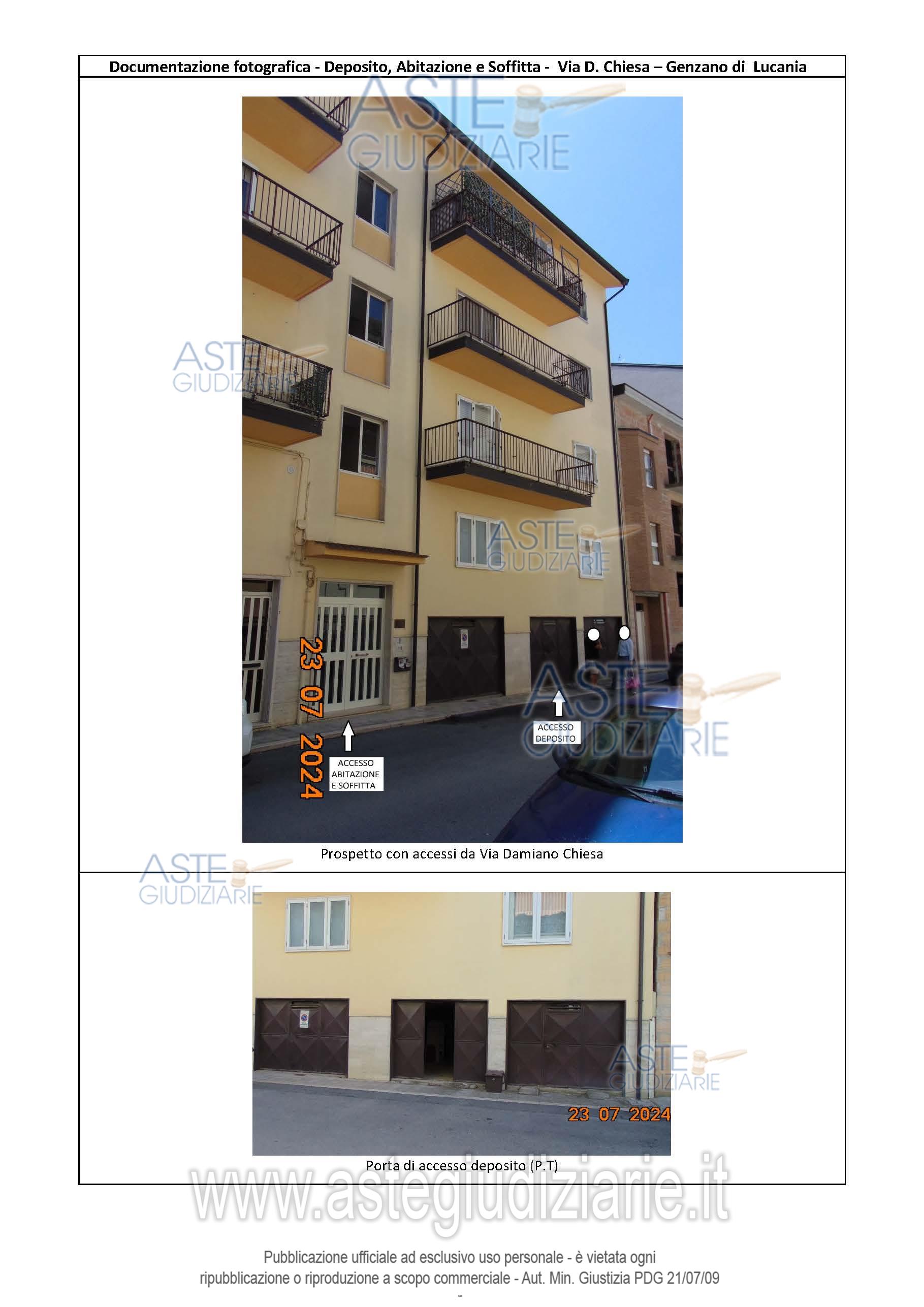 Vendita in attesa dell'emissione del nuovo bando d'asta. LOTTO UNICO: Piena ed intera proprietà (1/1) di un deposito posto al piano terra, un’abitazione al quarto piano e una soffitta (deposito) al quinto piano di un fabbricato sito alla Via Damiano Chiesa del Comune di Genzano di Lucania (PZ). Ultimo prezzo base € 78.750,00 (offerta minima € 59.062,50). Giudice Dott. Annachiara Di Paolo. Professionista delegato alla vendita Avv. Gabriele Messina - Email "studiolegalemessina@gmail.com". Custode Giudiziario Avv. Gabriele Messina - Email "studiolegalemessina@gmail.com"; Tel. 097121938. Rif. Tribunale di Potenza - Espropriazione immobiliare (cartabia) n. 47/2024
