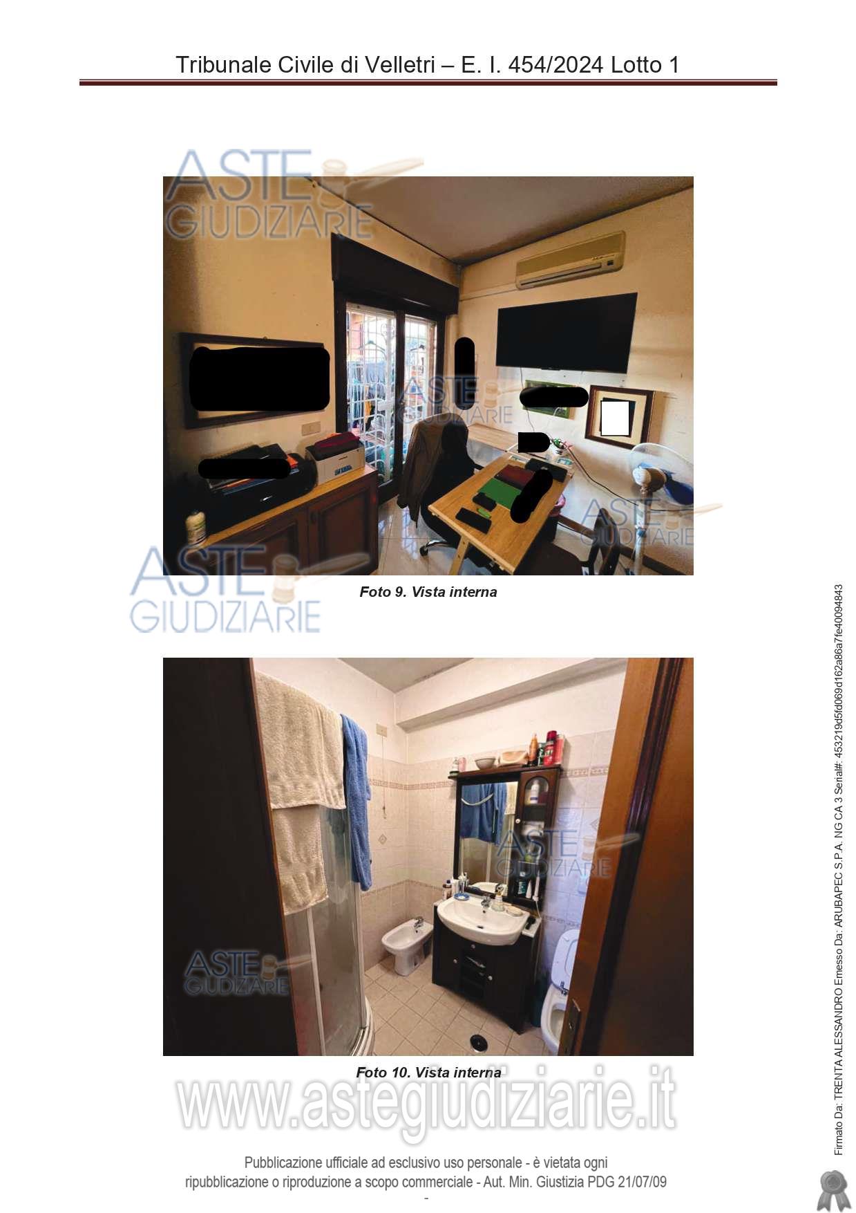 Vendita all'asta Senza incanto, con gara telematica asincrona - LOTTO UNICO: APPARTAMENTO. Prezzo base € 116.000,00 (offerta minima € 87.000,00). Data inizio operazioni di vendita: 27/11/2025 ore 10:30. Professionista delegato alla vendita Avv. Ortensia Ebner - Email "ortensiaebner@libero.it"; Tel. 0693014110. Custode Giudiziario Avv. Ortensia Ebner - Email "ortensiaebner@libero.it"; Tel. 0693014110. Rif. Tribunale di Velletri - Espropriazione immobiliare (cartabia) n. 454/2024