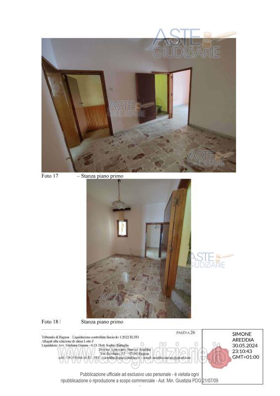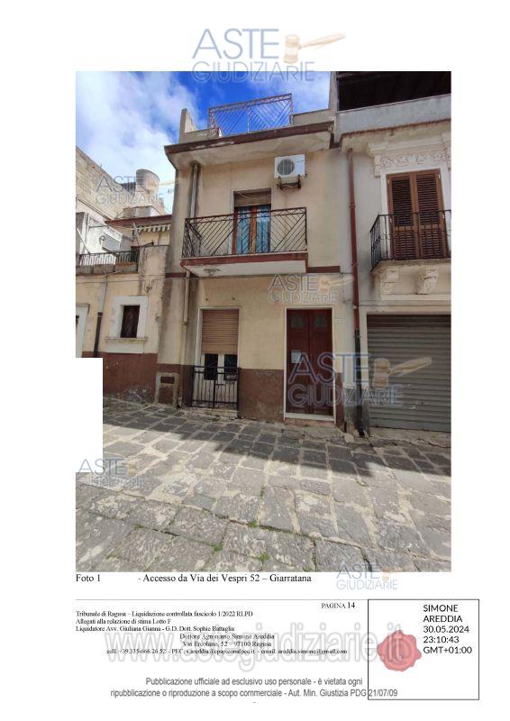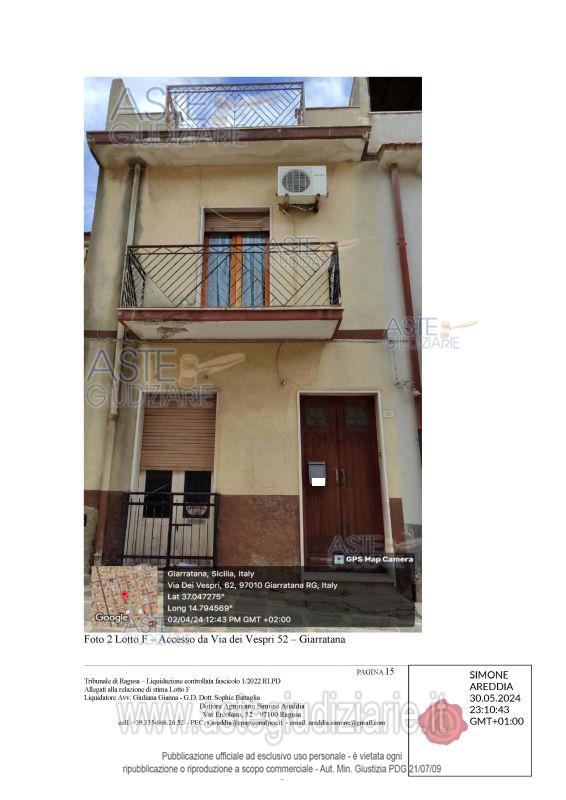 Vendita all'asta Senza incanto, con gara telematica asincrona - LOTTO 6: LOTTO 6 (F)-IN COMUNE DI GIARRATANA (RG)-Diritto di proprietà per la quota pari a ¼ dell’intero di due appartamenti, di cui uno al piano terra e l’altro al piano primo e secondo del maggior fabbricato con accesso dalla Via dei Vespri n.52 (in catasto civico 28). Prezzo base € 2.586,62 (offerta minima € 2.586,62). Data inizio operazioni di vendita: 09/04/2026 ore 12:00. Giudice Dott. Sophie Battaglia. Rif. Tribunale di Ragusa - Liquidazione controllata(cci) n. 1/2022