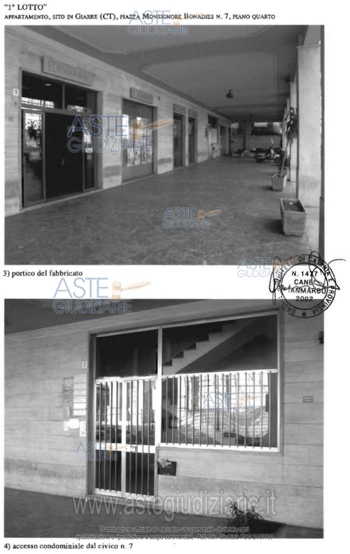 Vendita all'asta Senza incanto, con gara telematica sincrona mista - LOTTO UNICO: unità immobiliari facenti parte dell’edificio sito in Giarre, Piazza Monsignore Bonadies, e precisamente: -appartamento con accesso dal civico 7, al piano quarto, di circa metri quadrati 160 (mq.160), composto da cinque vani, accessori e terrazza a livello; -garage con accesso dal civico 8 al piano seminterrato esteso metri quadrati quattordici (mq.14. Prezzo base € 134.250,00 (offerta minima € 100.687,00). Data vendita 07/05/2026 ore 09:30. Professionista delegato alla vendita Dott. Guido Paolo Crisiglione - Email "studiocrisiglione@gmail.com"; Cell. 3338641547; Tel. 0957689820. Custode Giudiziario Dott. Guido Paolo Crisiglione - Email "studiocrisiglione@gmail.com"; Cell. 3338641547; Tel. 0957689820. Rif. Tribunale di Catania - Esecuzione immobiliare post legge 80 n. 90600003/2002