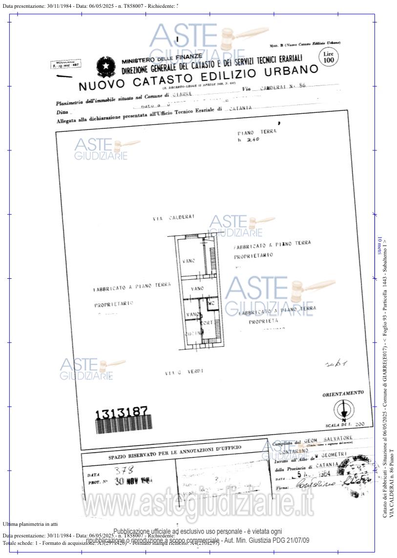 Vendita all'asta Senza incanto, con gara telematica sincrona - LOTTO UNICO: Fabbricato per civile abitazione su due livelli (piano terra e piano primo, collegati da scala interna), con accessi da via Calderai, 86 e dai via G. Verdi, 21, Giarre (CT), attualmente in fase di ristrutturazione totale e non abitabile in quanto privo di intonaci, porte, pavimenti ed impianti. II piano terra, è composto da tre vani ed accessori, con cortile interno;il piano primo è composto da due vani ed accessori con terrazza a livello di mq 12; oltre a terrazza panoramica di mq 11 al piano secondo. Prezzo base € 48.000,00 (offerta minima € 36.000,00). Data vendita 24/03/2026 ore 10:00. Professionista delegato alla vendita Not. Salvatore Gulisano - Email "sgulisano@notariato.it"; Tel. 0957225461. Custode Giudiziario Not. Salvatore Gulisano - Email "sgulisano@notariato.it"; Tel. 0957225461. Rif. Tribunale di Catania - Esecuzione immobiliare post legge 80 n. 829/2018