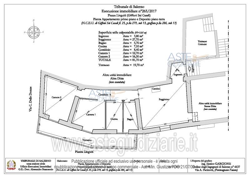 Vendita all'asta Senza incanto, con gara telematica asincrona - LOTTO UNICO: Immobile ad uso civile abitazione posto al primo piano con annesso piccolo locale deposito al piano terra. Prezzo base € 25.819,00 (offerta minima € 19.365,00). Data inizio operazioni di vendita: 28/11/2025 ore 11:00. Professionista delegato alla vendita Dott. Nerina Gaeta - Email "nerinagaeta@gmail.com"; Cell. 33811509154. Custode Giudiziario Dott. Nerina Gaeta - Email "nerinagaeta@gmail.com"; Cell. 33811509154. Rif. Tribunale di Salerno - Esecuzione immobiliare post legge 80 n. 265/2017