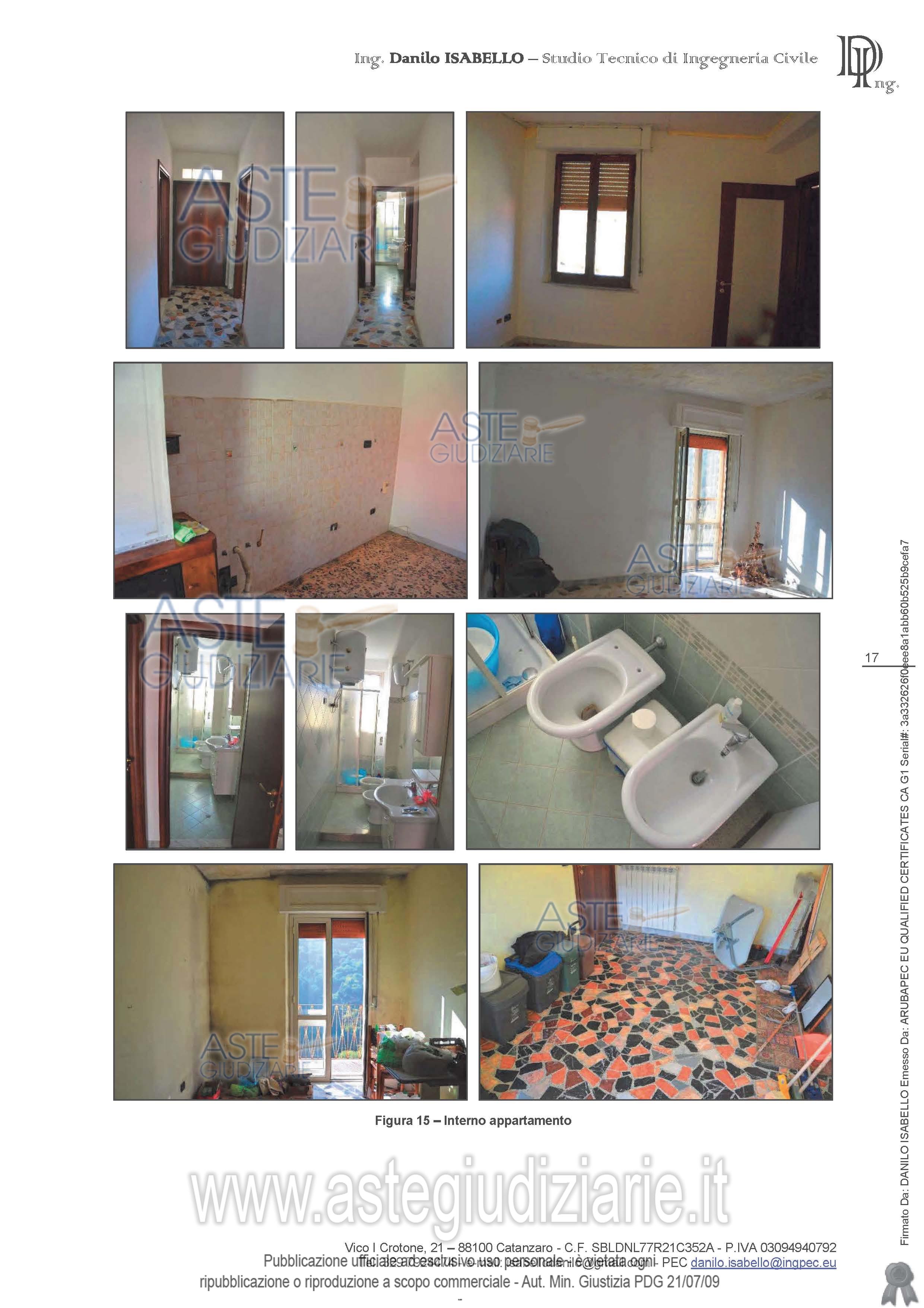 Vendita all'asta Senza incanto, con gara telematica asincrona - LOTTO UNICO: piena proprietà per la quota di 1000/1000 di: Unità immobiliare che si sviluppa su di un livello, posto al piano primo destinato ad abitazione, raggiungibile mediante scala esterna di pertinenza esclusiva, conformata nel modo seguente: dalla porta di ingresso si accede al vano corridoio che distribuisce in senso orario a partire dal sud i vani cucina, letto 1, wc, letto 2 e soggiorno. Prezzo base € 18.240,00 (offerta minima € 13.680,00). Data inizio operazioni di vendita: 31/03/2026 ore 16:00. Giudice Dott. Chiara Di Credico. Professionista delegato alla vendita Avv. Natalia Giuliano - Email "nataliagiuliano@alice.it"; Tel. 0961060301. Custode Giudiziario Avv. Natalia Giuliano - Email "nataliagiuliano@alice.it"; Tel. 0961060301. Rif. Tribunale di Catanzaro - Espropriazione immobiliare (cartabia) n. 61/2024