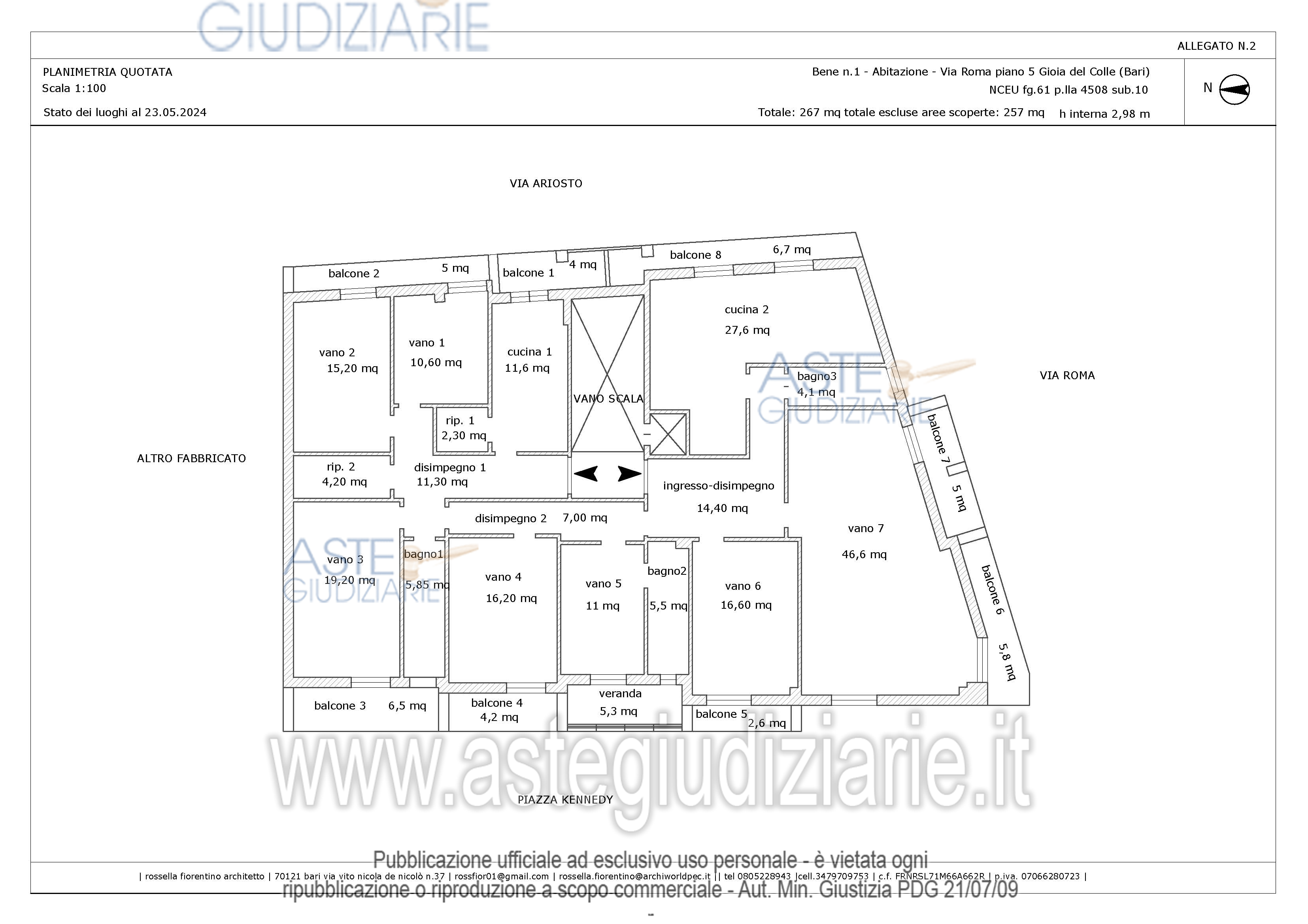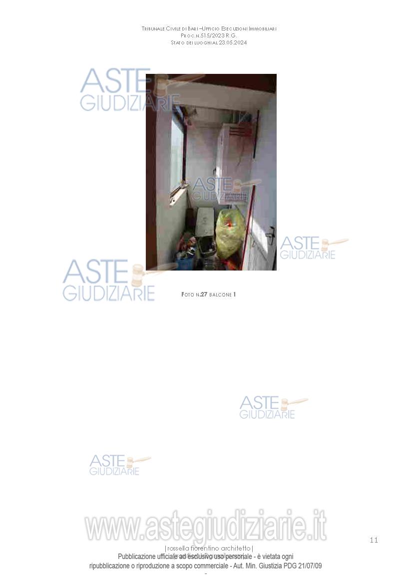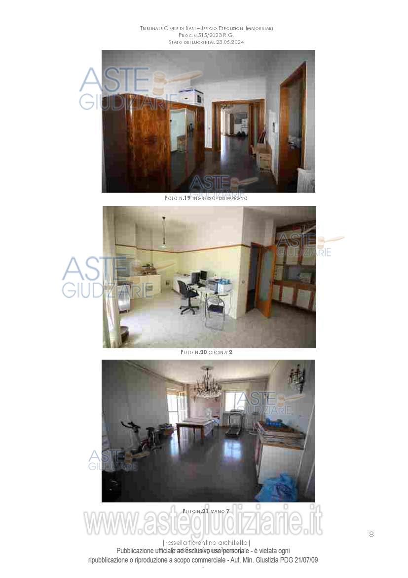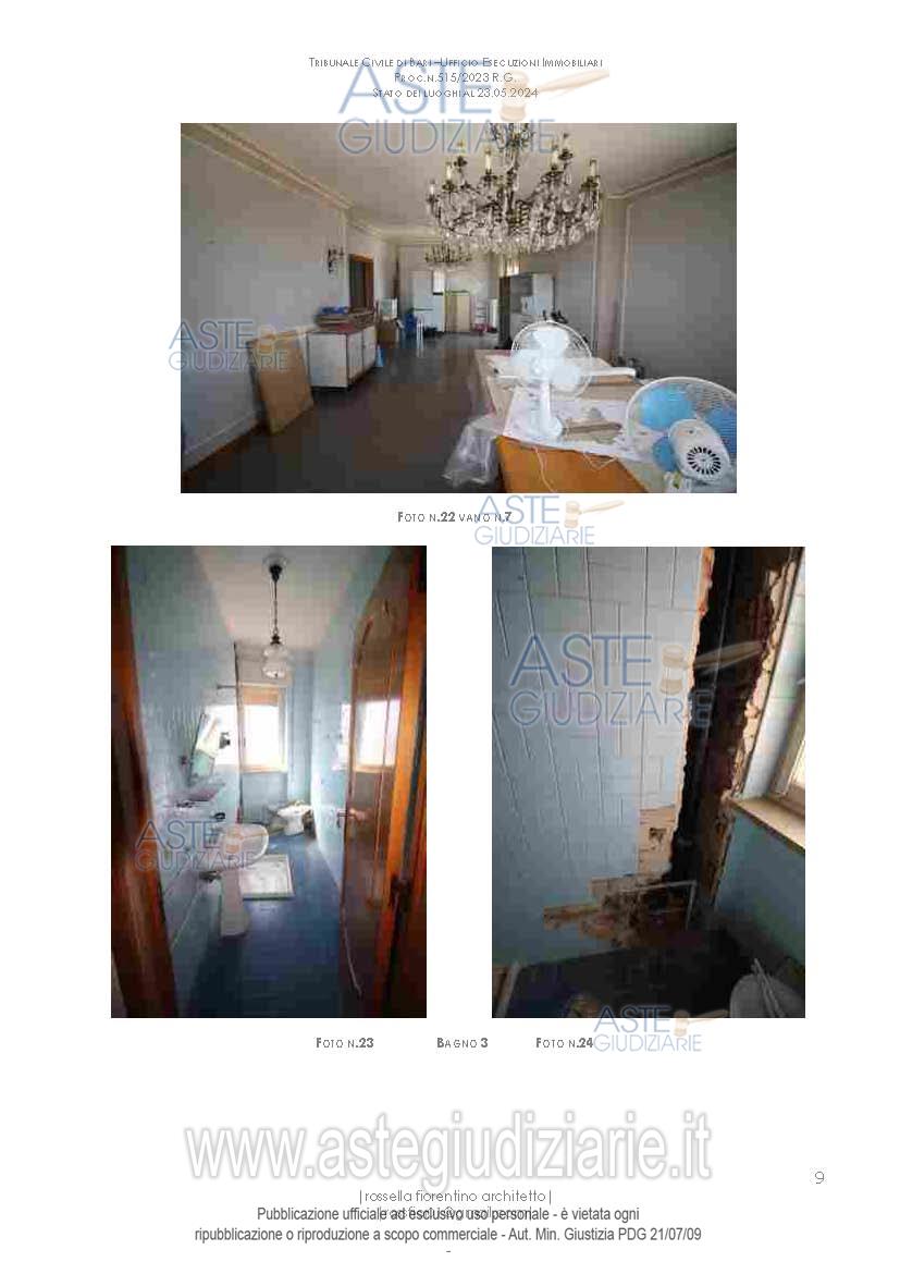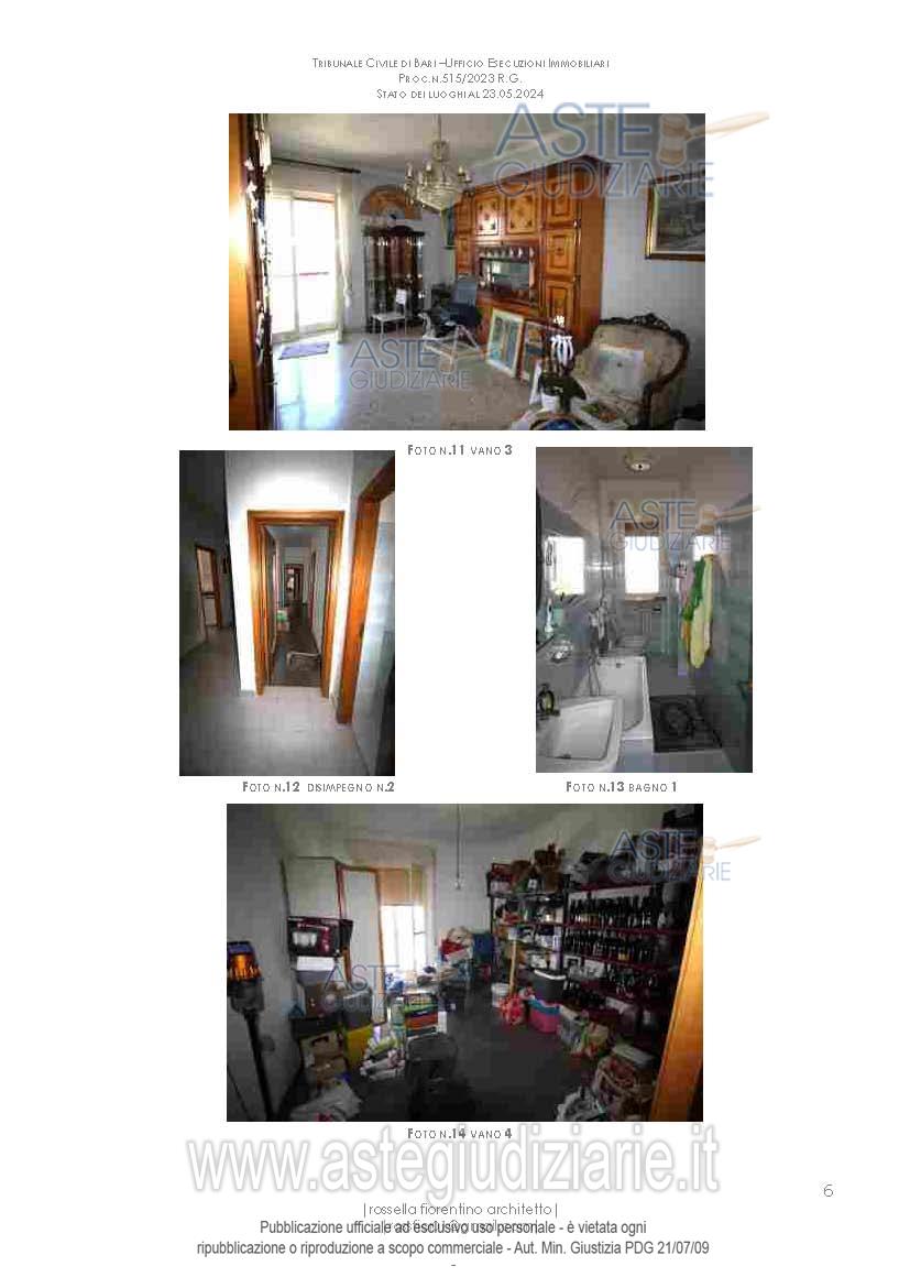 Vendita in attesa dell'emissione del nuovo bando d'asta. LOTTO 1: Diritto di piena proprietà dell’unità abitativa costituita da appartamento, che occupa l’intero quinto e penultimo piano di un fabbricato in condominio dotato di ascensore con doppio ingresso; composta da sette vani, di cui uno doppio, tre bagni; ingresso – disimpegno; 2 ulteriori disimpegni; due cucine; 7 balconi; un balcone verandato; per complessivi 267 mq di superficie commerciale/convenzionale vendibile. Ultimo prezzo base € 204.255,00 (offerta minima € 153.191,25). Giudice Dott. Marisa Attollino. Professionista delegato alla vendita Avv. Giada Oliva - Email "oliva.avvocati@libero.it". Custode Giudiziario Avv. Giada Oliva - Email "oliva.avvocati@libero.it"; Cell. 3925273676. Rif. Tribunale di Bari - Espropriazione immobiliare (cartabia) n. 515/2023