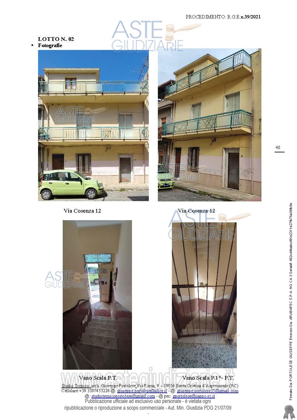 Vendita all'asta Senza incanto, con gara telematica asincrona - LOTTO 2: In Comune di Gioia Tauro, piena proprietà di un fabbricato sito in Via Cosenza n.12 piano primo, categoria A/3 abitazioni di tipo economico, Classe Unica, Vani 4, Superficie catastale mq 94,00 Rendita € 165,27. L’unità immobiliare è riportata in NCEU Comune di Gioia Tauro, Foglio 26 Particella 775 Sub 2 (cat. A/3). Prezzo base € 28.800,00 (offerta minima € 21.600,00). Data inizio operazioni di vendita: 20/03/2026 ore 09:30. Giudice Marta Caineri. Professionista delegato alla vendita Avv. Giuseppe Conti - Email "delegato.conti@gmail.com"; Tel. 3714514206. Custode Giudiziario Avv. Giuseppe Conti - Email "delegato.conti@gmail.com"; Tel. 3714514206. Rif. Tribunale di Palmi - Esecuzione immobiliare post legge 80 n. 39/2021