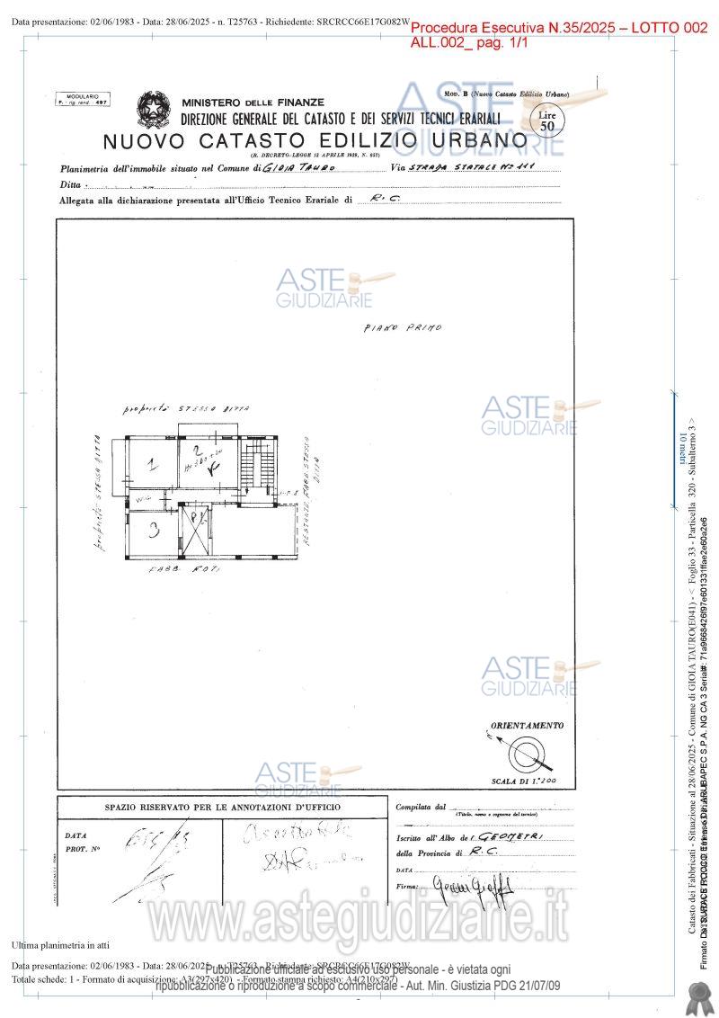 Vendita all'asta Senza incanto, con gara telematica asincrona - LOTTO 2: Piena proprietà di una abitazione, al piano 1 composta da: un ampio vano cucina-soggiorno, un bagno, due stanze, disimpegno e balcone su due lati;. Prezzo base € 37.200,00 (offerta minima € 27.900,00). Data inizio operazioni di vendita: 12/06/2026 ore 16:30. Giudice Dott. Marta Caineri. Professionista delegato alla vendita Avv. Giuseppe Conti - Email "delegato.conti@gmail.com"; Tel. 3714514206. Custode Giudiziario Avv. Giuseppe Conti - Email "delegato.conti@gmail.com"; Tel. 3714514206. Rif. Tribunale di Palmi - Esecuzione immobiliare post legge 80 n. 35/2025