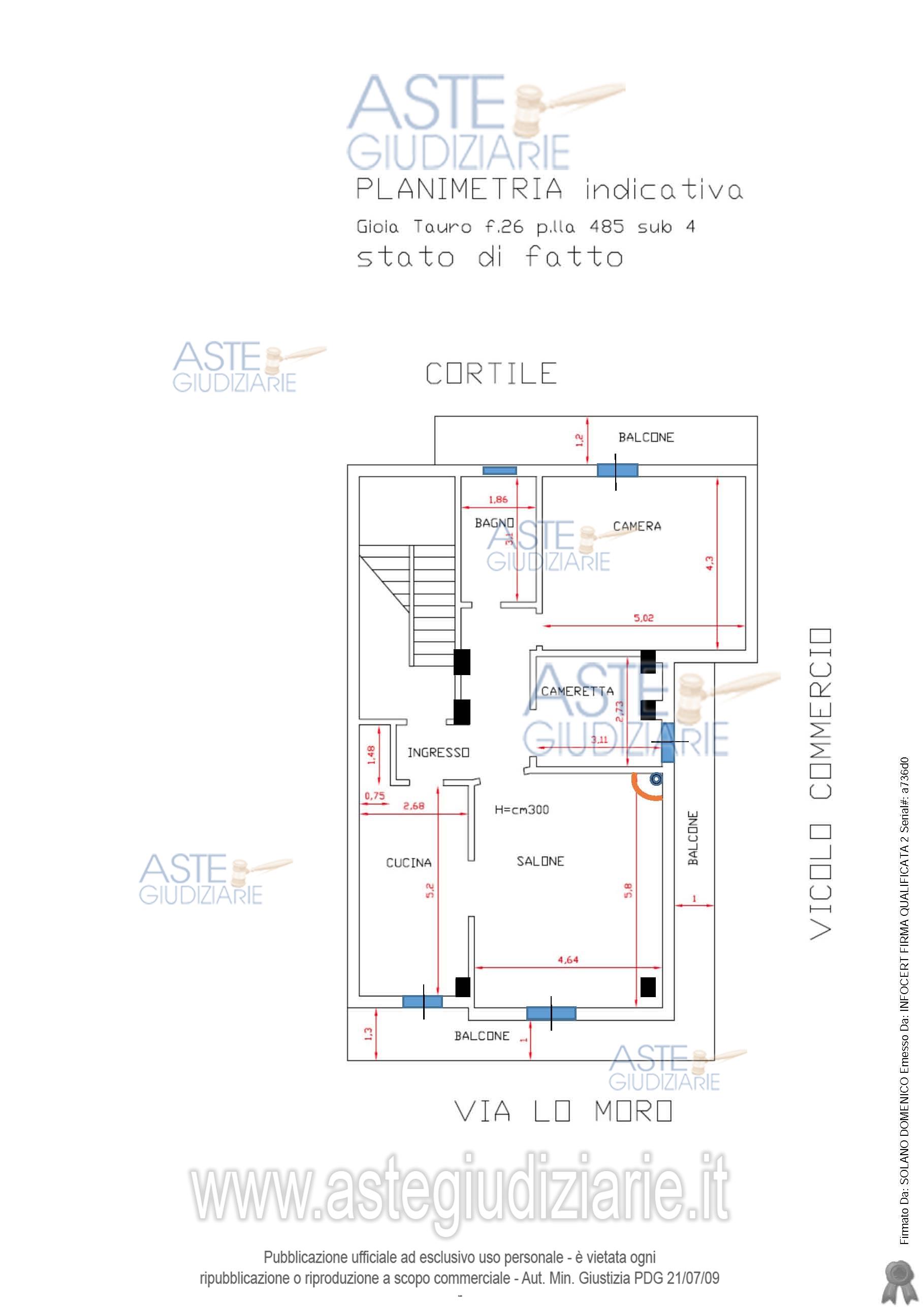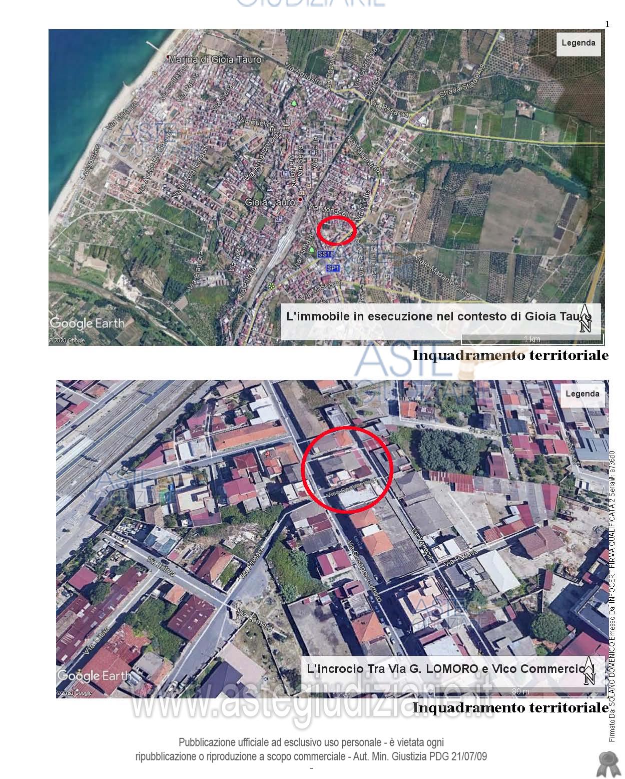 Vendita all'asta Senza incanto, con gara telematica asincrona - LOTTO UNICO: Diritto di piena proprietà di un appartamento posto al secondo piano (3 f.t.), facente parte di un maggior fabbricato a tre elevazioni sito in Gioia Tauro (RC) angolo via G. Lomoro e vicolo del Commercio, composto da un ingresso, una cucina abitabile, un piccolo sgabuzzino, un salone con caminetto, un bagno, una cameretta e un’ampia camera padronale, con una superficie commerciale equivalente a mq. 109,00 e con ingresso da vicolo del Commercio n. 26-28. Prezzo base € 55.590,00 (offerta minima € 41.692,50). Data inizio operazioni di vendita: 15/04/2026 ore 10:30. Giudice Dott. Marta Caineri. Professionista delegato alla vendita Avv. Giuseppina Bagala - Email "avv.giusy.bagala@gmail.com"; Tel. 3383605066. Custode Giudiziario Avv. Giuseppina Bagala - Email "avv.giusy.bagala@gmail.com"; Tel. 3383605066. Rif. Tribunale di Palmi - Esecuzione immobiliare post legge 80 n. 25/2019