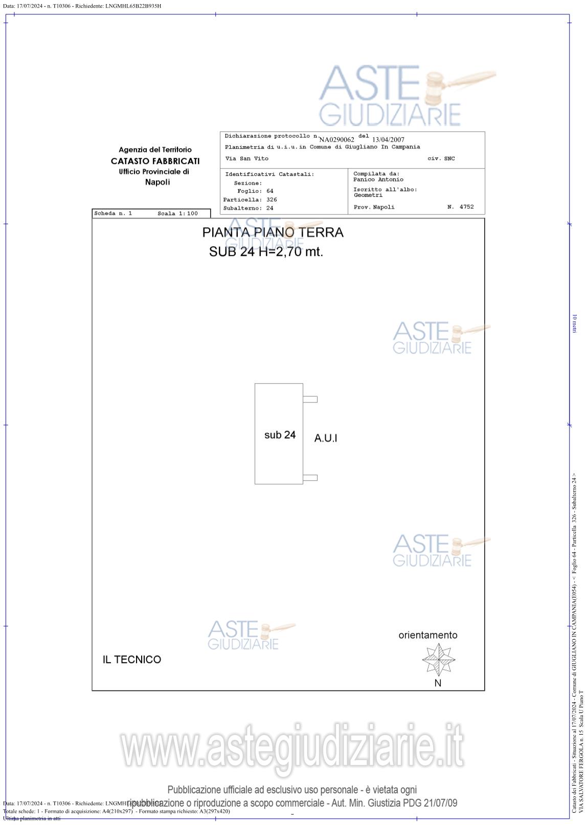 Custode Giudiziario: Dott. Salvatore Russo - Email "studiorusso4@gmail.com"; Tel. 081/8031586.