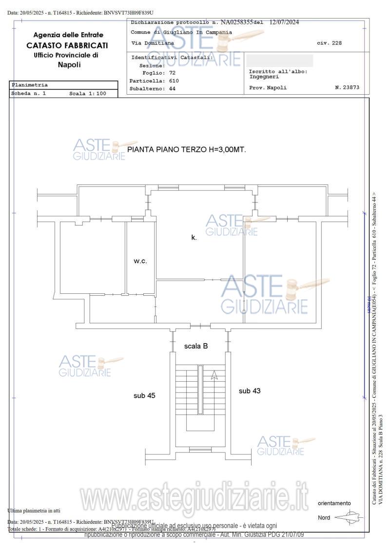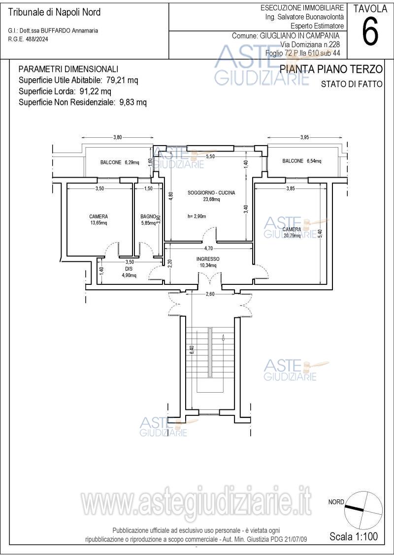 Vendita all'asta Senza incanto, con gara telematica asincrona - LOTTO 6: Piena ed intera proprietà di appartamento facente parte del fabbricato ubicato in Giugliano in Campania (NA) alla Via Domitiana 228. L’appartamento è posto al terzo piano. Diritti pari ad 1/7 di piena proprietà su lastrico solare posto al quarto piano del fabbricato ubicato in Giugliano in Campania (NA) alla Via Domitiana 228. Prezzo base € 73.500,00 (offerta minima € 55.125,00). Data inizio operazioni di vendita: 12/05/2026 ore 10:00. Giudice Dott. Annamaria Buffardo. Professionista delegato alla vendita Dott. Pietro Petruzzelli - Email "piepetruzzelli@gmail.com"; Cell. 3773376153. Custode Giudiziario Dott. Pietro Petruzzelli - Email "piepetruzzelli@gmail.com"; Cell. 3773376153. Rif. Tribunale di Napoli Nord - Espropriazione immobiliare (cartabia) n. 488/2024