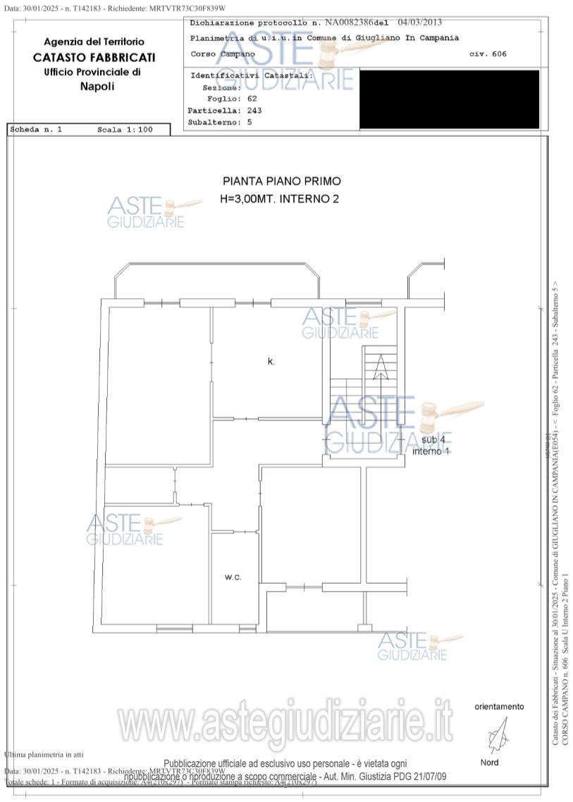 Vendita all'asta Senza incanto, con gara telematica asincrona - LOTTO 7: Appartamento ubicato nel Comune di Giugliano in Campania (Na), al Corso Campano n. 606, Interno 2, Piano 1, composto da: ingresso/cucina/salone, n. 2 camere di cui una con cabina armadio, n. 2 w.c., disimpegno e n. 2 balconi, con superficie totale lorda di circa 105 mq. Prezzo base € 154.000,00 (offerta minima € 115.500,00). Data inizio operazioni di vendita: 26/05/2026 ore 10:00. Giudice Dott. Annamaria Buffardo. Professionista delegato alla vendita Dott. Giovanni Esposito - Email "segreteria@espositopartners.it"; Tel. 0818449234. Custode Giudiziario Dott. Giovanni Esposito - Email "segreteria@espositopartners.it"; Tel. 0818449234. Rif. Tribunale di Napoli Nord - Espropriazione immobiliare (cartabia) n. 340/2024