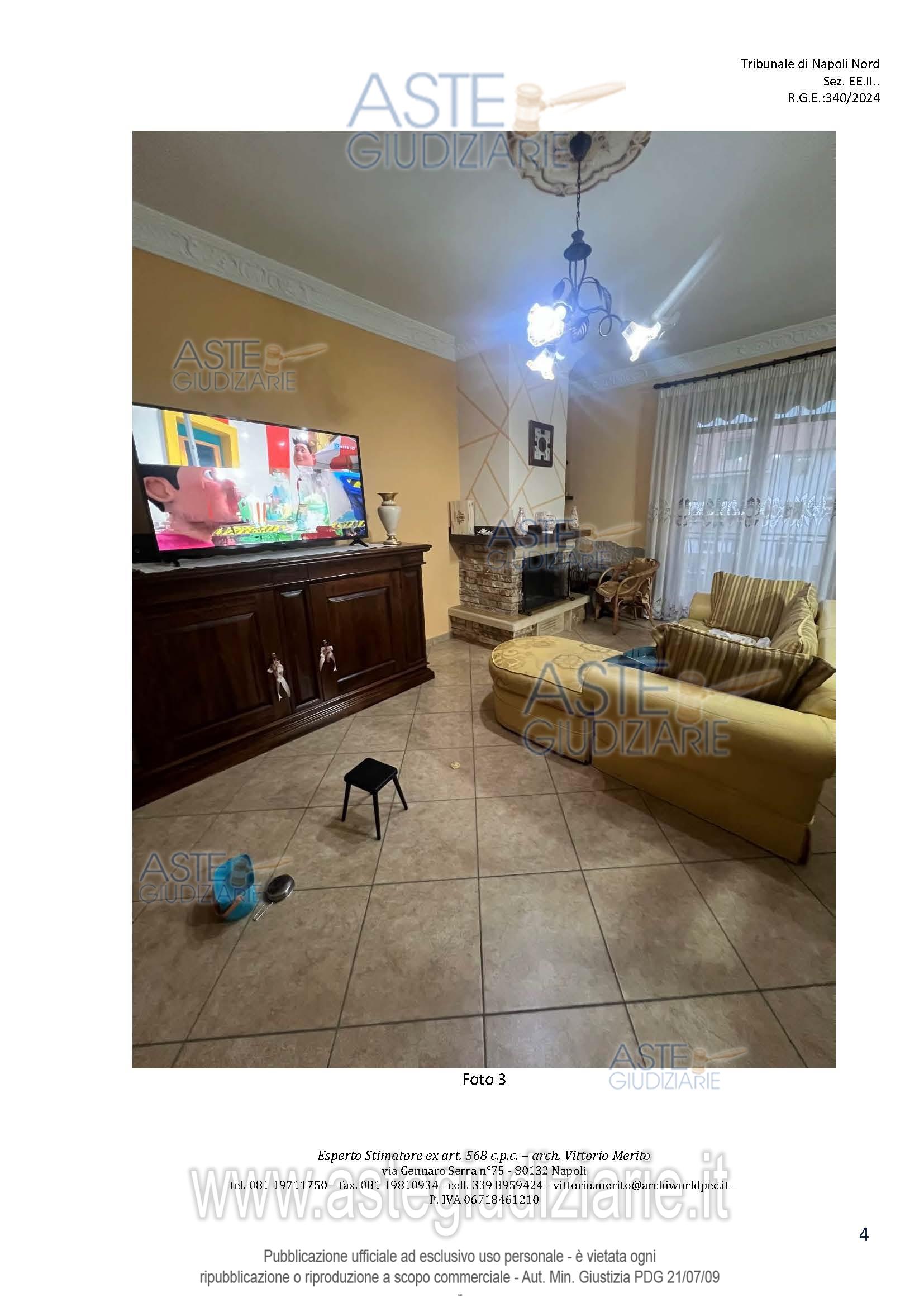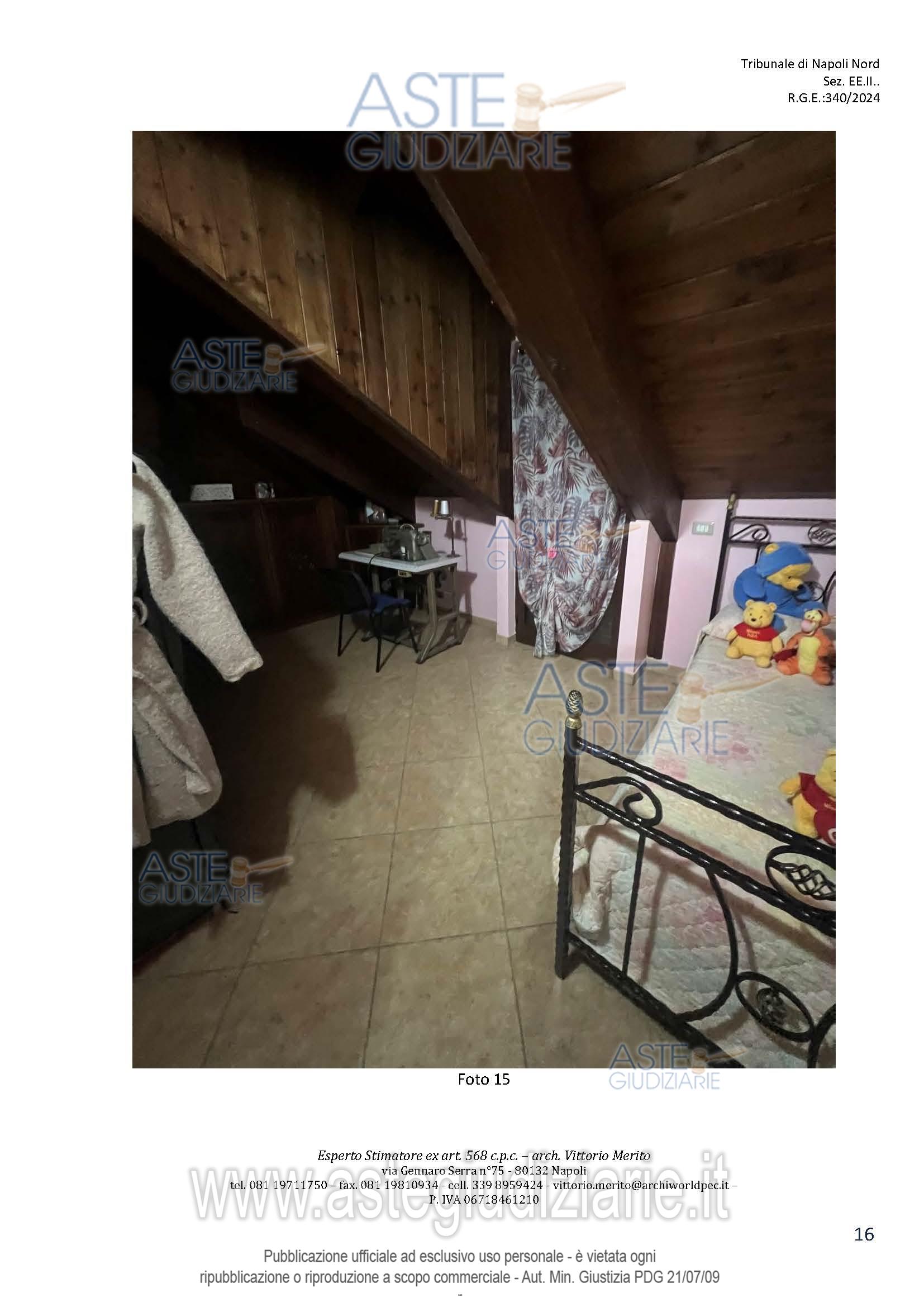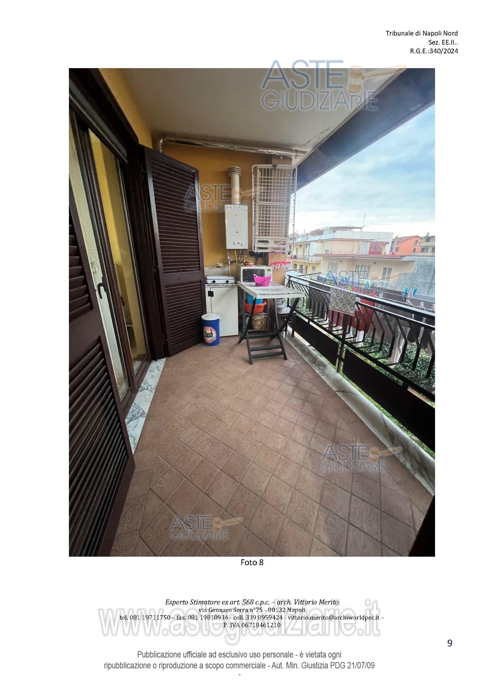Vendita all'asta Senza incanto, con gara telematica asincrona - LOTTO 8: Appartamento con sottotetto non abitabile (Interno 4, Piano 2-3) costituito, nello stato di fatto, come di seguito riportato: PIANO SECONDO (stato legittimo: appartamento): salone doppio/cucina, disimpegno, n. 2 w.c. e n. 2 balconi, con superficie totale lorda di circa 105 mq; PIANO TERZO (stato legittimo: sottotetto non abitabile): n. 3 camere, disimpegno, n. 2 w.c. e n. 3 balconi, con superficie totale lorda di circa 105 mq. Prezzo base € 209.000,00 (offerta minima € 156.750,00). Data inizio operazioni di vendita: 26/05/2026 ore 10:00. Giudice Dott. Annamaria Buffardo. Professionista delegato alla vendita Dott. Giovanni Esposito - Email "segreteria@espositopartners.it"; Tel. 0818449234. Custode Giudiziario Dott. Giovanni Esposito - Email "segreteria@espositopartners.it"; Tel. 0818449234. Rif. Tribunale di Napoli Nord - Espropriazione immobiliare (cartabia) n. 340/2024