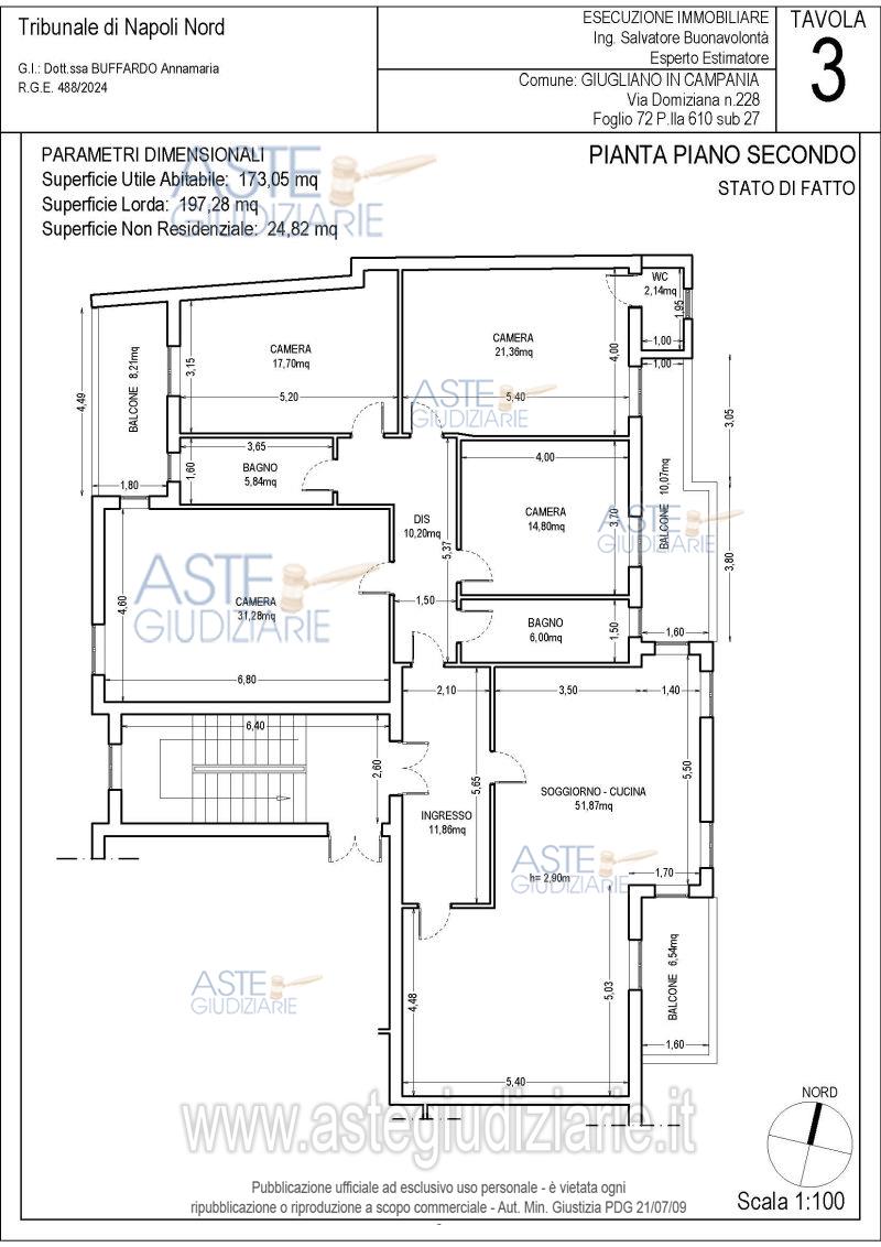 Vendita all'asta Senza incanto, con gara telematica asincrona - LOTTO 3: Piena ed intera proprietà di appartamento facente parte del fabbricato ubicato in Giugliano in Campania (NA) alla Via Domitiana 228. L’appartamento è posto al secondo piano. Diritti pari ad 1/7 di piena proprietà su lastrico solare posto al quarto piano del fabbricato ubicato in Giugliano in Campania (NA) alla Via Domitiana 228. Prezzo base € 166.000,00 (offerta minima € 124.500,00). Data inizio operazioni di vendita: 12/05/2026 ore 10:00. Giudice Dott. Annamaria Buffardo. Professionista delegato alla vendita Dott. Pietro Petruzzelli - Email "piepetruzzelli@gmail.com"; Cell. 3773376153. Custode Giudiziario Dott. Pietro Petruzzelli - Email "piepetruzzelli@gmail.com"; Cell. 3773376153. Rif. Tribunale di Napoli Nord - Espropriazione immobiliare (cartabia) n. 488/2024